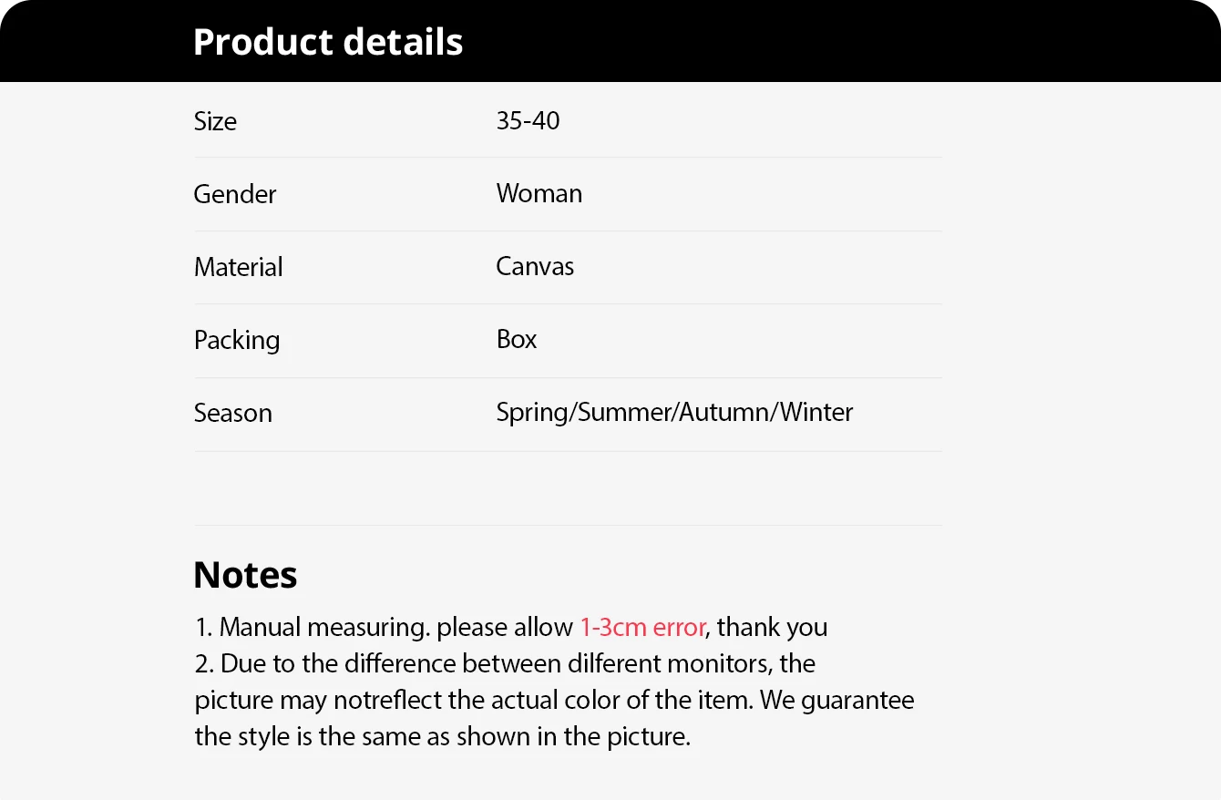 1. Manual measuring. please allow 1-3cm error, thank you