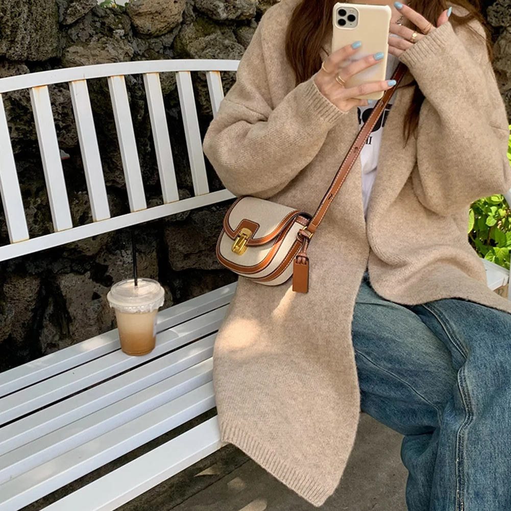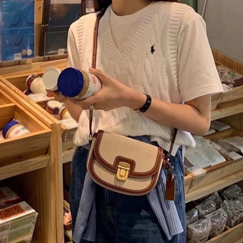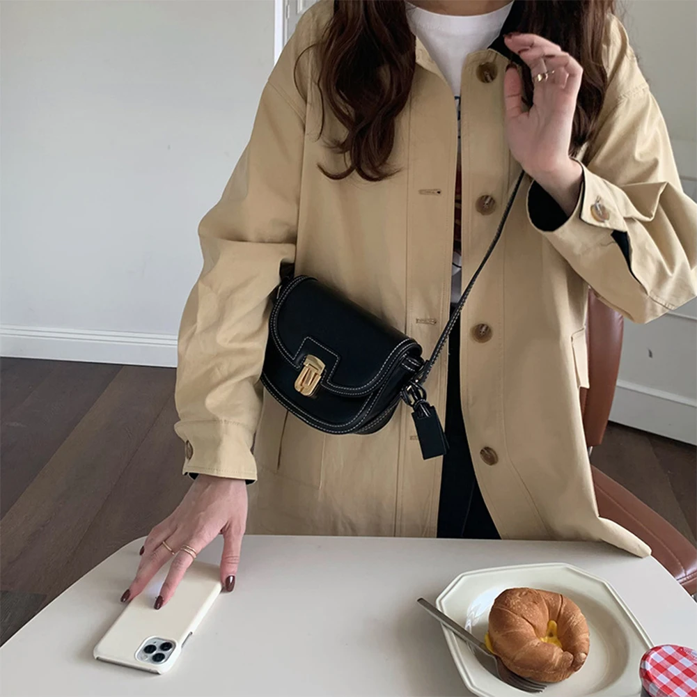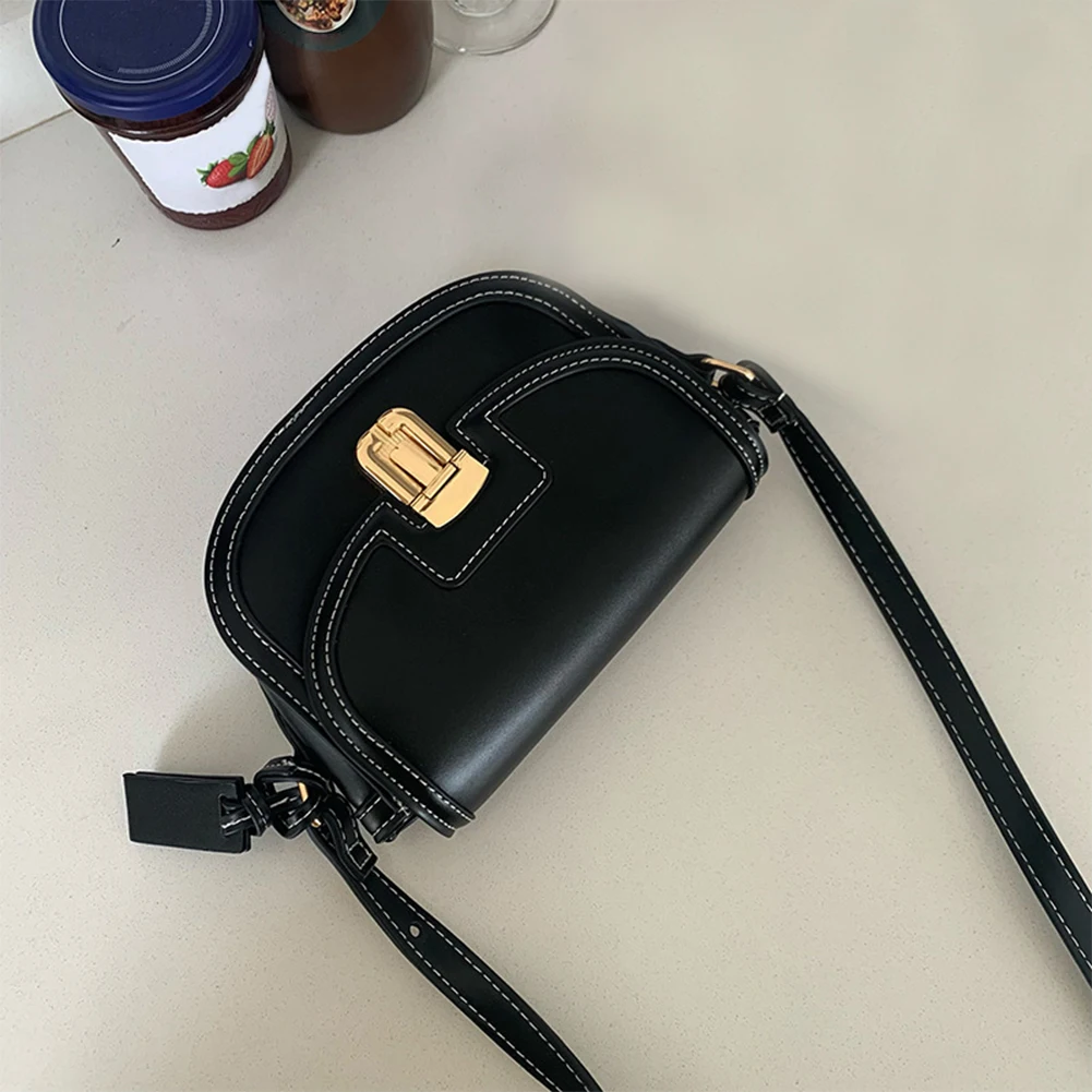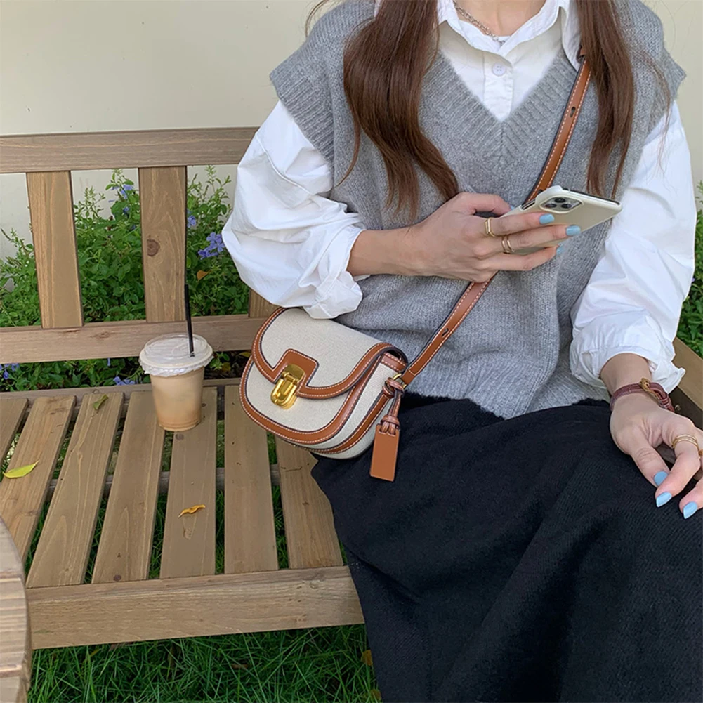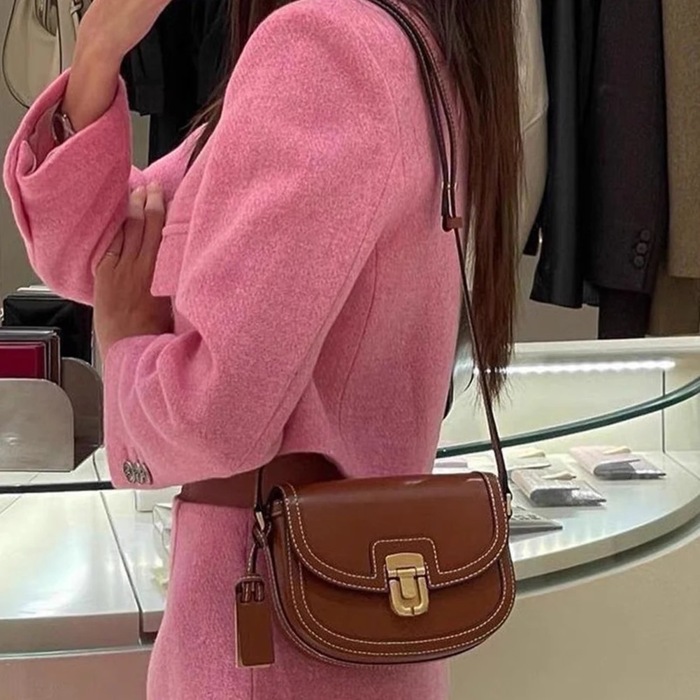 Women Leather Saddle Bag Adjustable Strap Vintage Tote Bag Versatile Trendy Satchel Bag Metal Hasp Casual Sling Bag