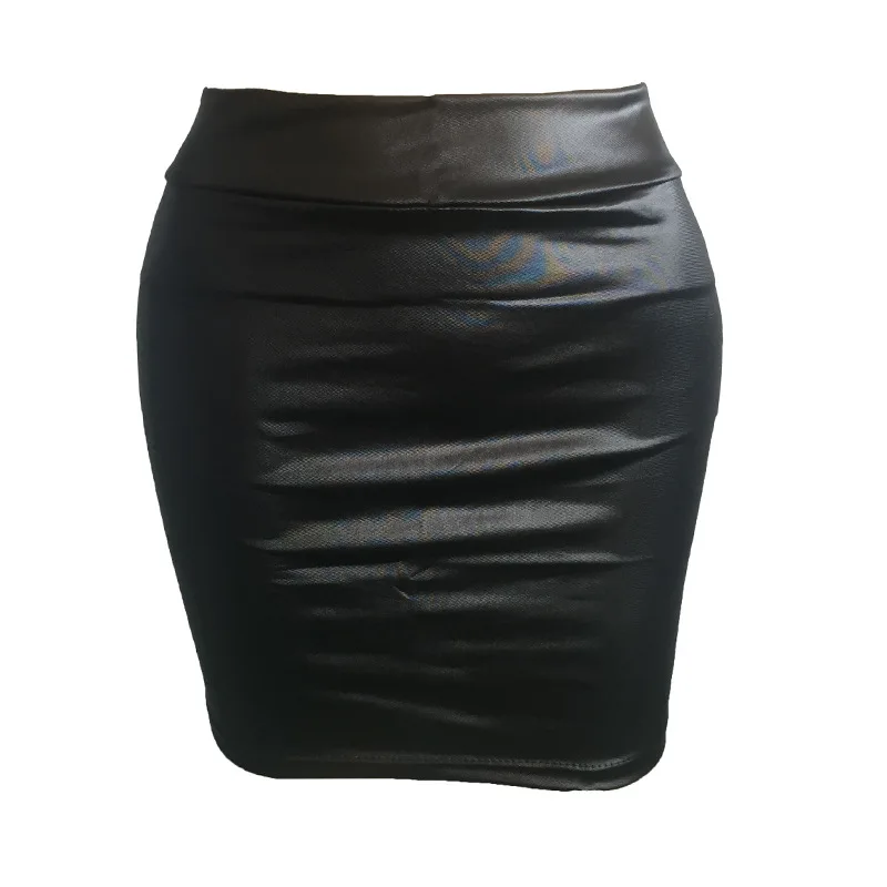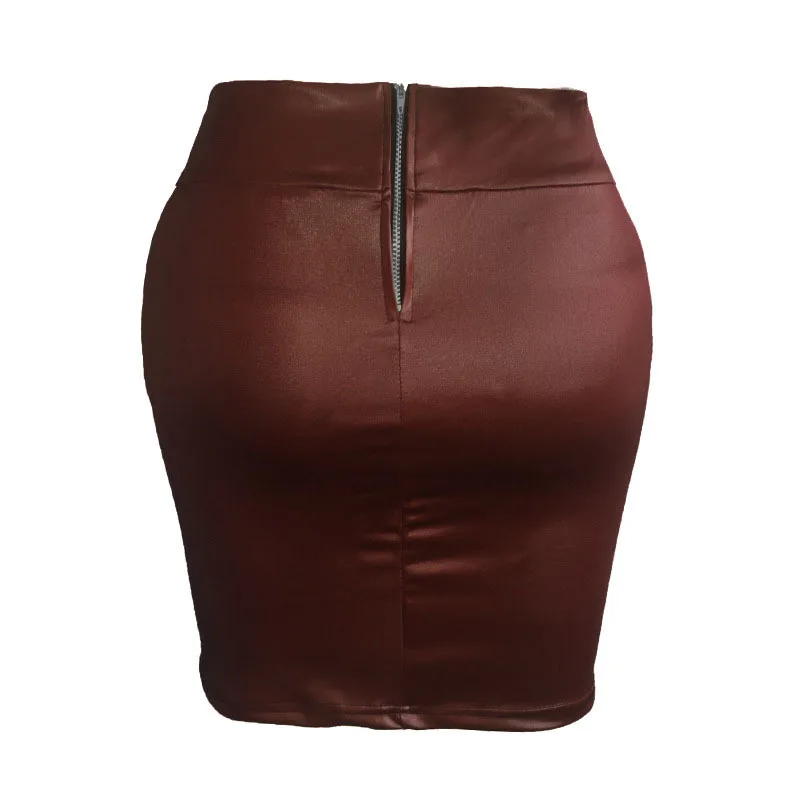 Women Mini Skirt Solid Color High Waist Slim Fit Skinny Matte Faux Leather Cozy Commuter Bodycon Skirt Streetwear