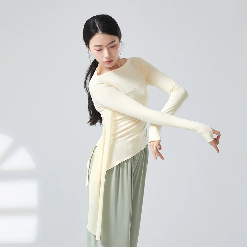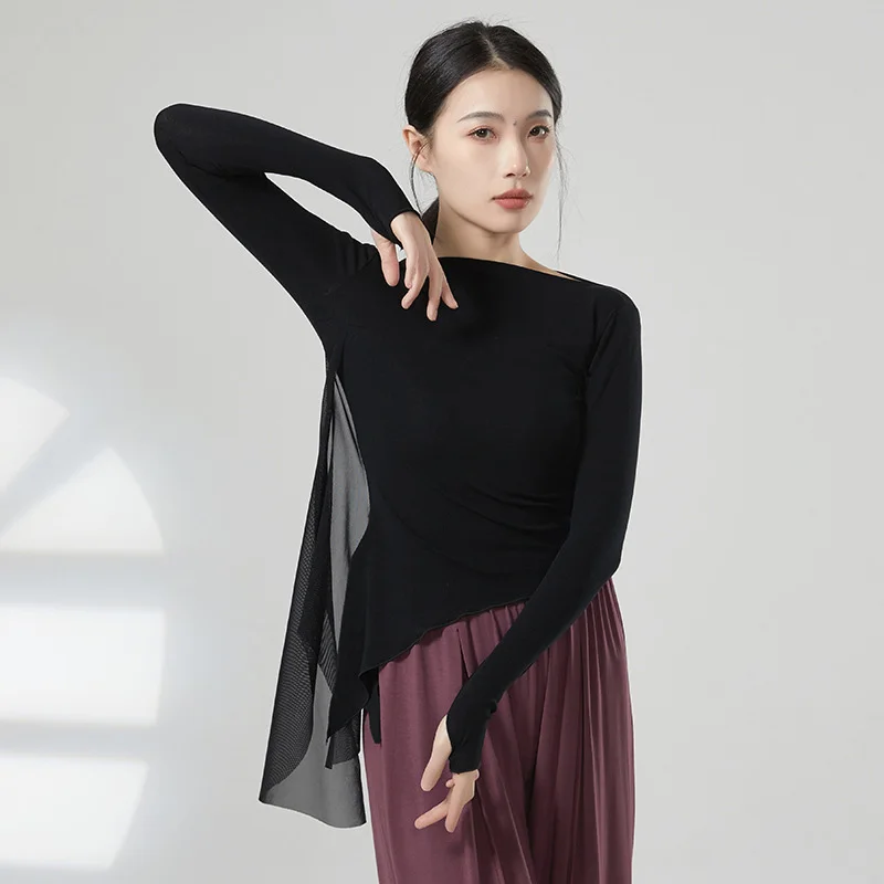 Modern Dance Practice Clothes Women Mesh Splicing Irregular Long Sleeve Tops Dance Daily Physical Training Costume