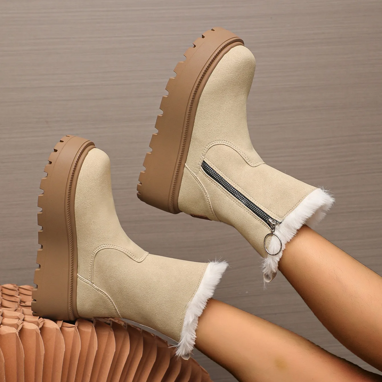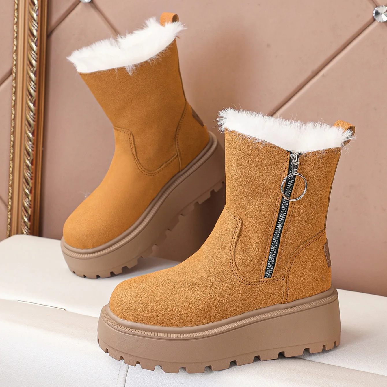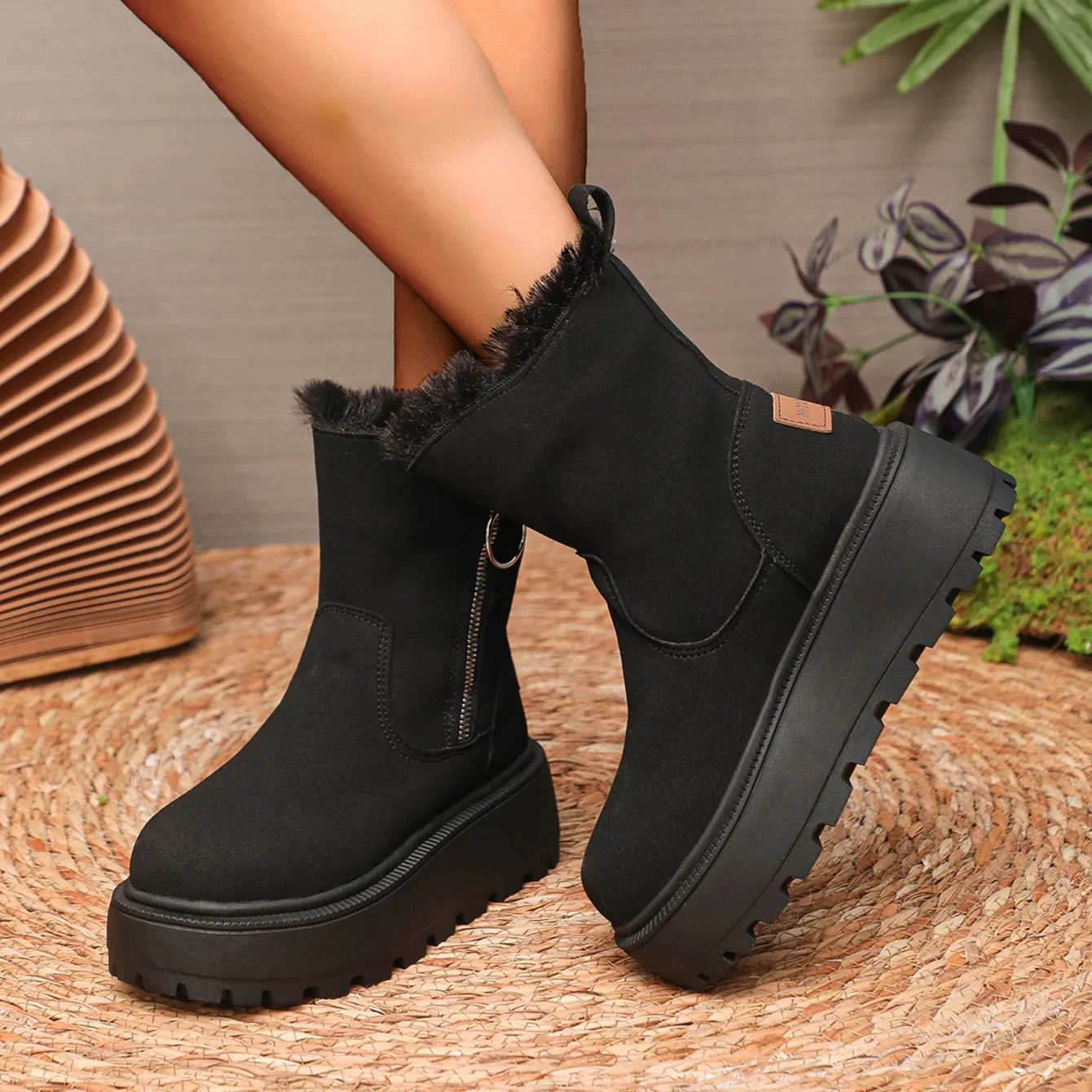 2024 Women Winter Casual Platform Block High Heels Ankle Boots Female Suede Fleece Zipper Buckle Warm Snow Boots Shoes