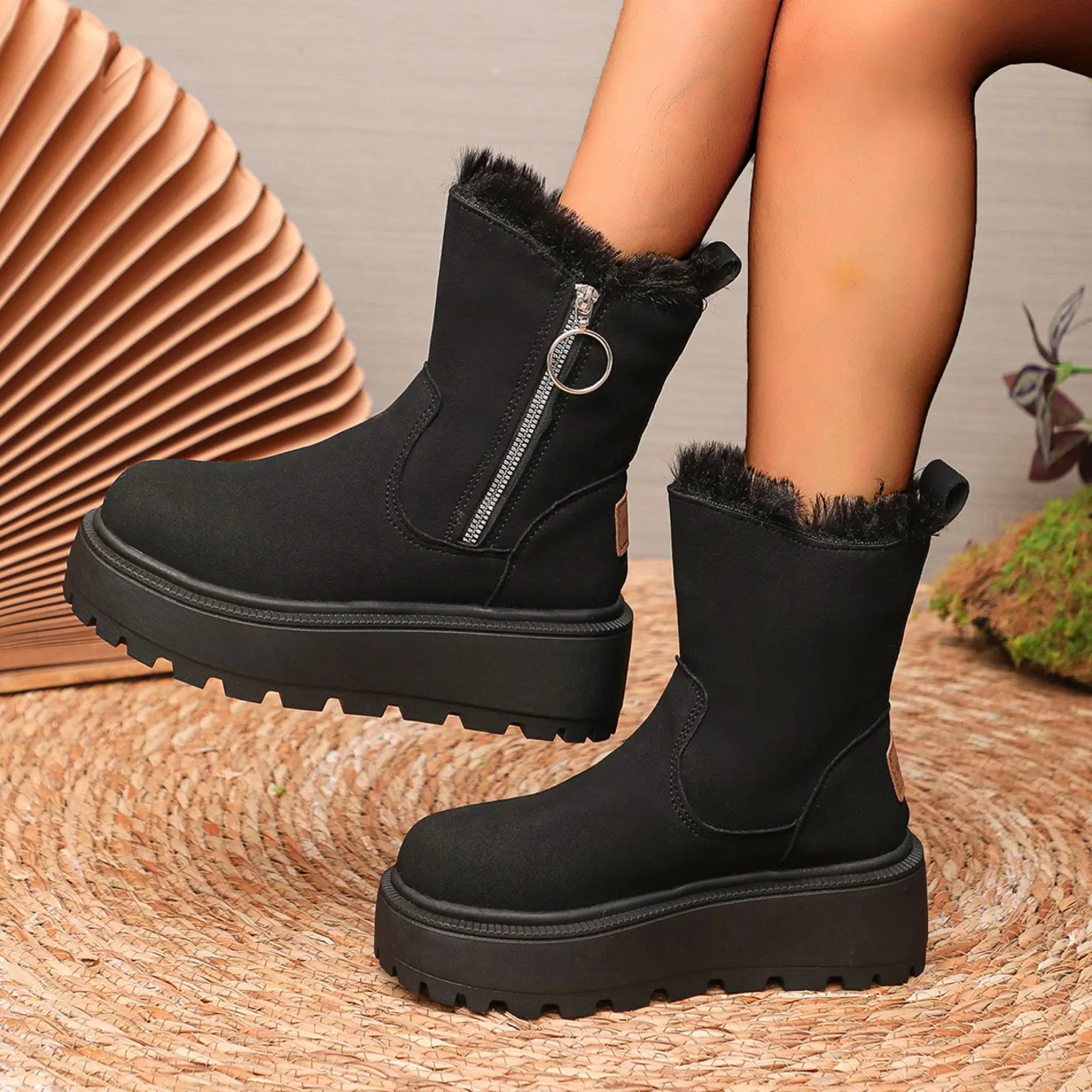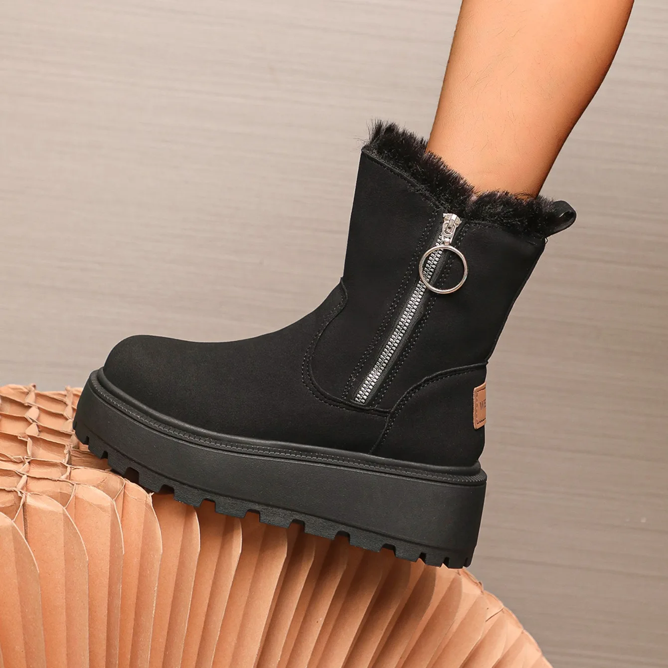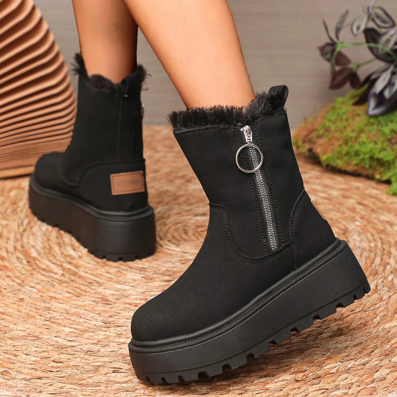 2024 Women Winter Casual Platform Block High Heels Ankle Boots Female Suede Fleece Zipper Buckle Warm Snow Boots Shoes