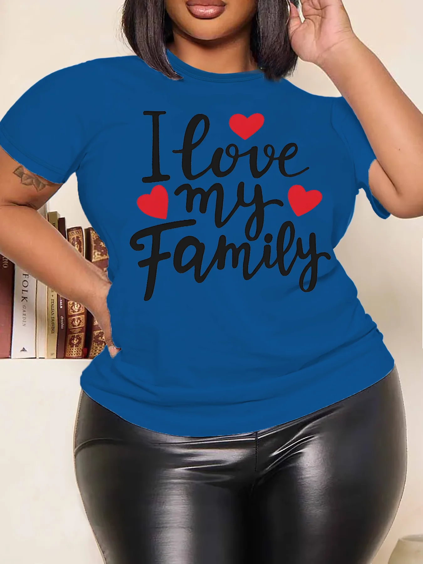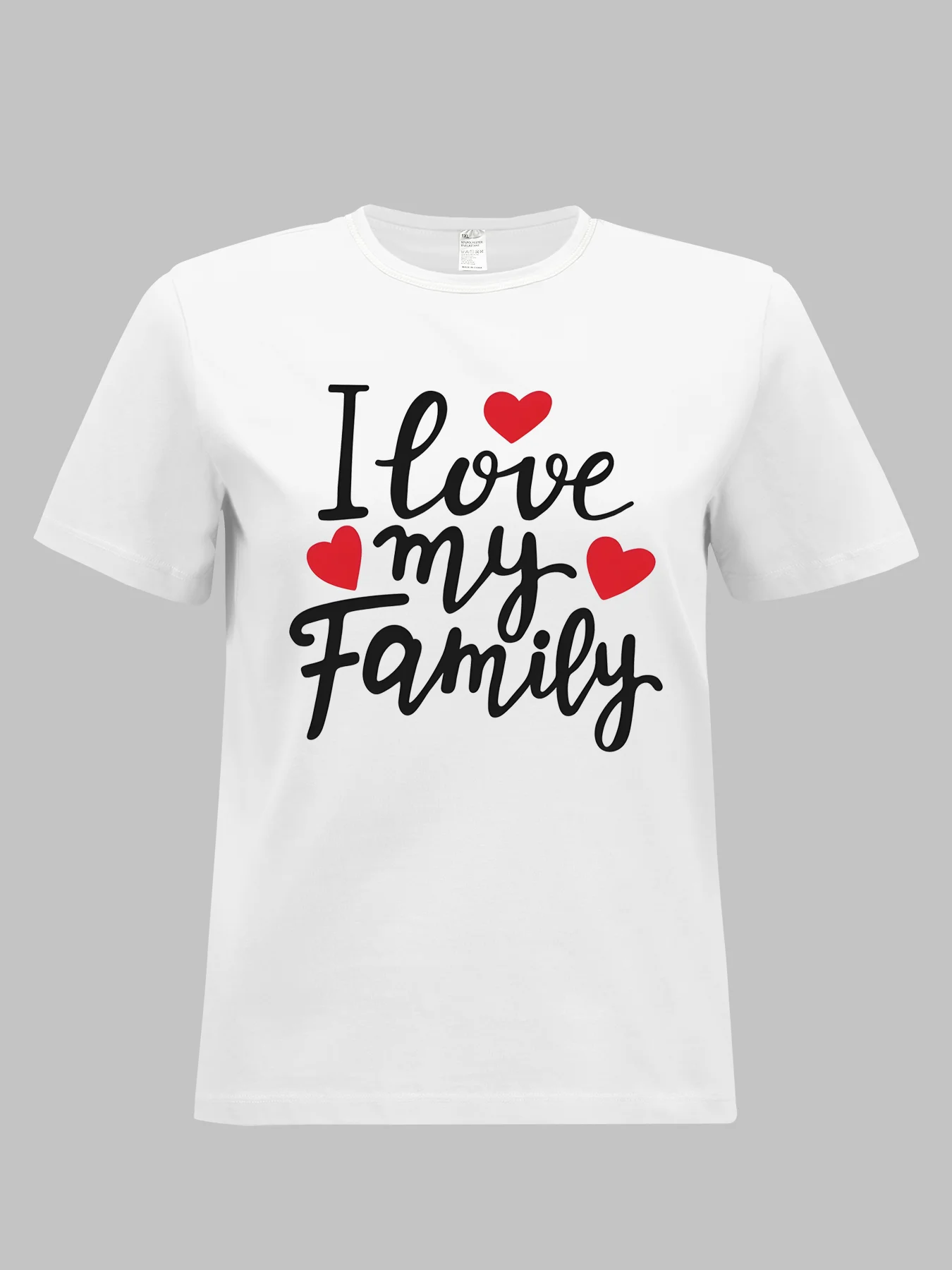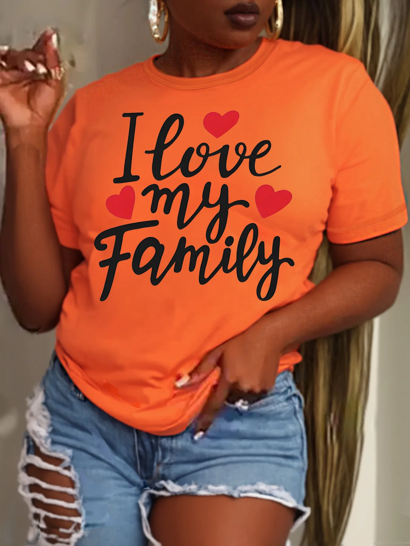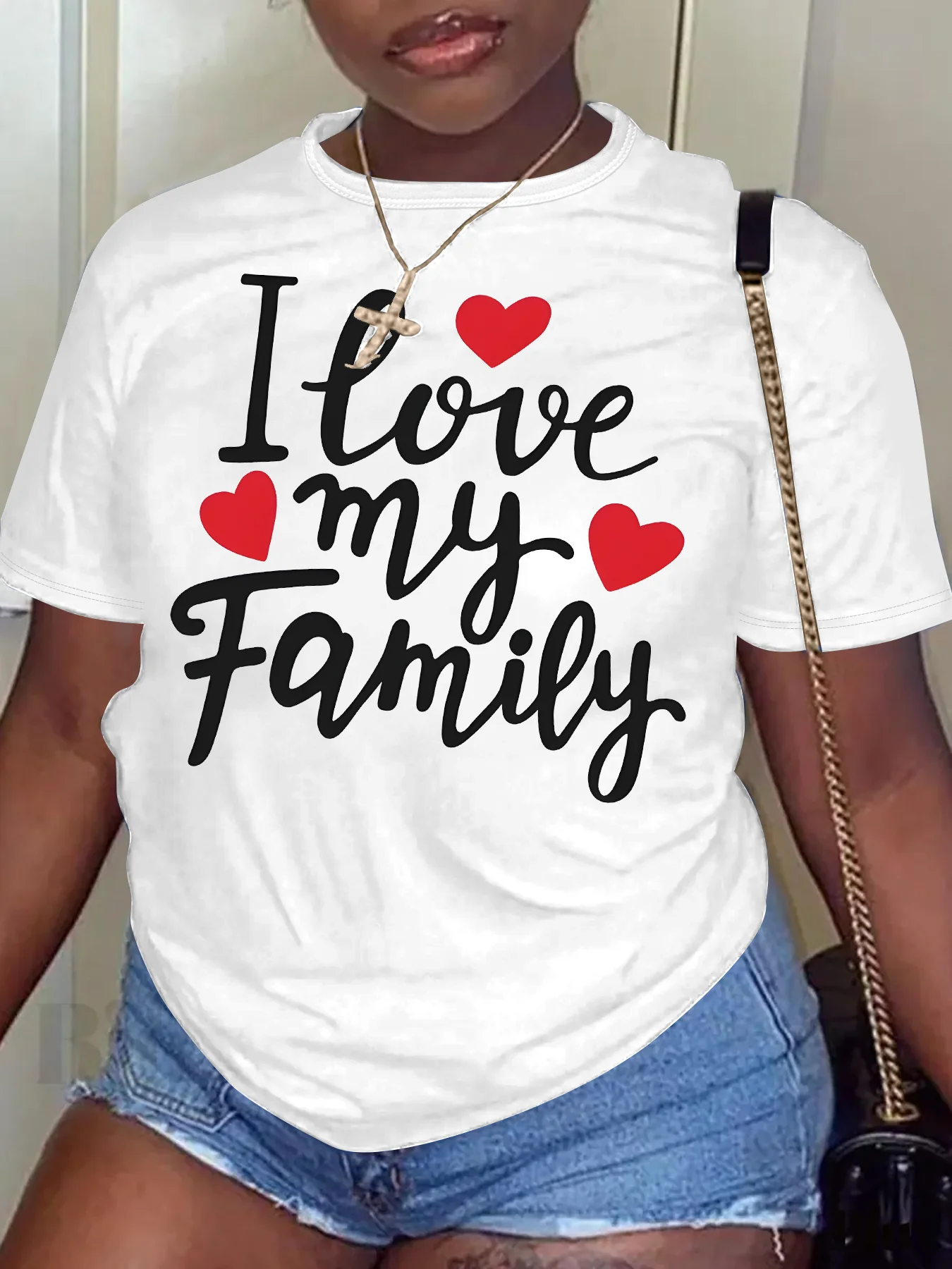 Women Plus Size Clothing Summer Round Neck Short Sleeve Printed Letter I Love My Family Casual Plus Size T-Shirts Y2k Top