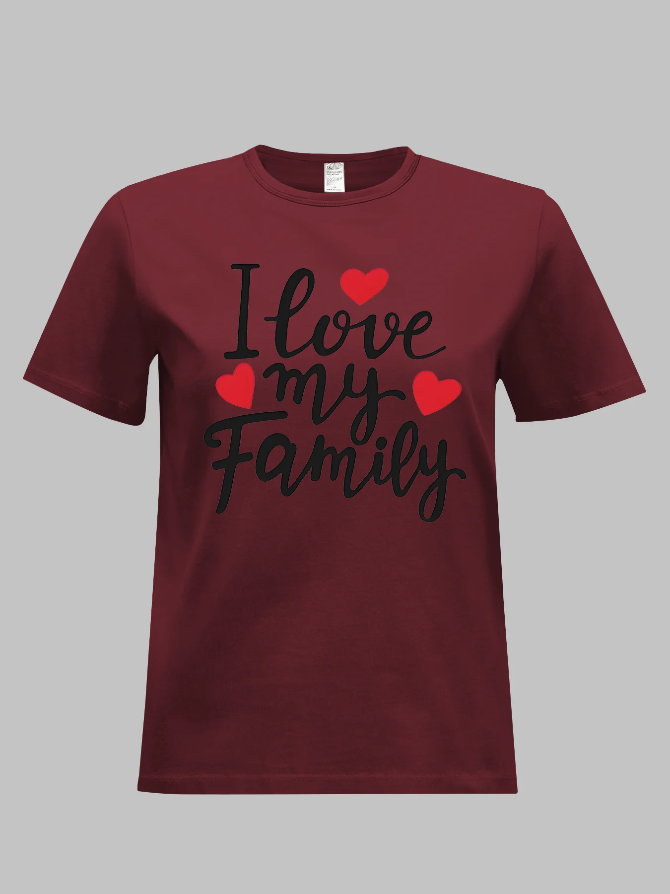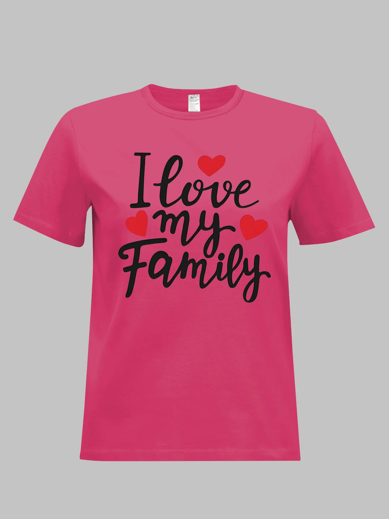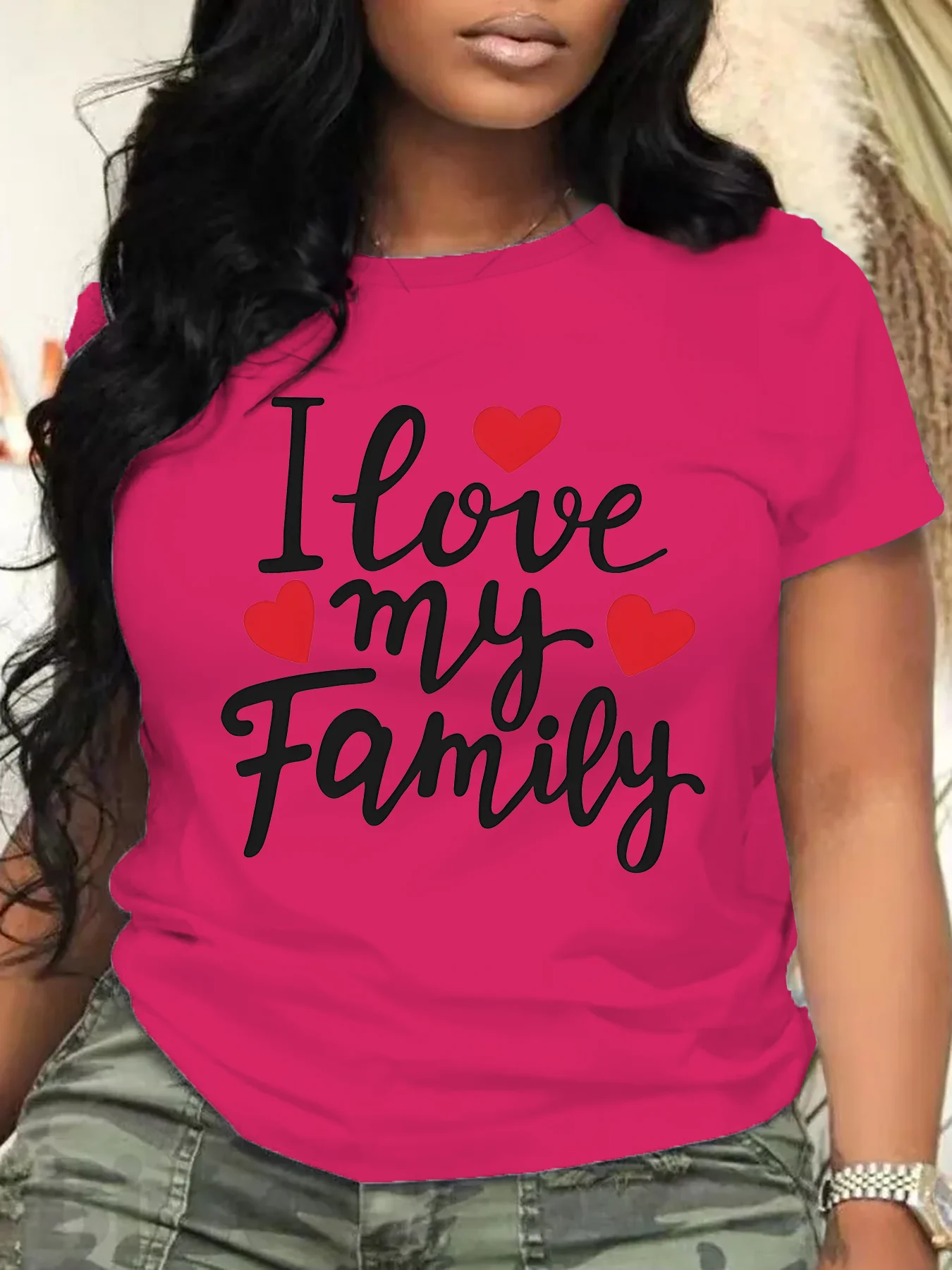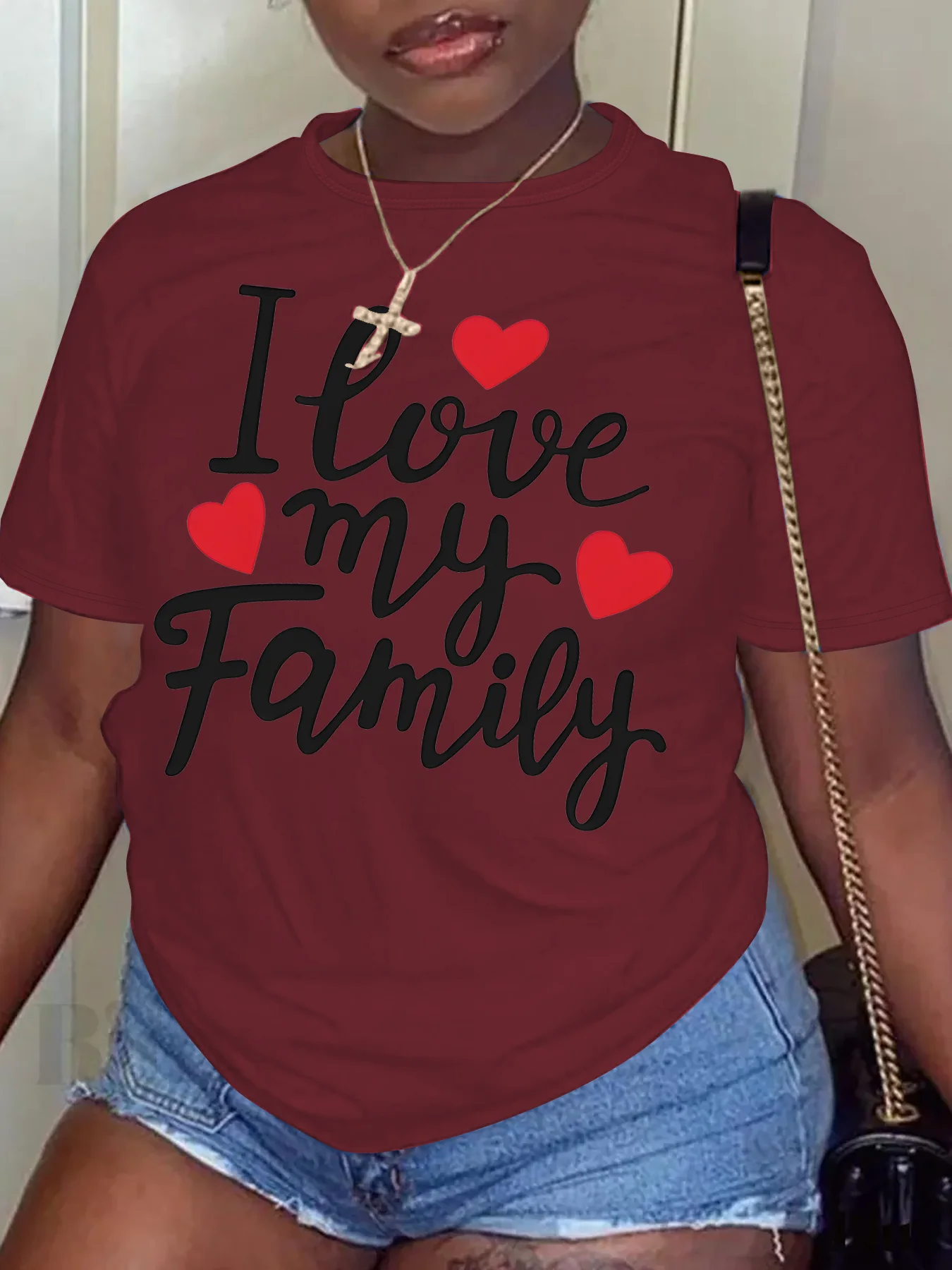 Women Plus Size Clothing Summer Round Neck Short Sleeve Printed Letter I Love My Family Casual Plus Size T-Shirts Y2k Top
