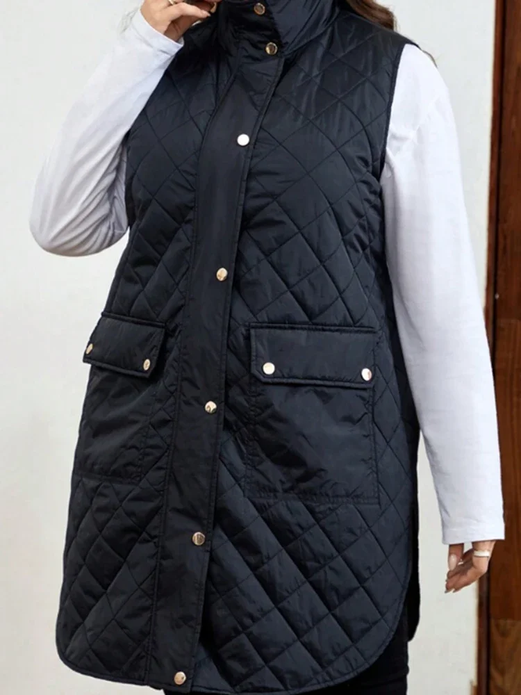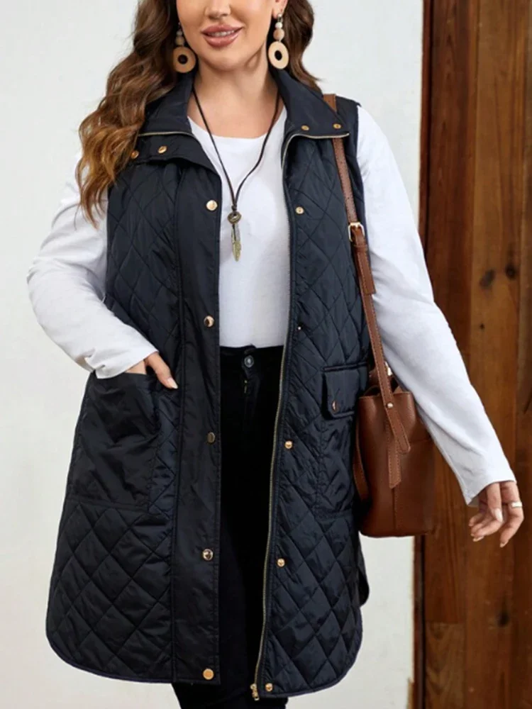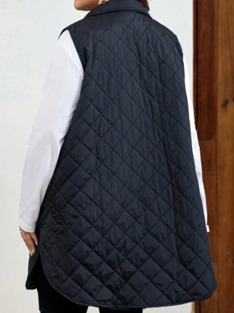 Women Plus Size Parkas Vest Zipper Fly Casual Vintage Office Lady Turn Down Collar Pockets Winter Autumn Vest Jacket Coats 2024