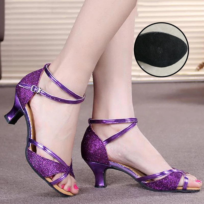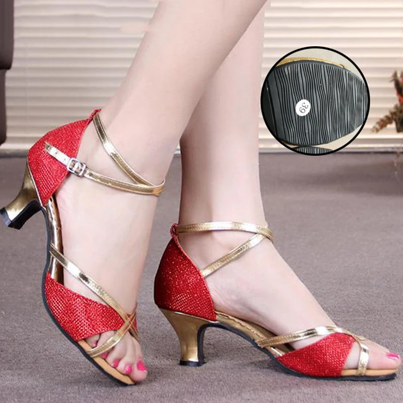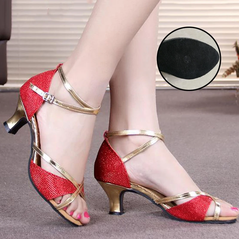 Women Prom Dance Sandals Latin Ballroom Shoes Salsa Dance Shoes Square Middle Heels Mixed Colors Buckle Sandals for Summer