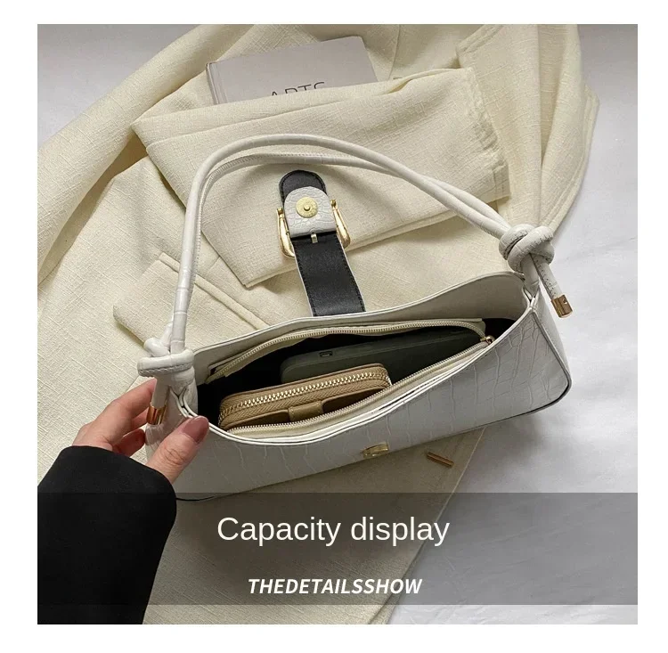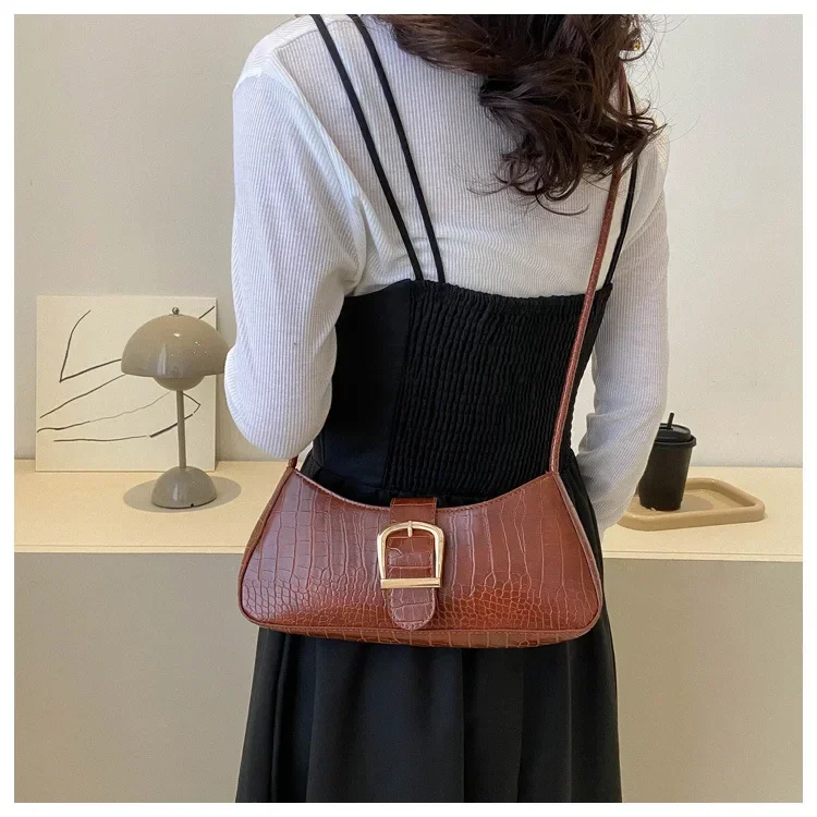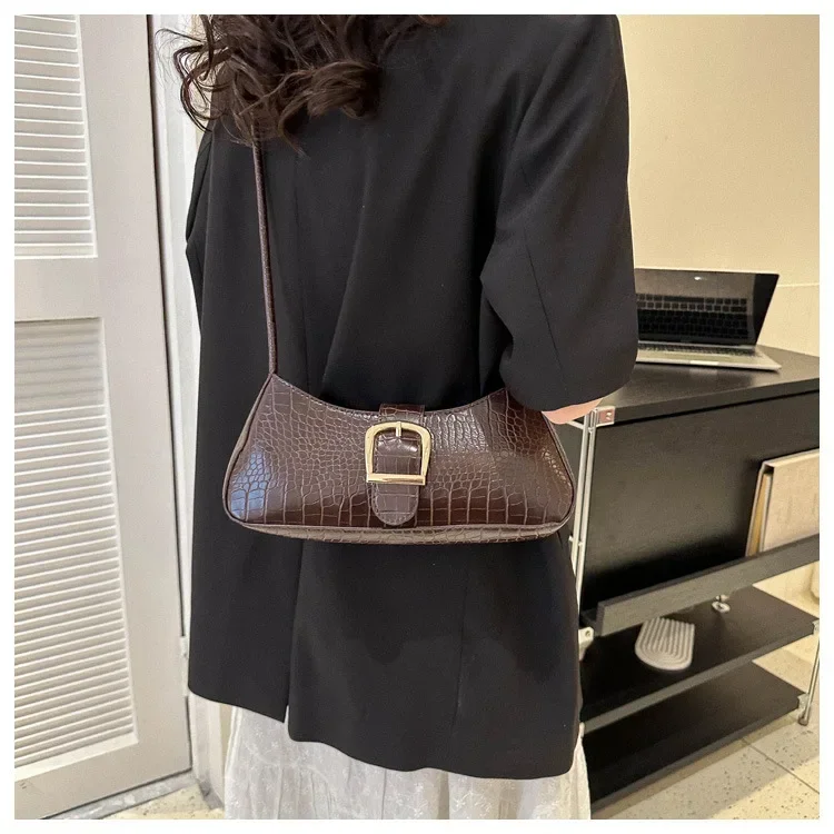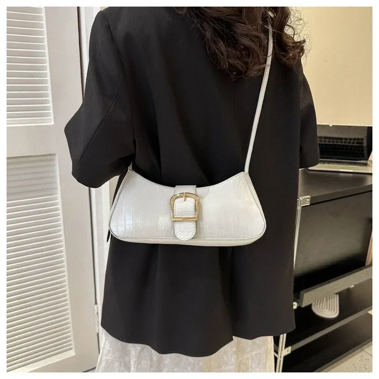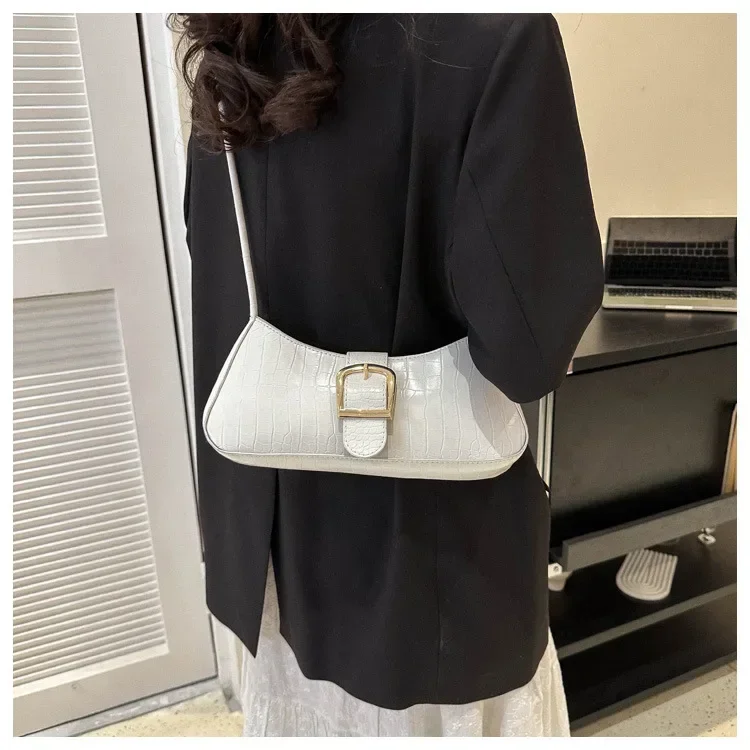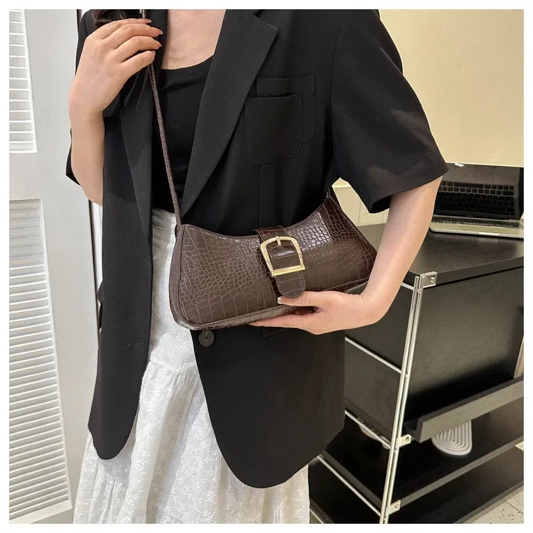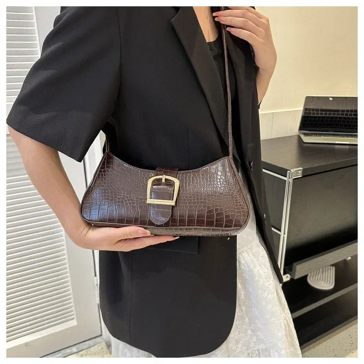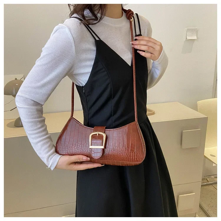 Women Stylish PU Leather Sling Bag Solid Color Shoulder Bag Underarm Bag Fashionable Portable Large Capacity Handbag Bolsos