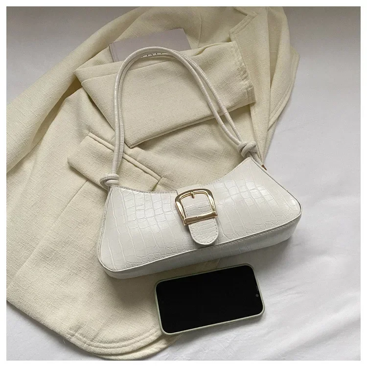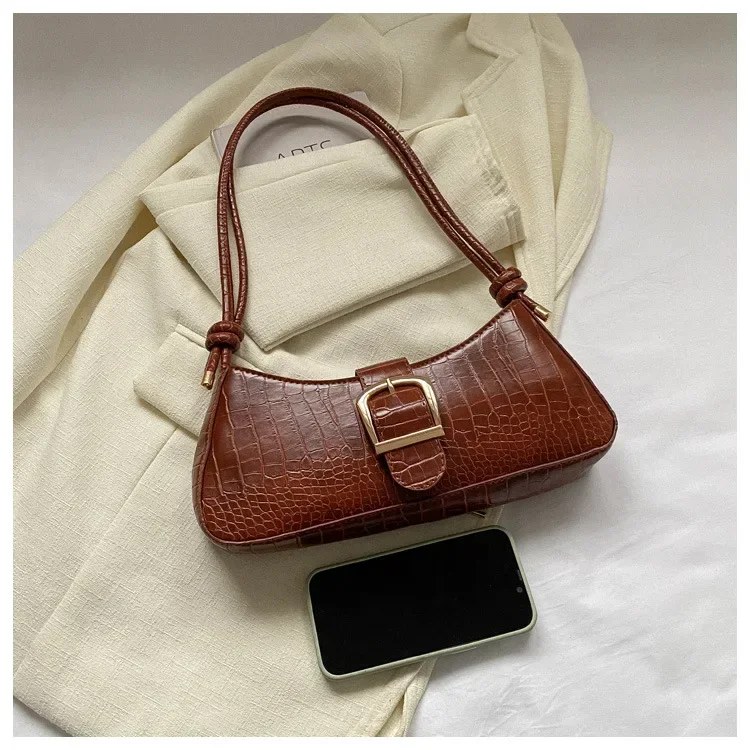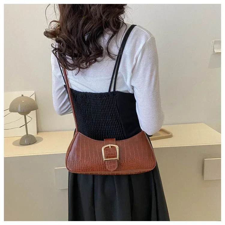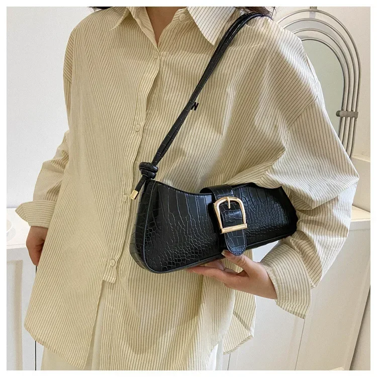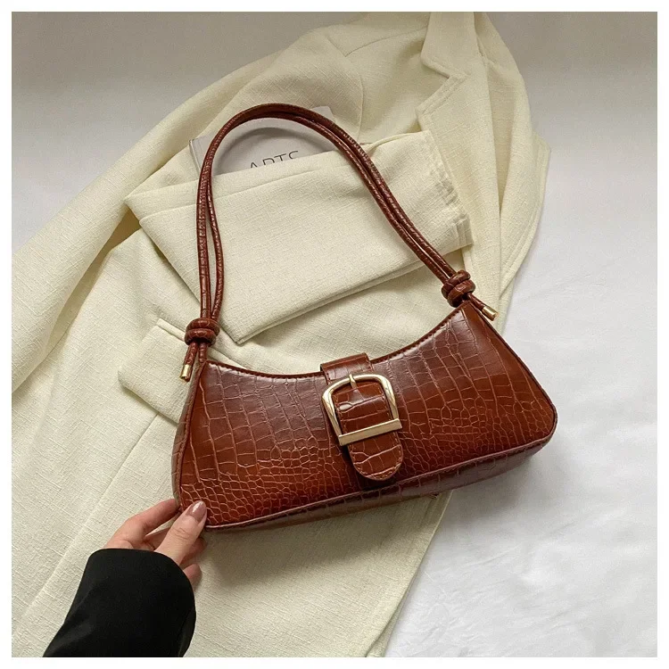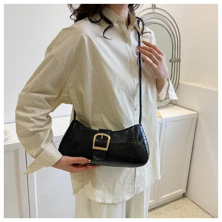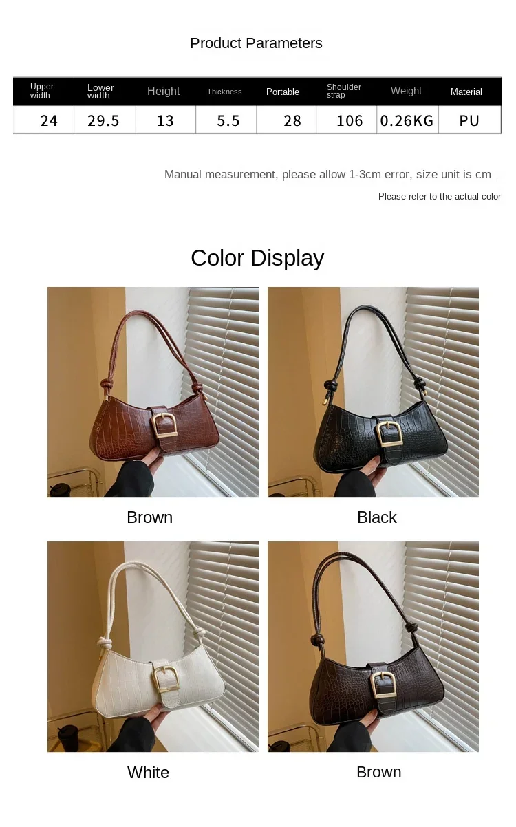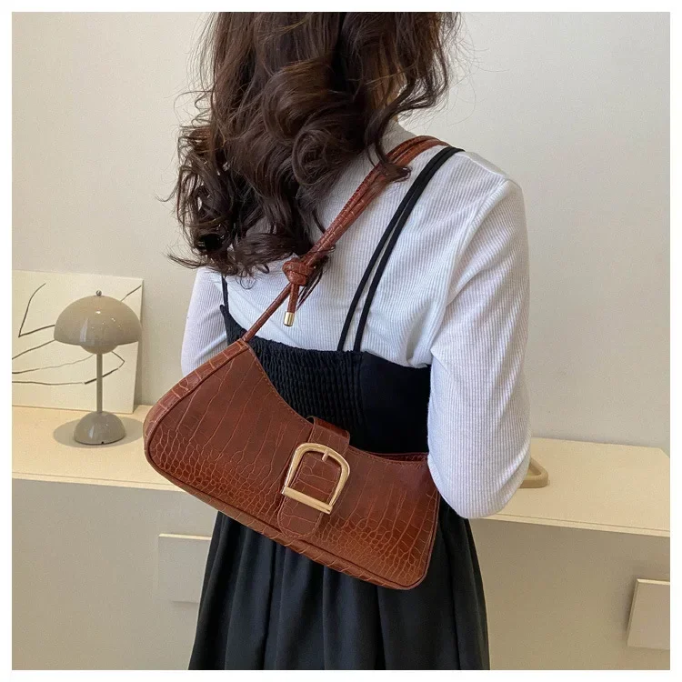 Women Stylish PU Leather Sling Bag Solid Color Shoulder Bag Underarm Bag Fashionable Portable Large Capacity Handbag Bolsos