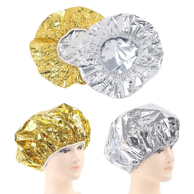 Women thermal Insulation Aluminum Foil Solid Sleeping Hat Night Sleep Cap Hair Care Bonnet For Cap Shower Turban