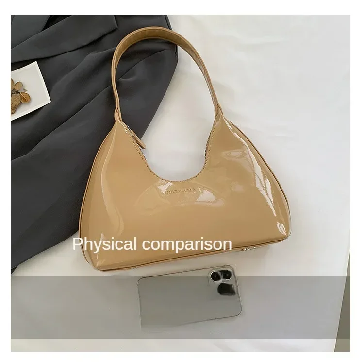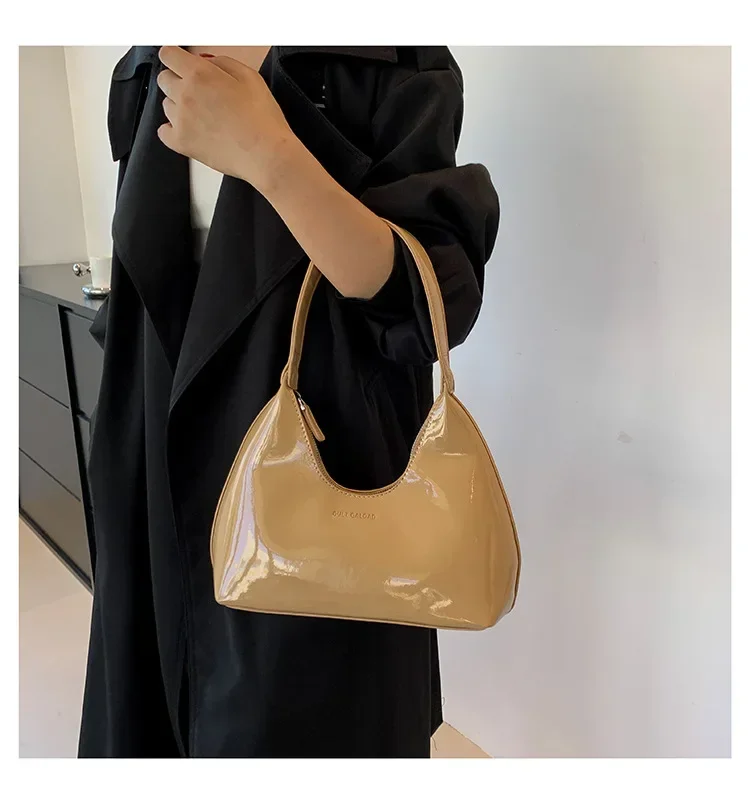 Women Trendy Designer Solid Shoulder Bags for Handbags and Purses 2024 New Fashion Patent Leather Underarm Ladies Tote Bags