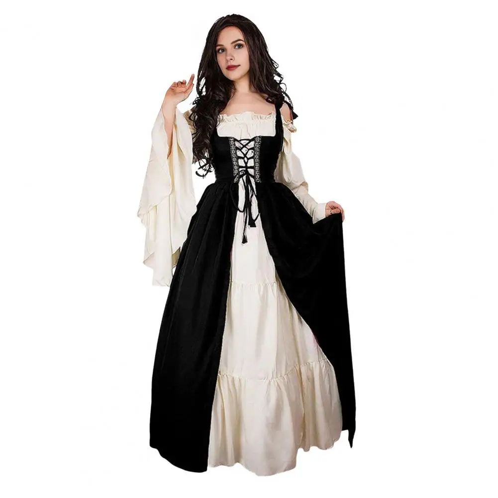 Women Vintage Dress Vintage Renaissance Court Loyal Halloween Costume Maxi Dress with Shirring Edge Square Neck Tight for Women