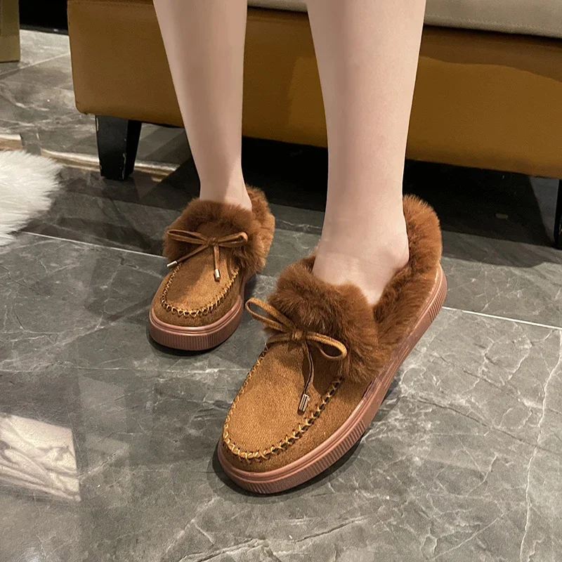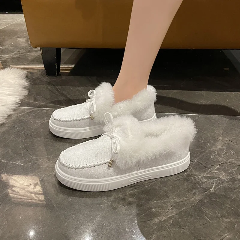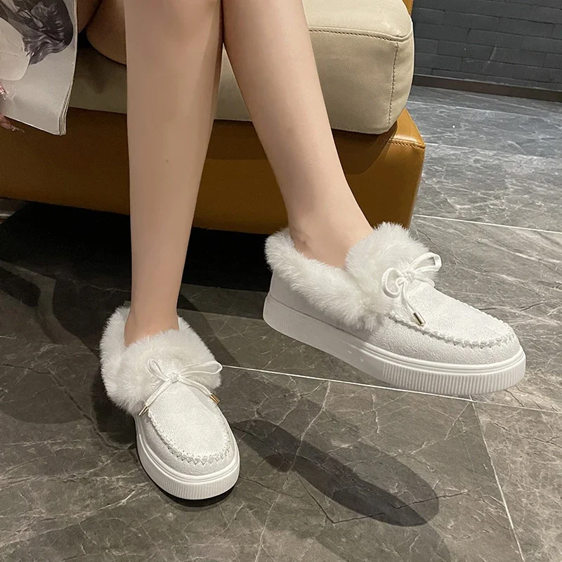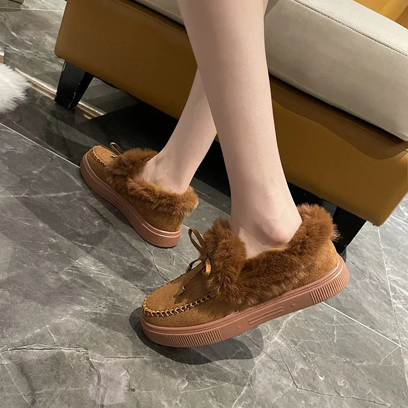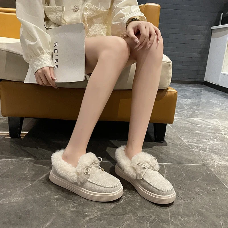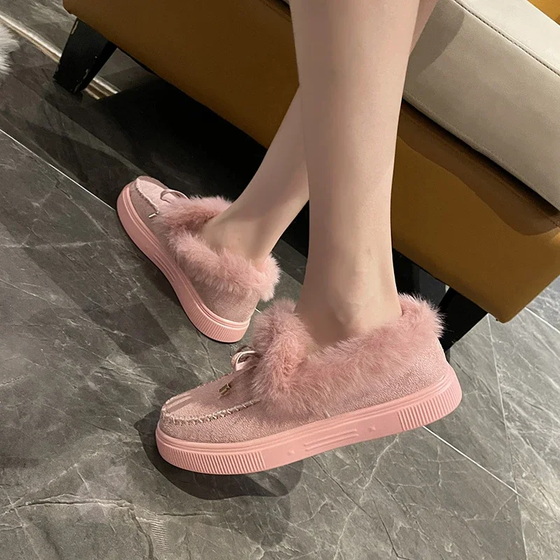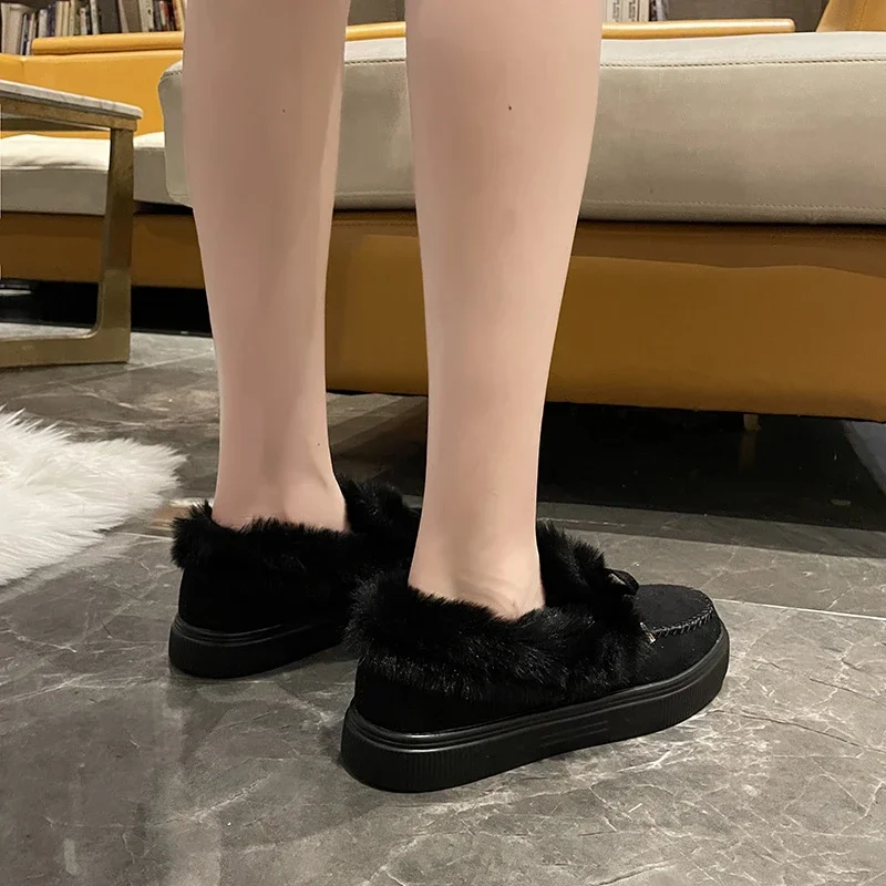Women Snow Boots for Solid Platform Artificail Suede Boots Autumn Winter Warm Shoes Boats Large Size 44 Slip On Cotton Shoes