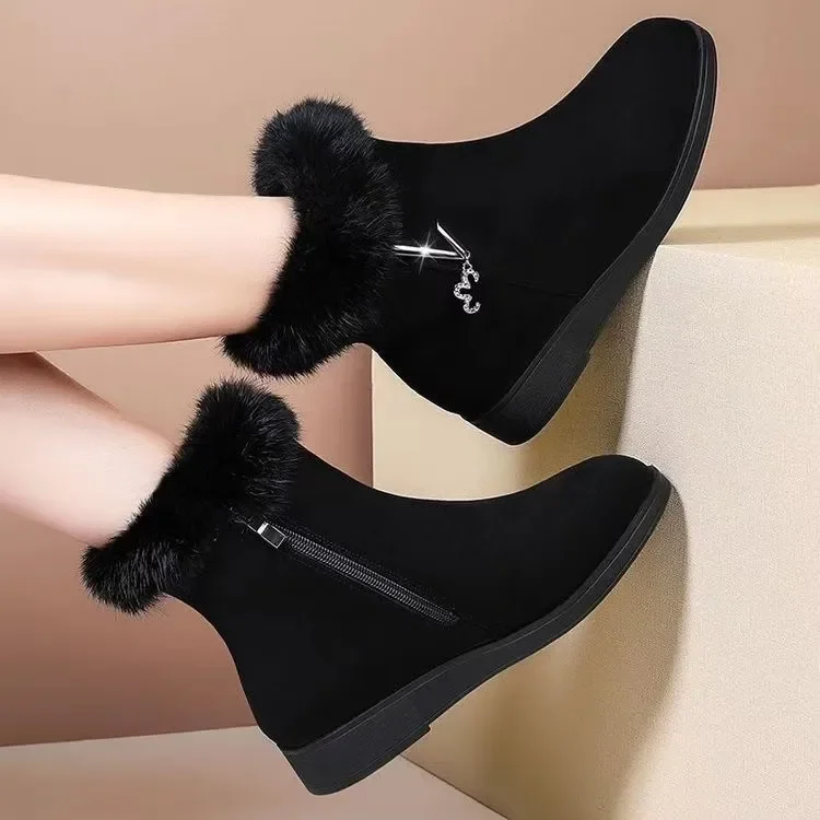 Women’s Ankle Boots 2024 New Snow Boots Winter Thick Cotton Shoes Flat Bottom Plush Zipper Warm Comfort Non Slip Cotton Boots