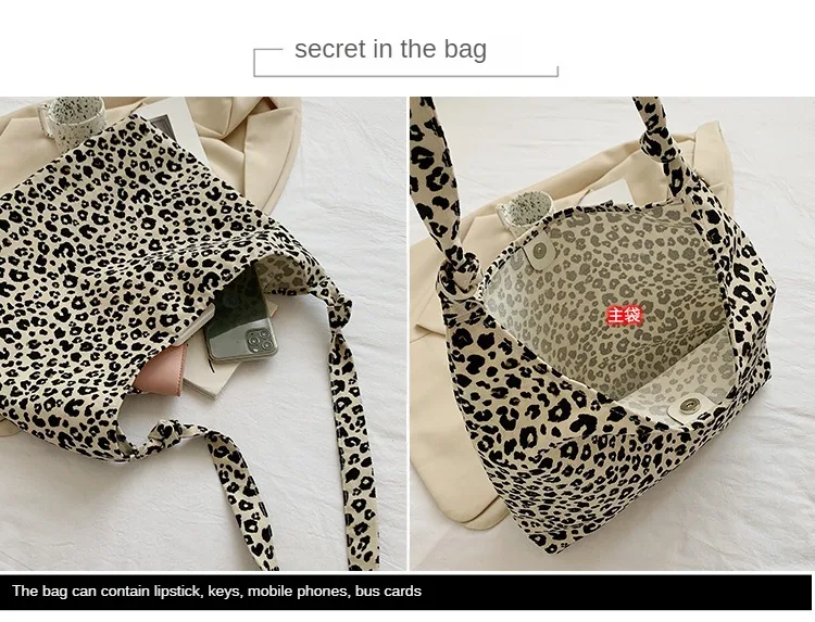 Women’s Bag Cheap Casual Large Capacity Shoulder Bags Shopper Canvas Fashion Harajuku Zipper Leopard Print Ulzzang Handbags