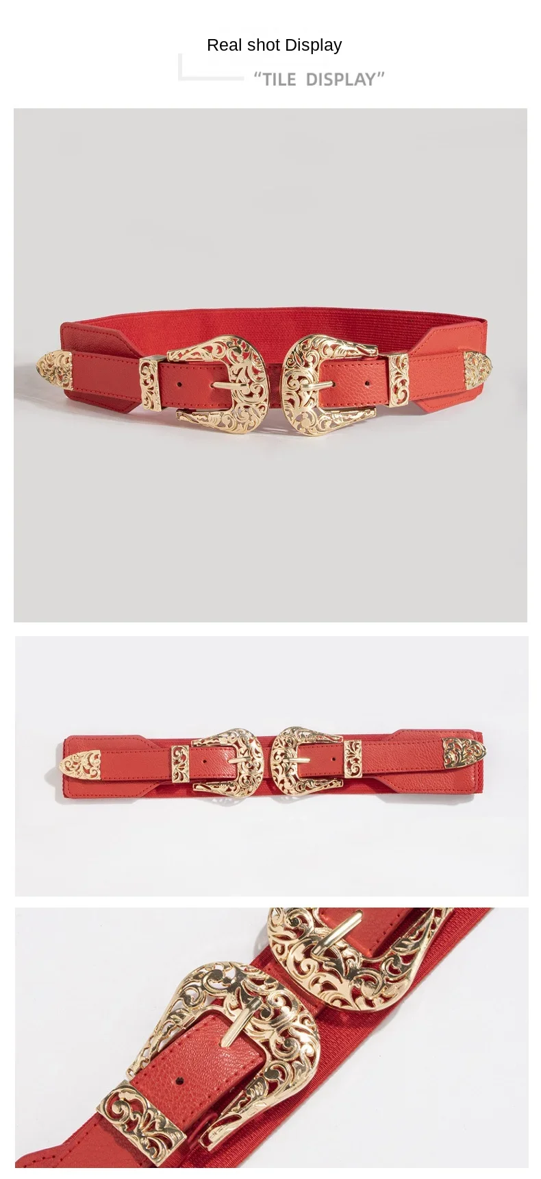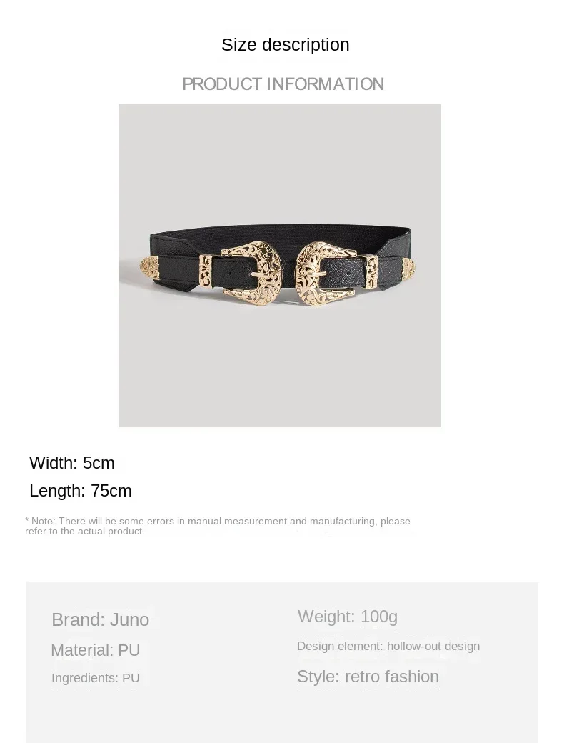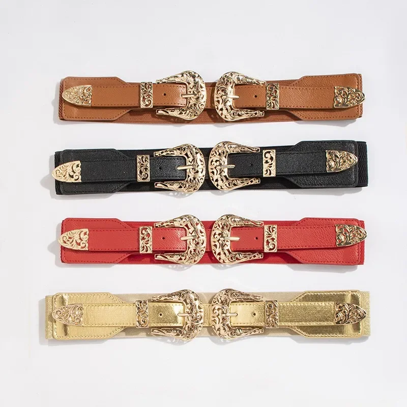 Women’s Belt Fashionable Retro Buckle Elastic Wide Hollow Elastic Adjustable European and American Fashion High-quality