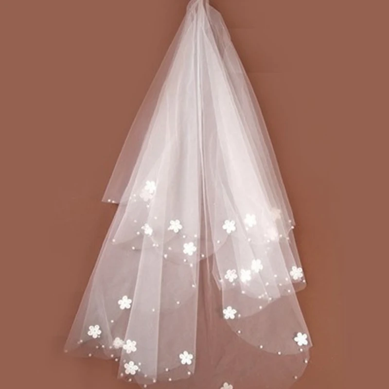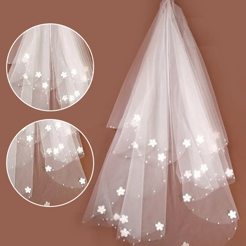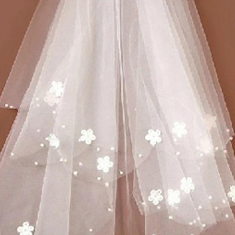 Womens Bride Married Veil Romantic Sweet Flower Appliques Short Veil Bridal for Marriage Wedding Accessories
