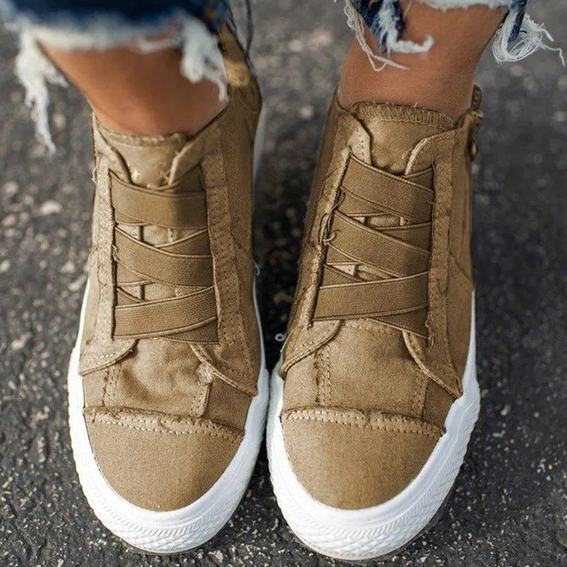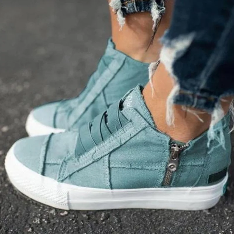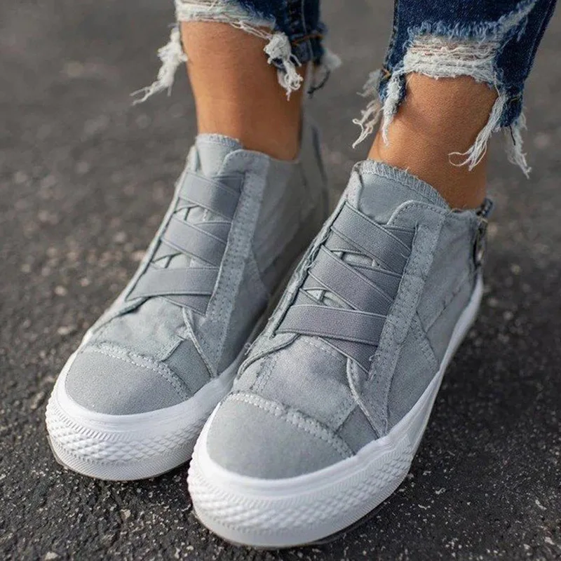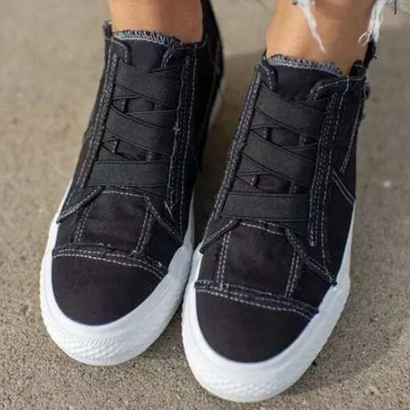 Women's Casual Zipper Vulcanized Canvas Shoes, Oversized New Casual Women's Shoes, Flat Bottom Elastic Casual Shoes, 2021