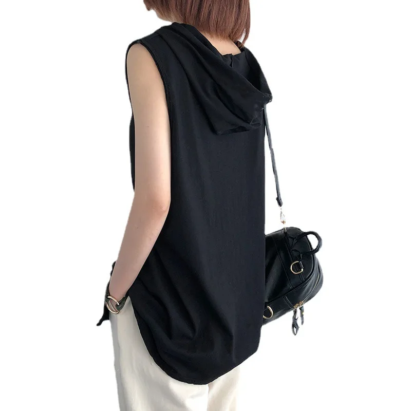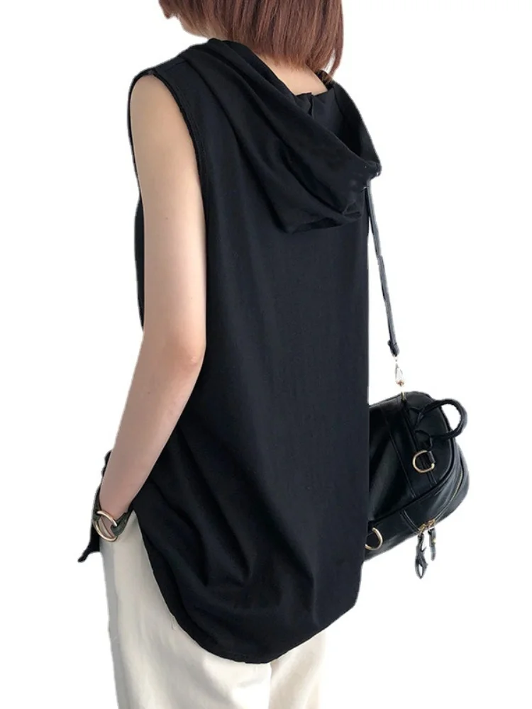 Women’s Clothing Casual Loose Sleeveless Hoodies Summer New Solid Color Fashion Basics Pockets Patchwork Sweatshirts for Female