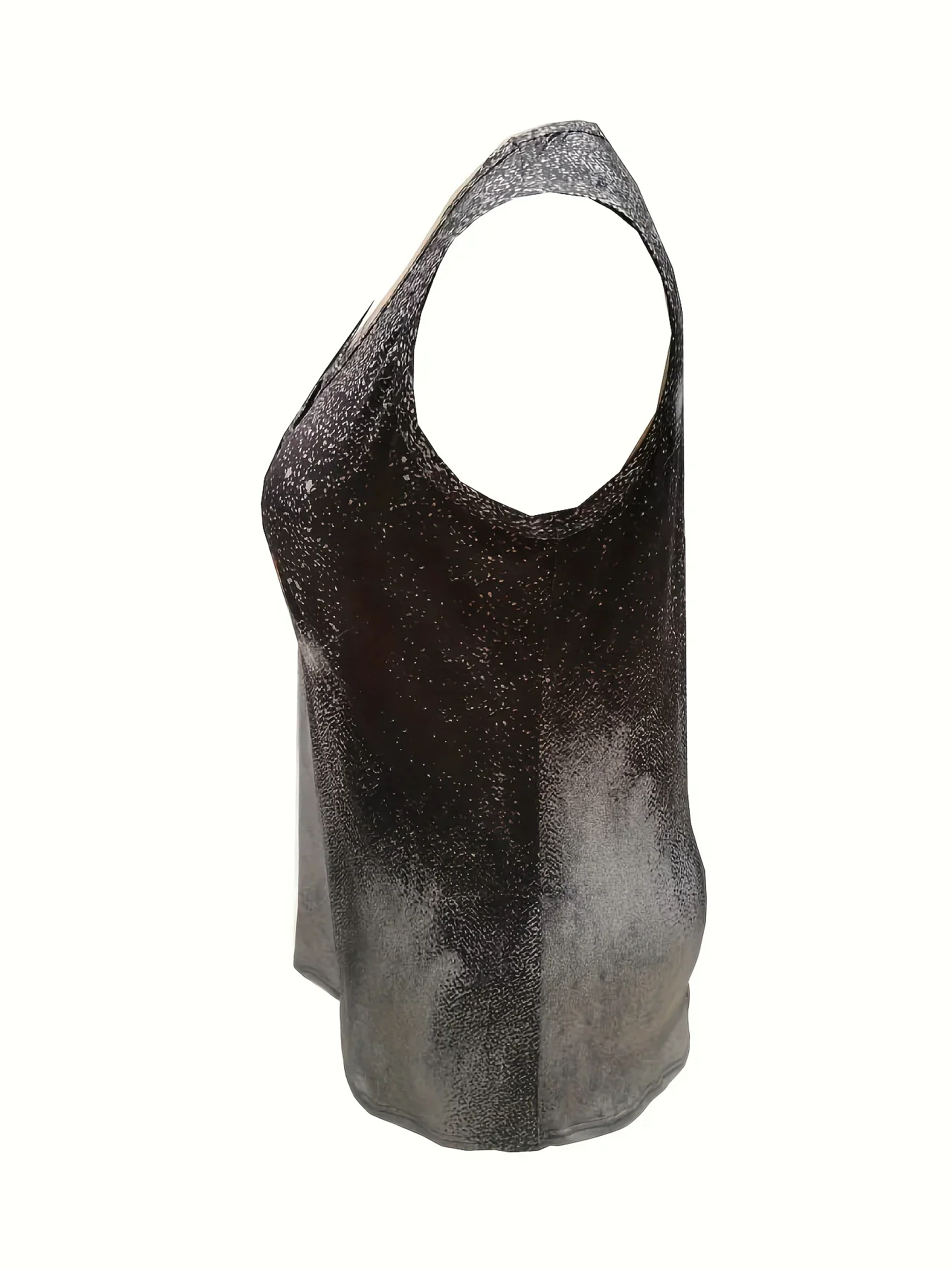 Plus Size Allover Print Tank Top Elegant Scallop Trim V Neck Casual Sleeveless Tank Top Women's Plus Size Clothing