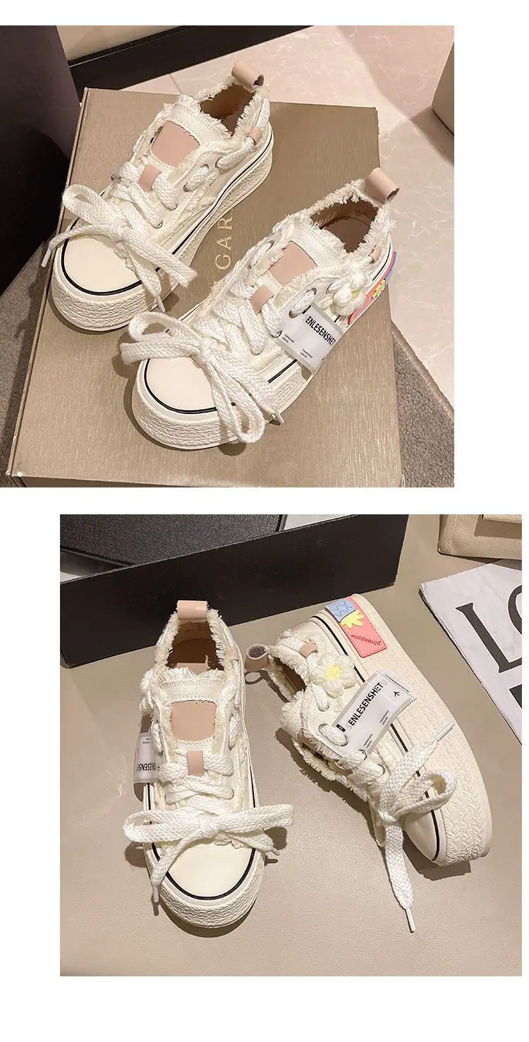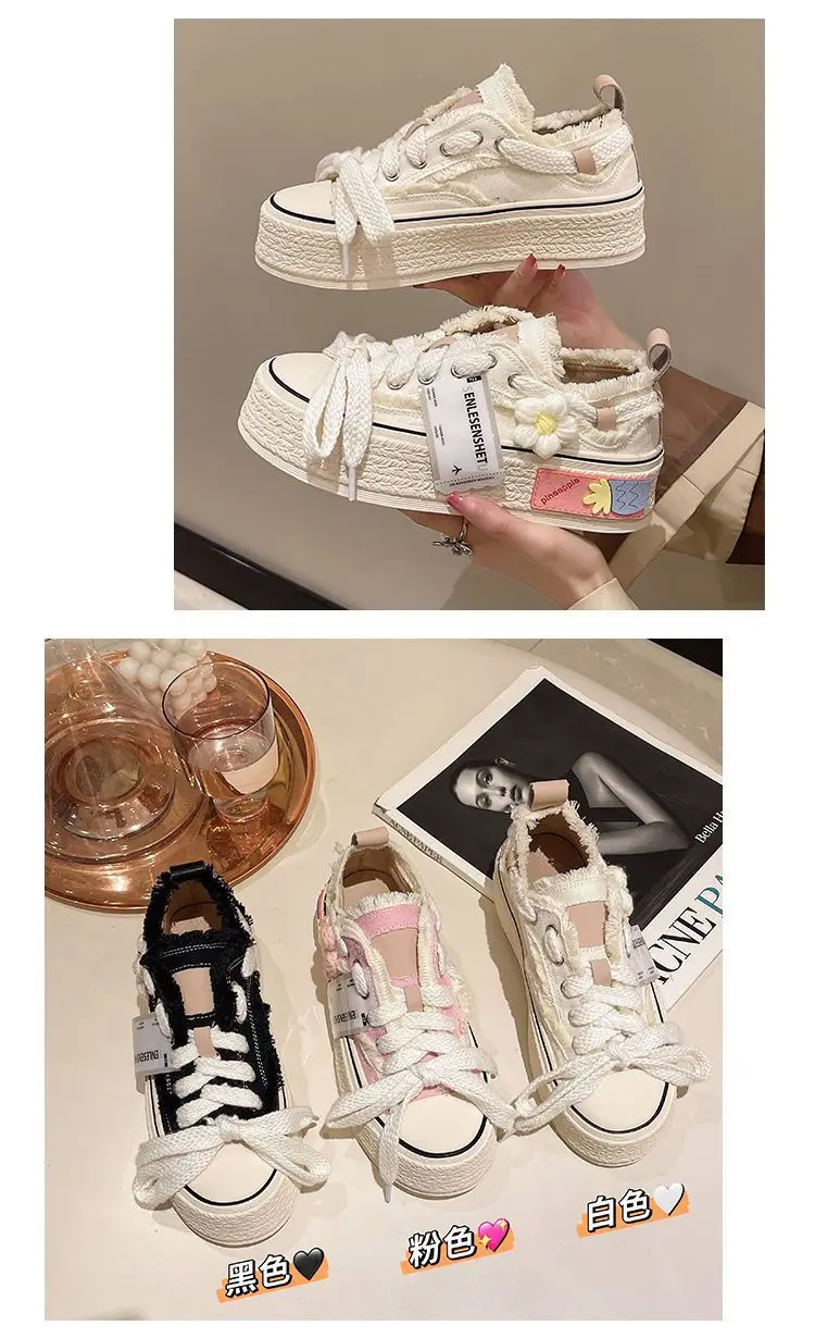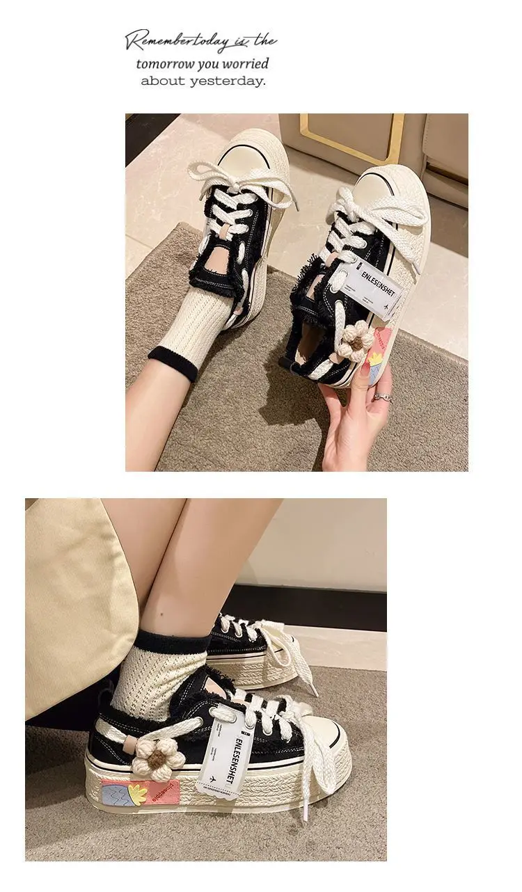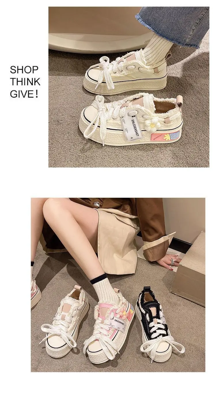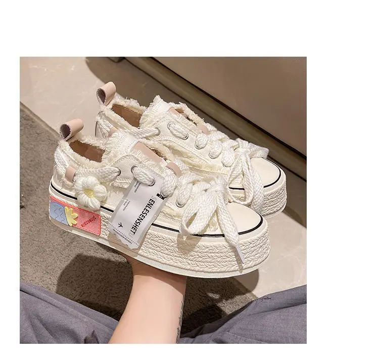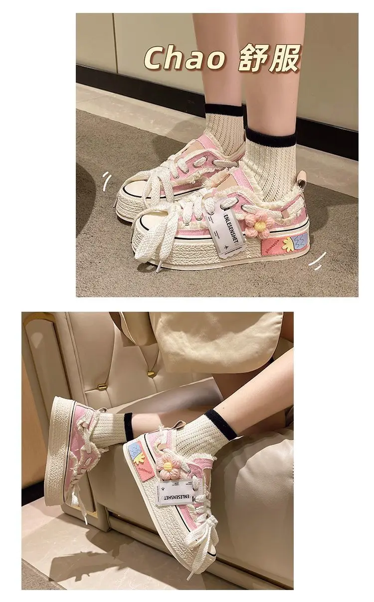 Womens Flat Sneakers New Style Breathable Floral Canvas Shoes Autumn Thick Platform All-match Student Sneakers Zapatillas Mujer