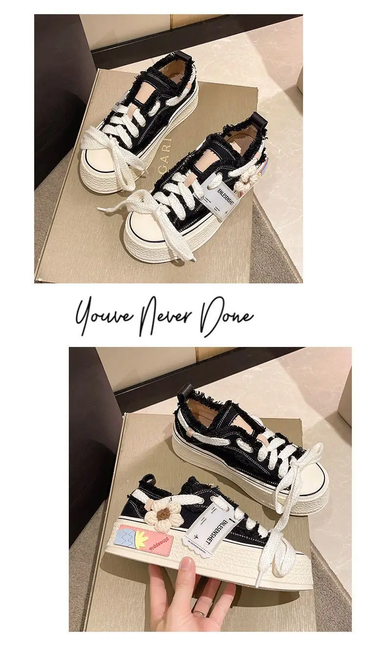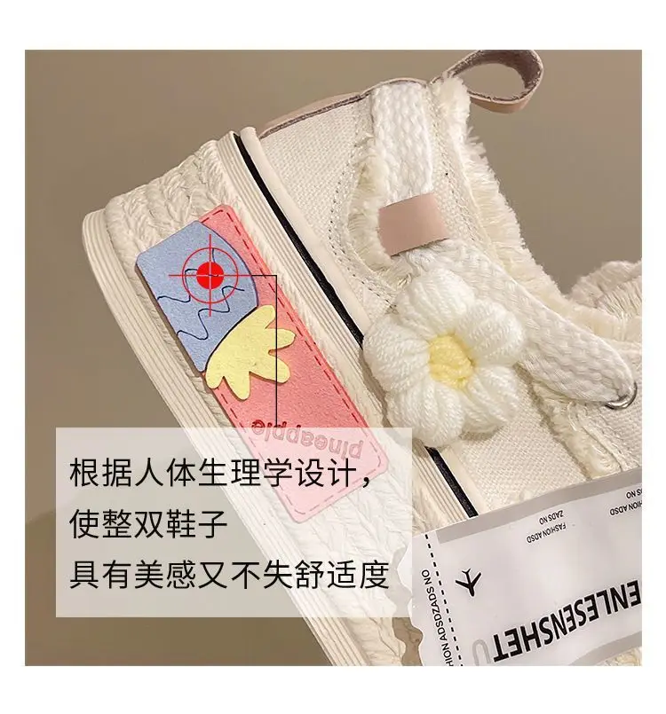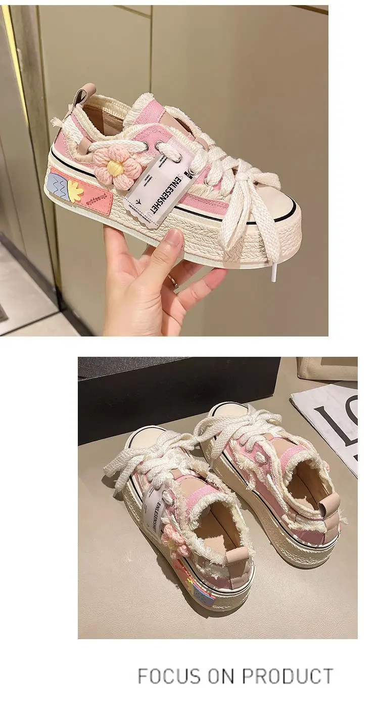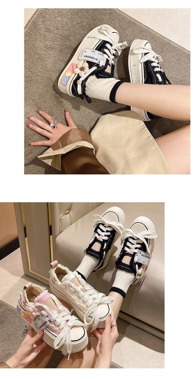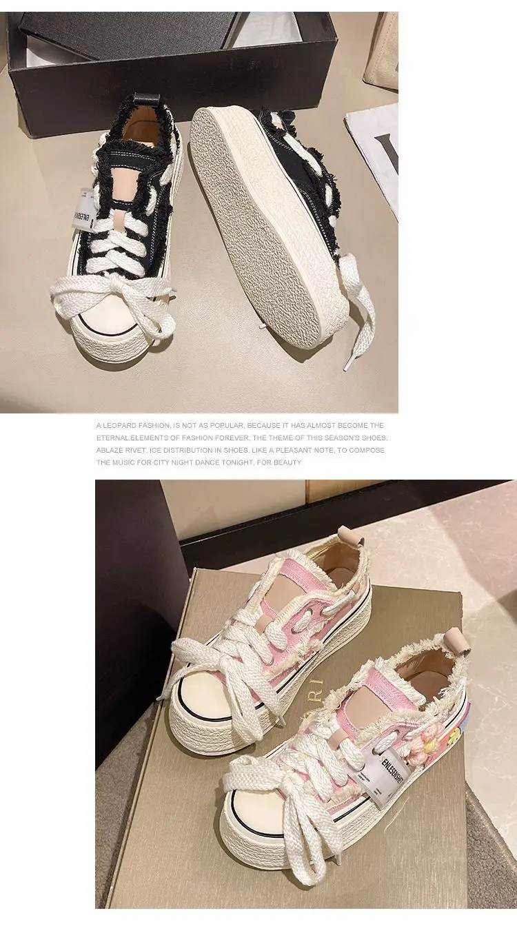 Womens Flat Sneakers New Style Breathable Floral Canvas Shoes Autumn Thick Platform All-match Student Sneakers Zapatillas Mujer