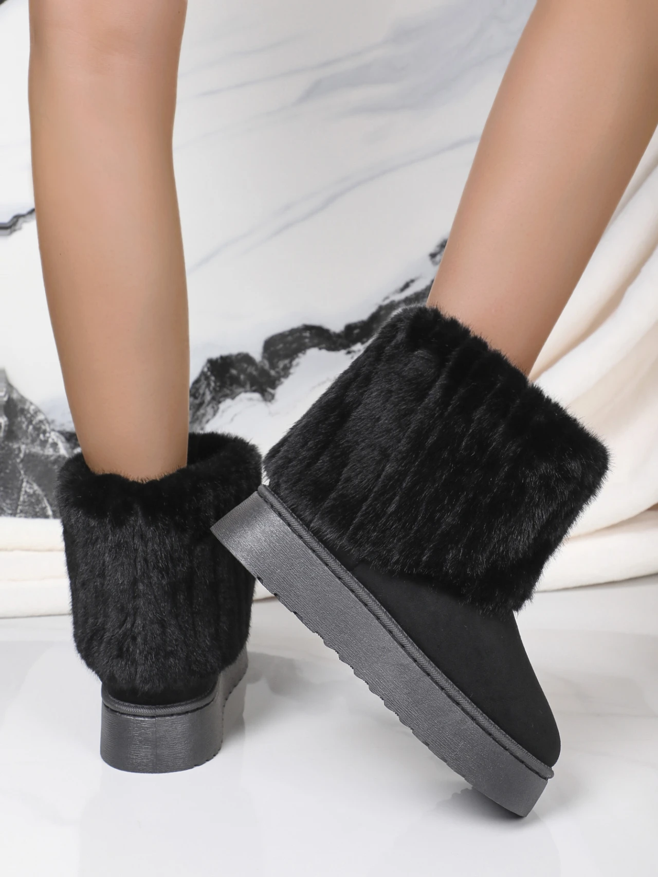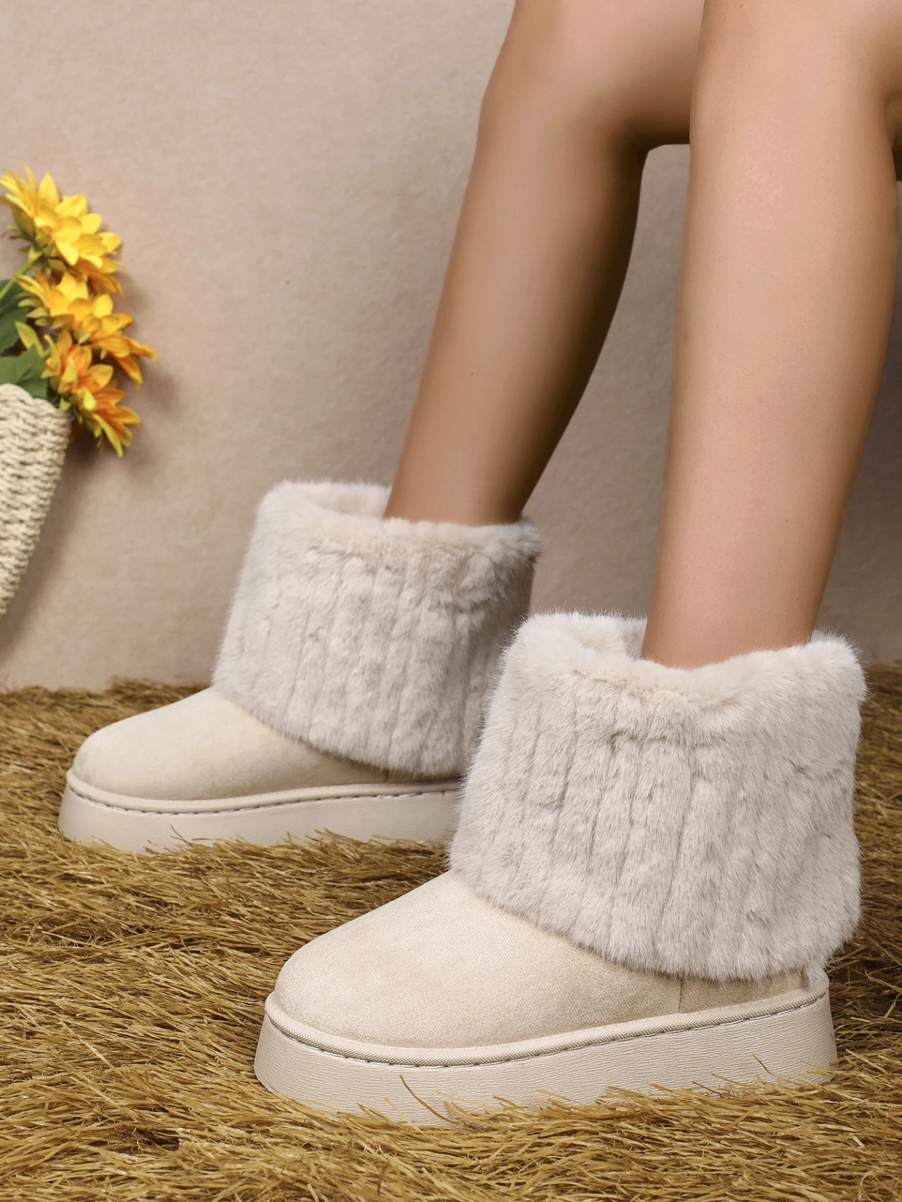 Women’s Foldover Cuff Woven Plush Platform Ankle Boots Soft Comfort Fur Inside Winter Boots 2024 New Fashion Chunky Snow Boots