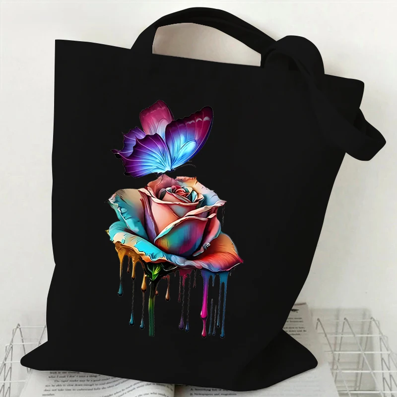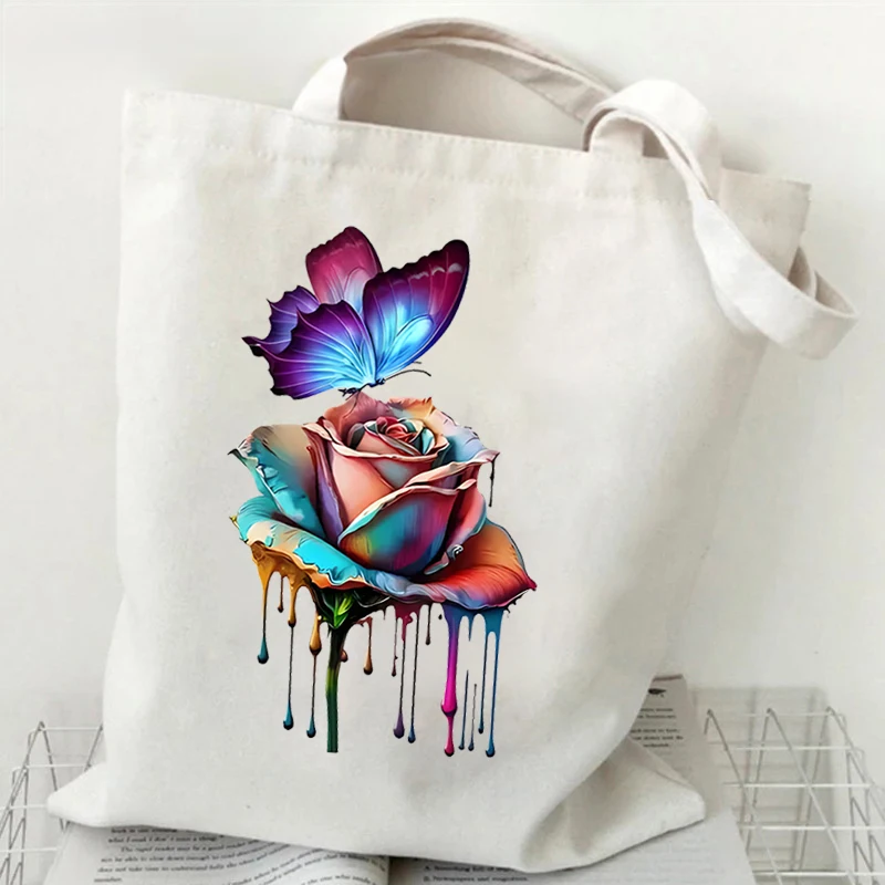 Women’s Handbags Vintage Flower Butterfly Print Storage Handbag Technically Design Canvas Shopping Bag Flower Women Shoulder Bag