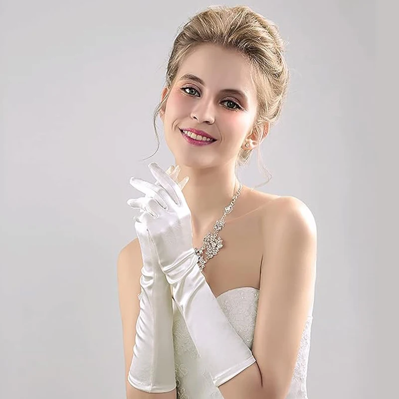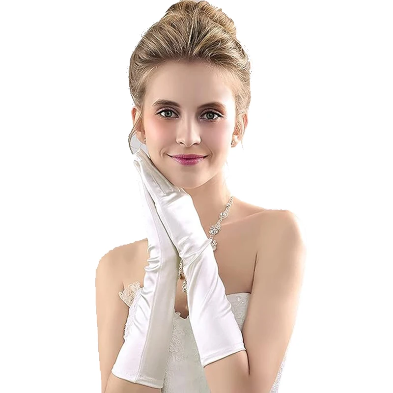 Women’s long satin stretch gloves elbow long Opera party wedding Christmas party performance banquet dress up