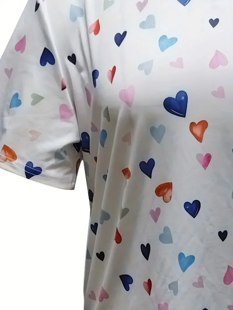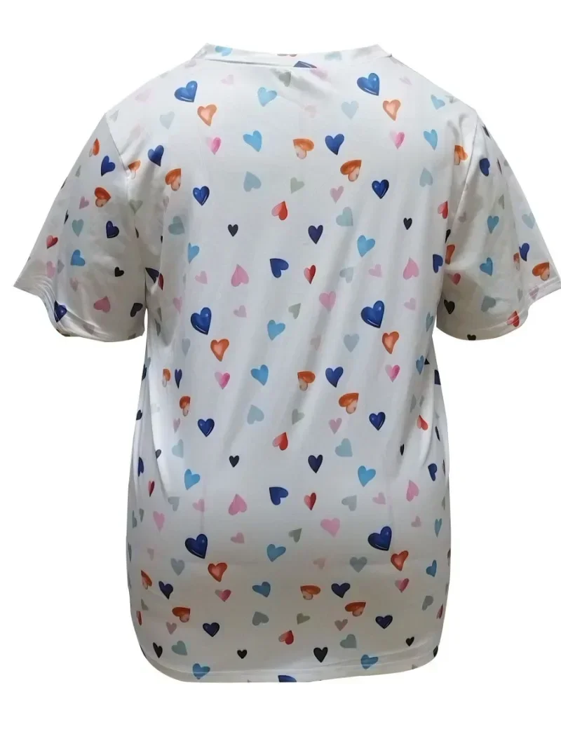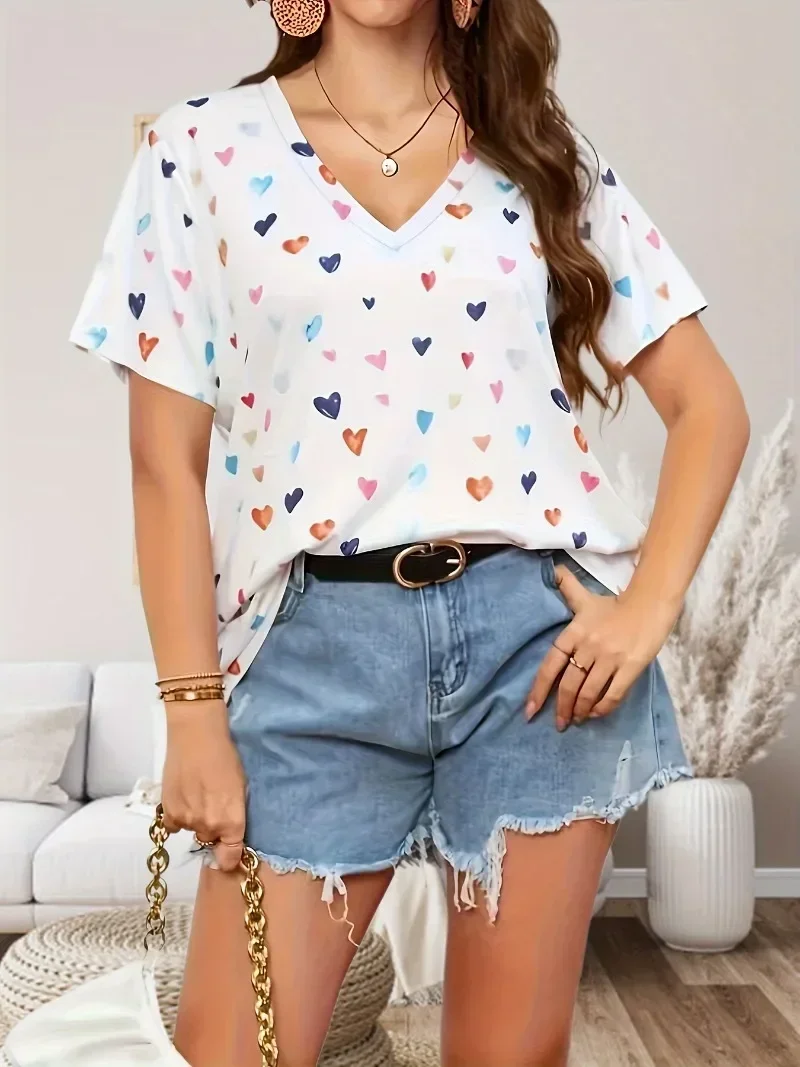Women’s Plus Size 1XL-5XL Peach Heart Printed T-shirt Casual Top Breathable Fashion V-neck T-shirt