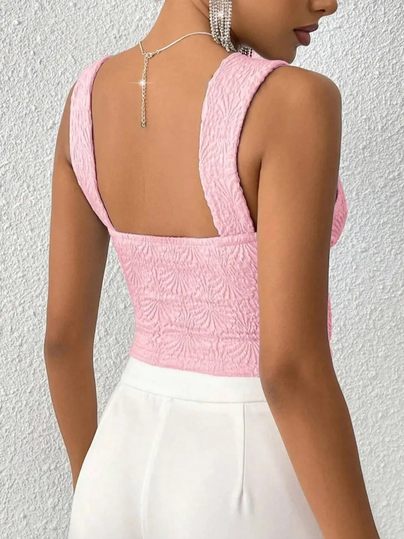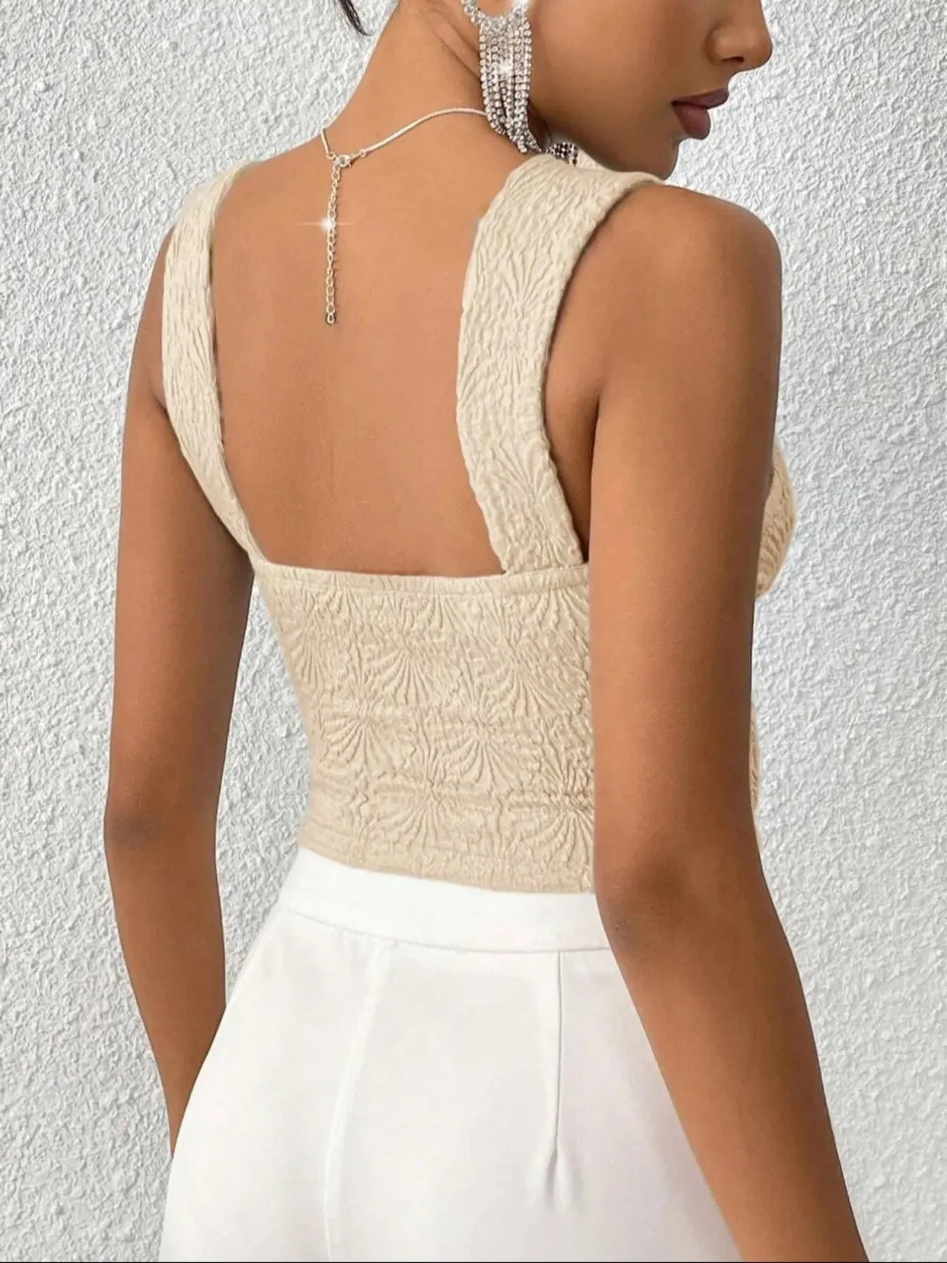 Women’s Plus Size 1XL-5XL Summer Versatile Solid Color Slim Fit Tank Top Jacquard Knitted Tank Top Casual Square Neck Tank Top