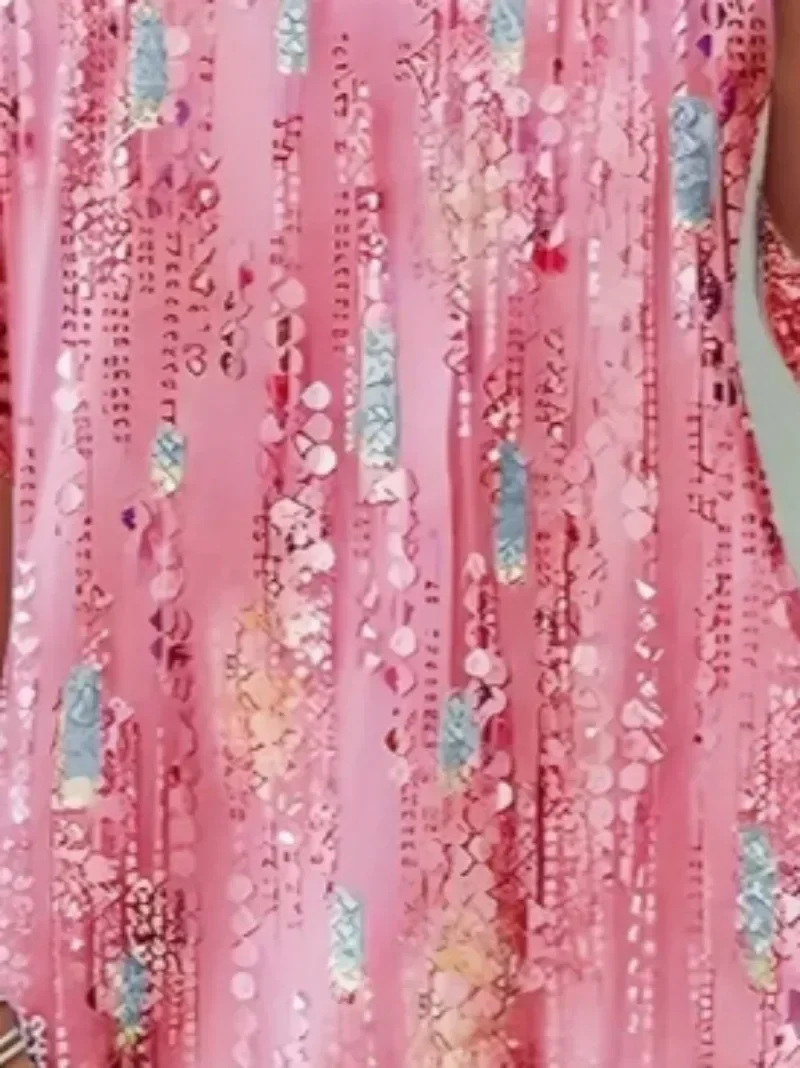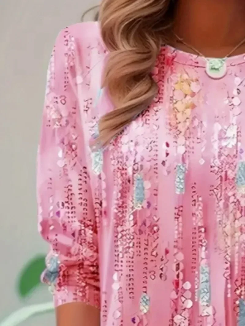 Women’s Plus Size Fashion Quarter Sleeved Round Neck T-shirt Ladies Casual Top Spring and Summer Printed Fashionable T-shirt