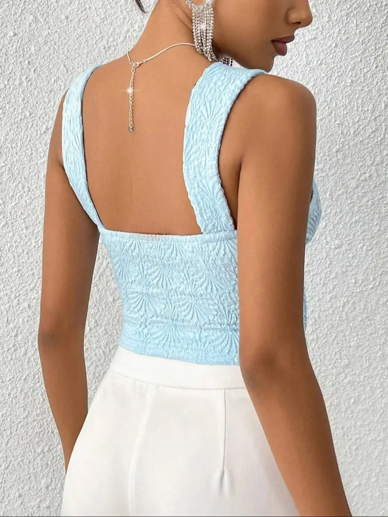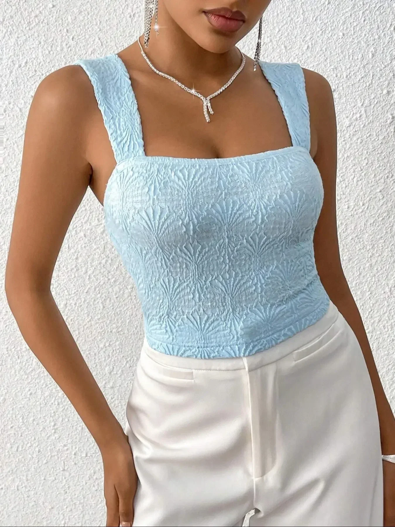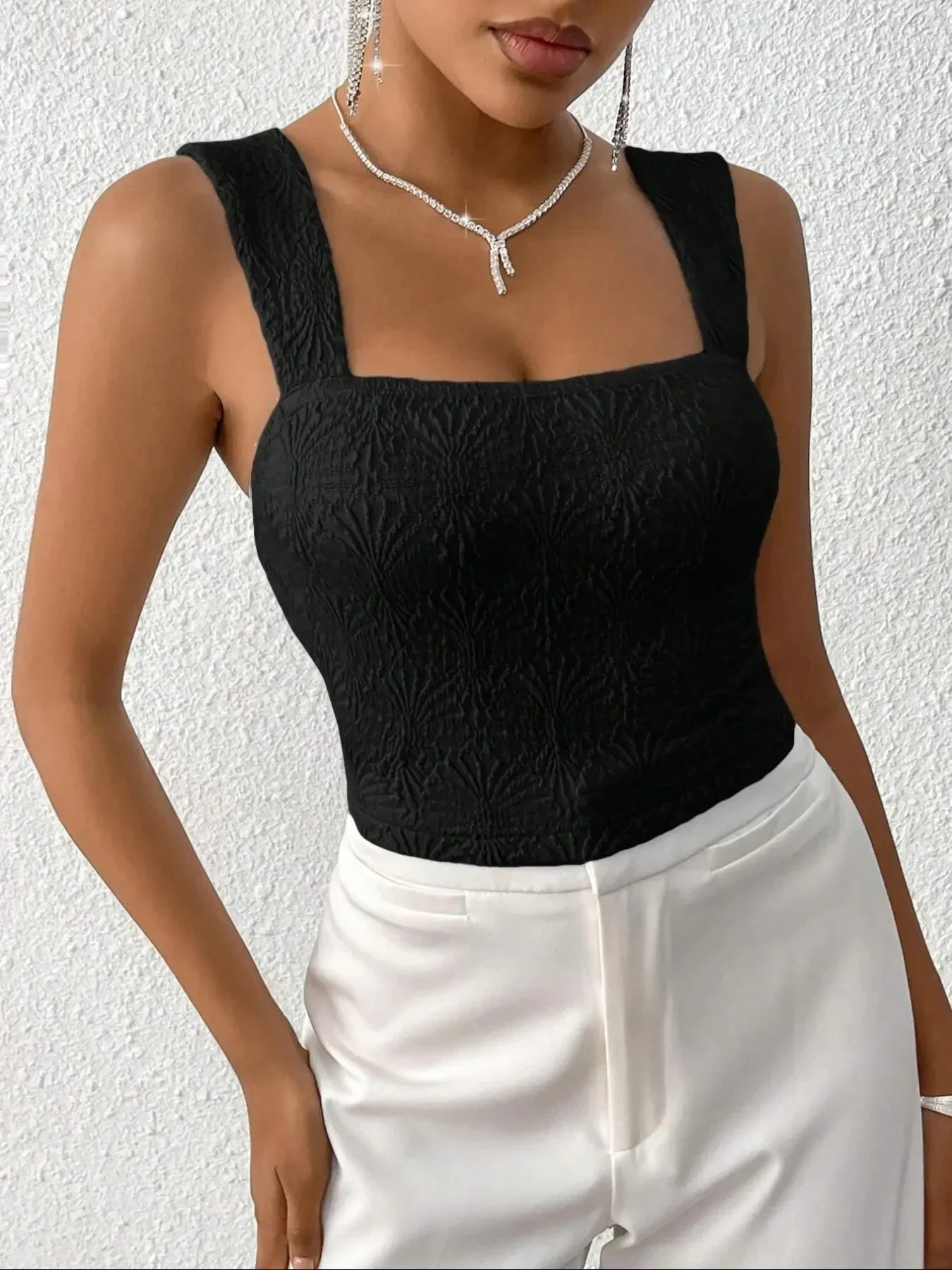 Women’s Plus Size Summer Jacquard Knitted Tank Top Versatile Solid Color Slim Fit Tank Top Simple Casual Square Neck Tank Top