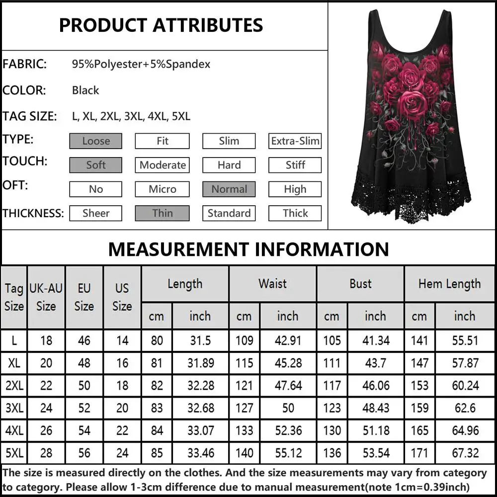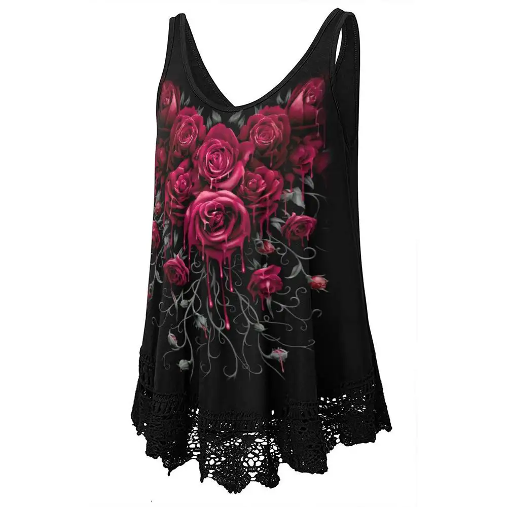 Features: Scoop neck,Sleeveless,Gorgeous lace hem, Rose printed,Basic and classical tank with various colors and plus size from L-5XL available