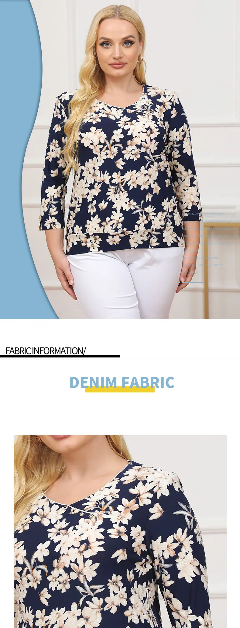 Women’s Plus Size Top Spring Fashion Elegant Top Suitable for Round Women’s Cotton Casual Top