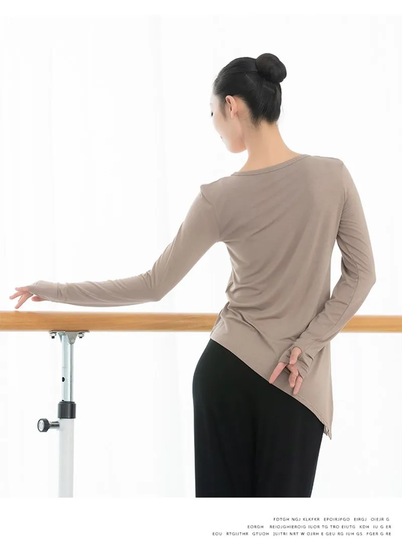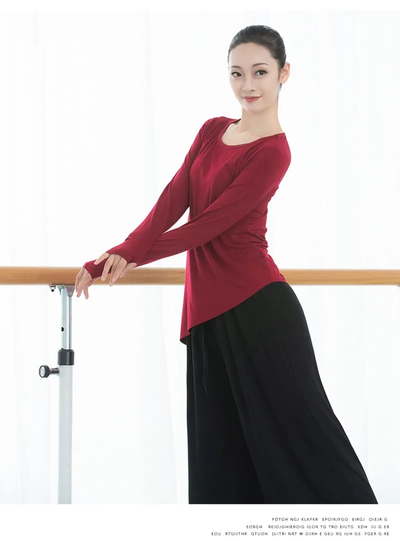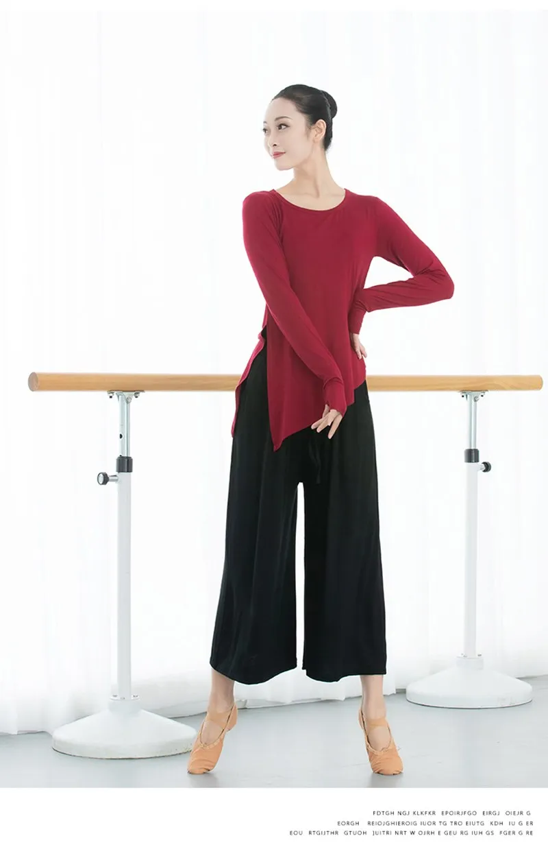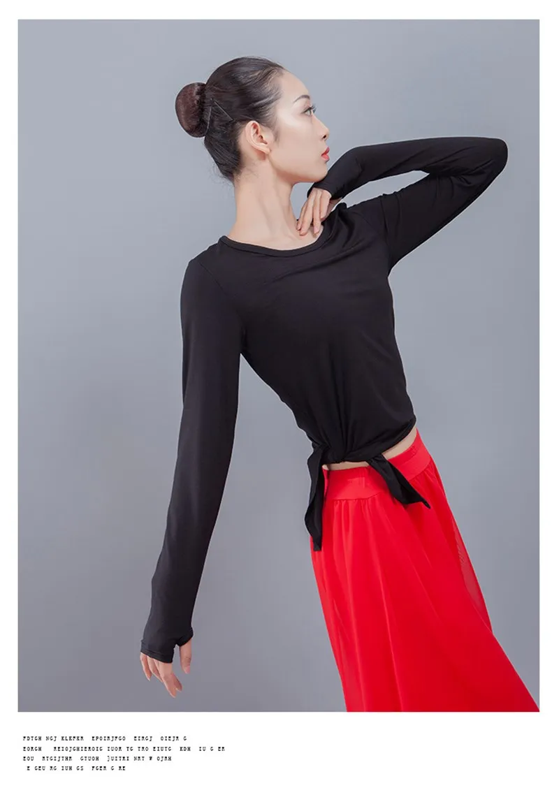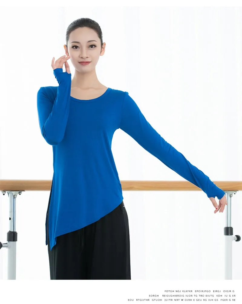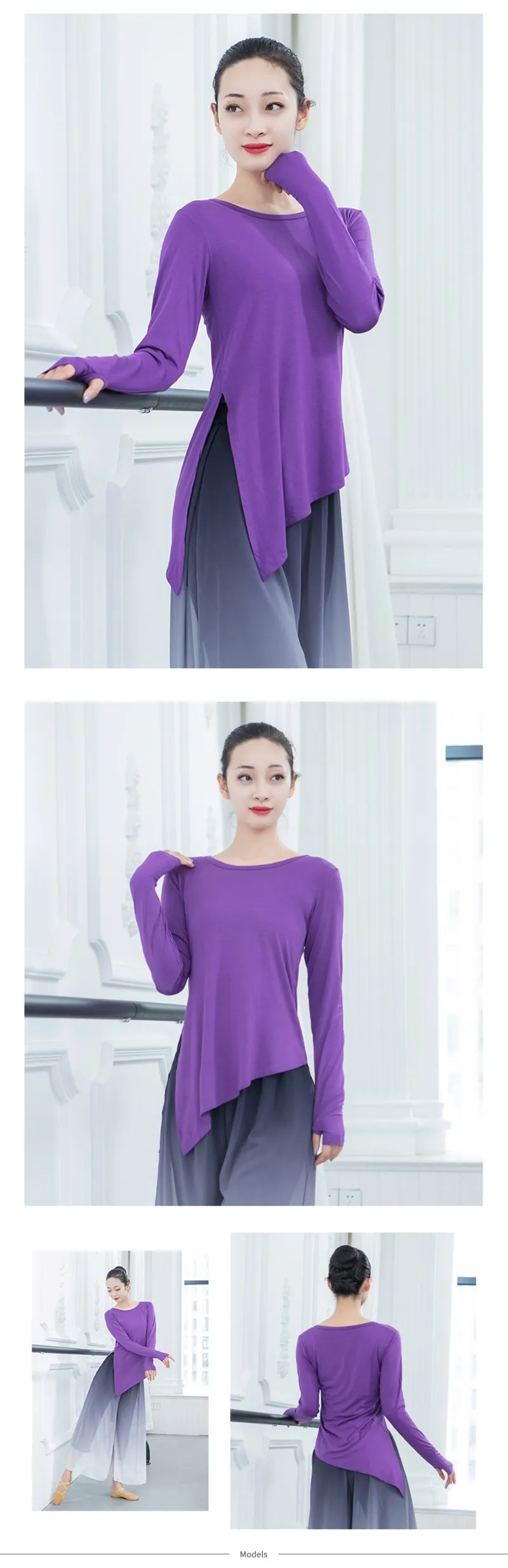 Womens Round Neck Finger Sleeve Modern Dance Wear Modal Yoga Practice Dress Side Lacing Classical Dance Top Blouse Plus Size 4XL
