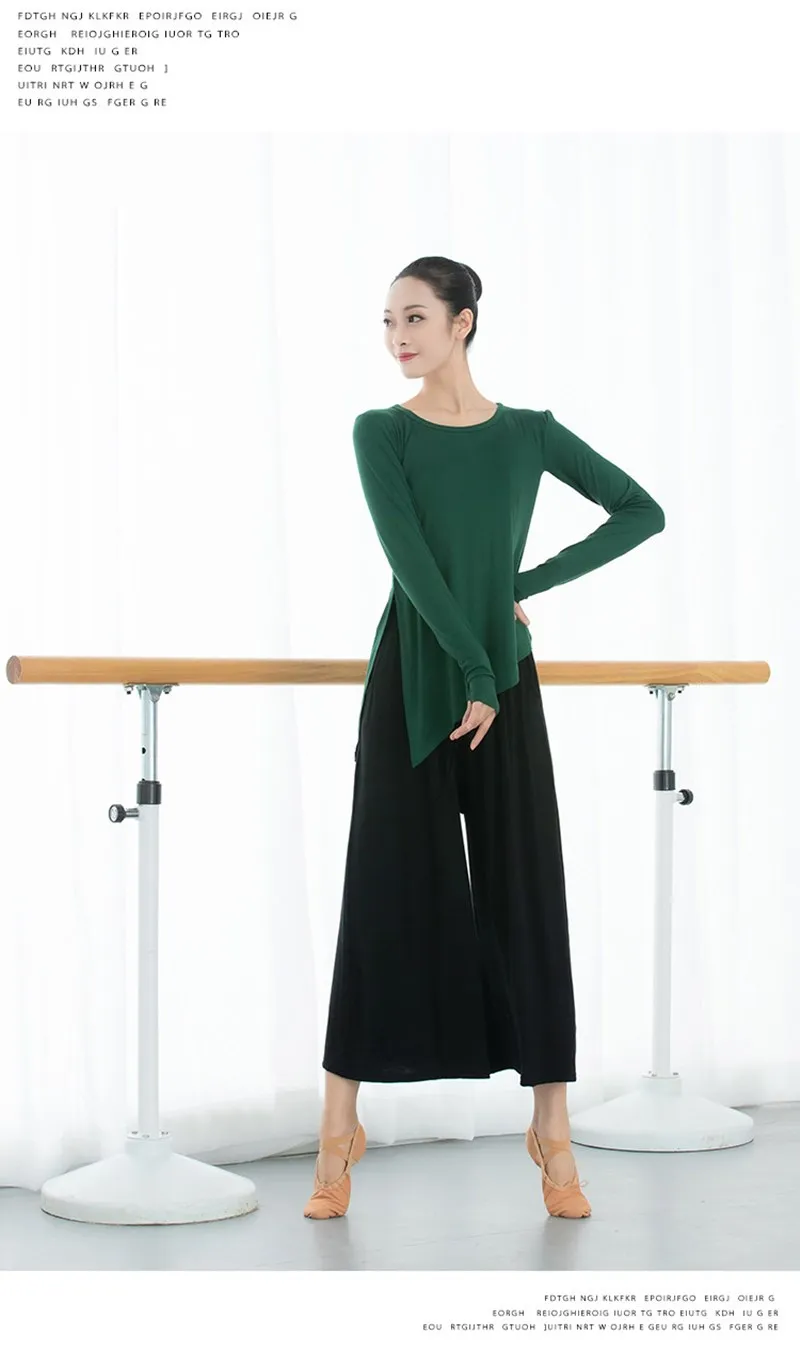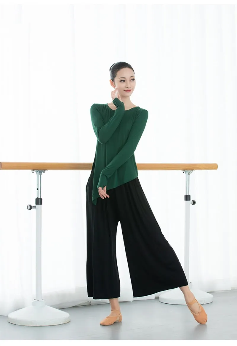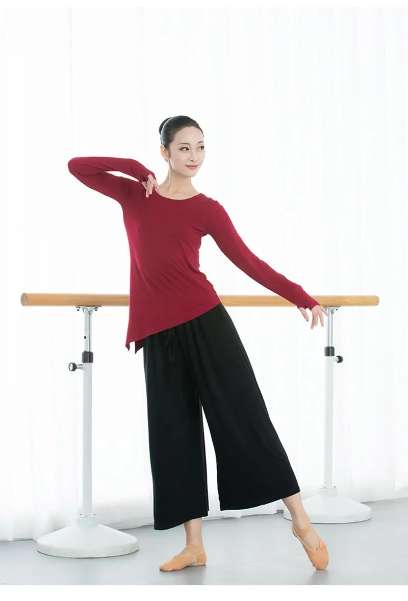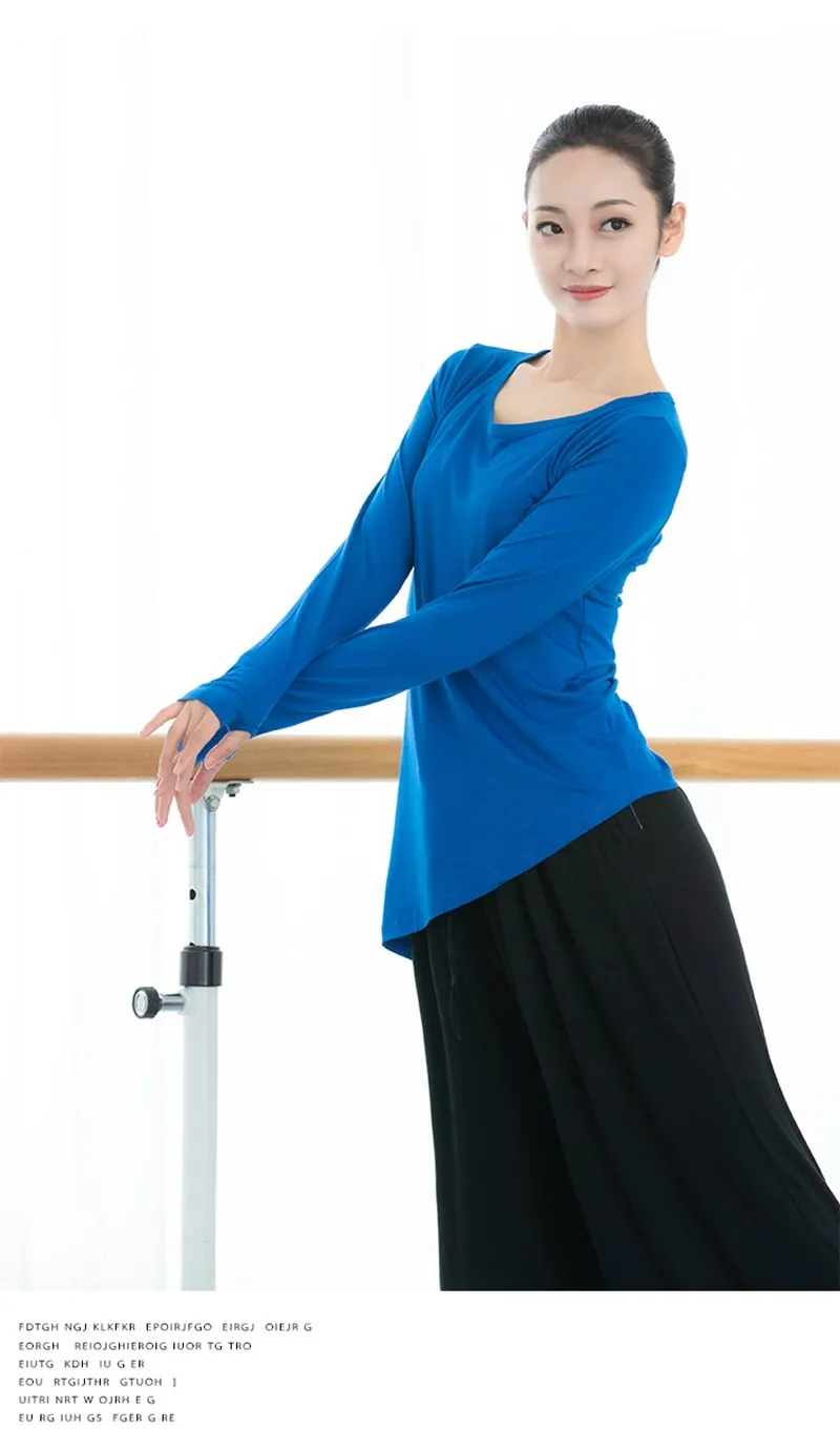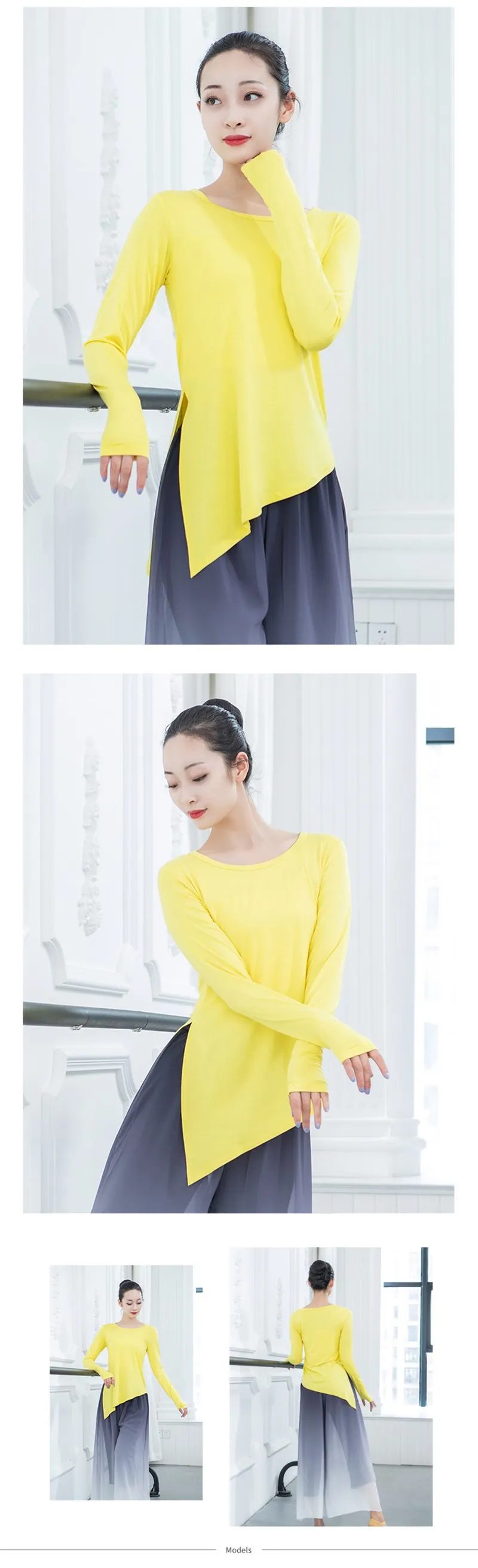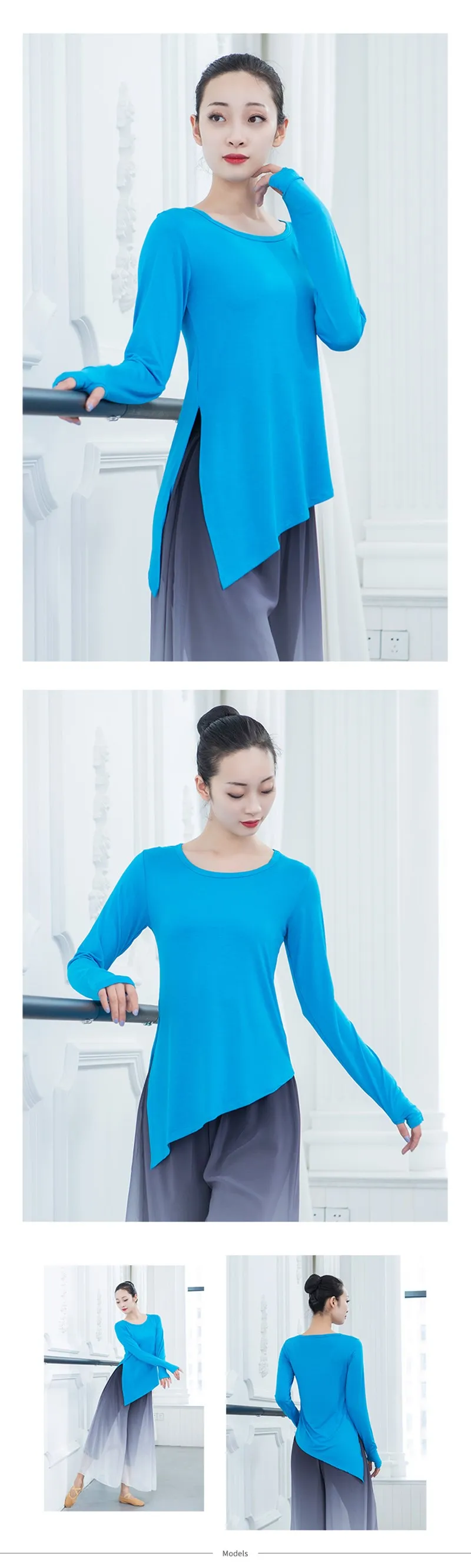 Womens Round Neck Finger Sleeve Modern Dance Wear Modal Yoga Practice Dress Side Lacing Classical Dance Top Blouse Plus Size 4XL