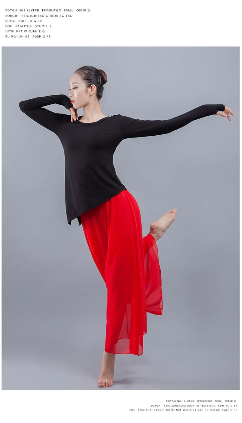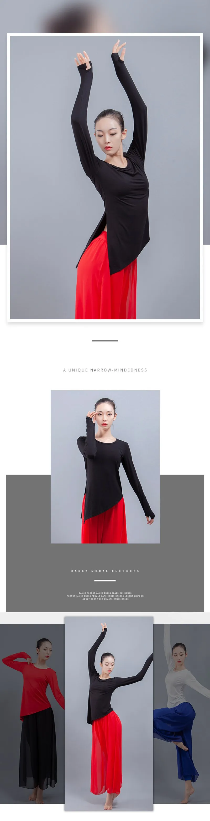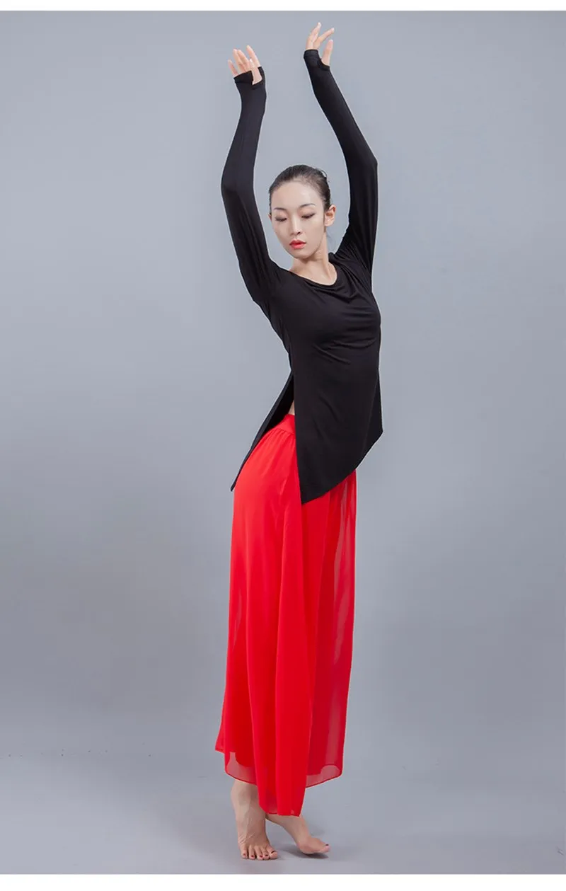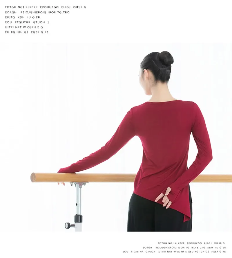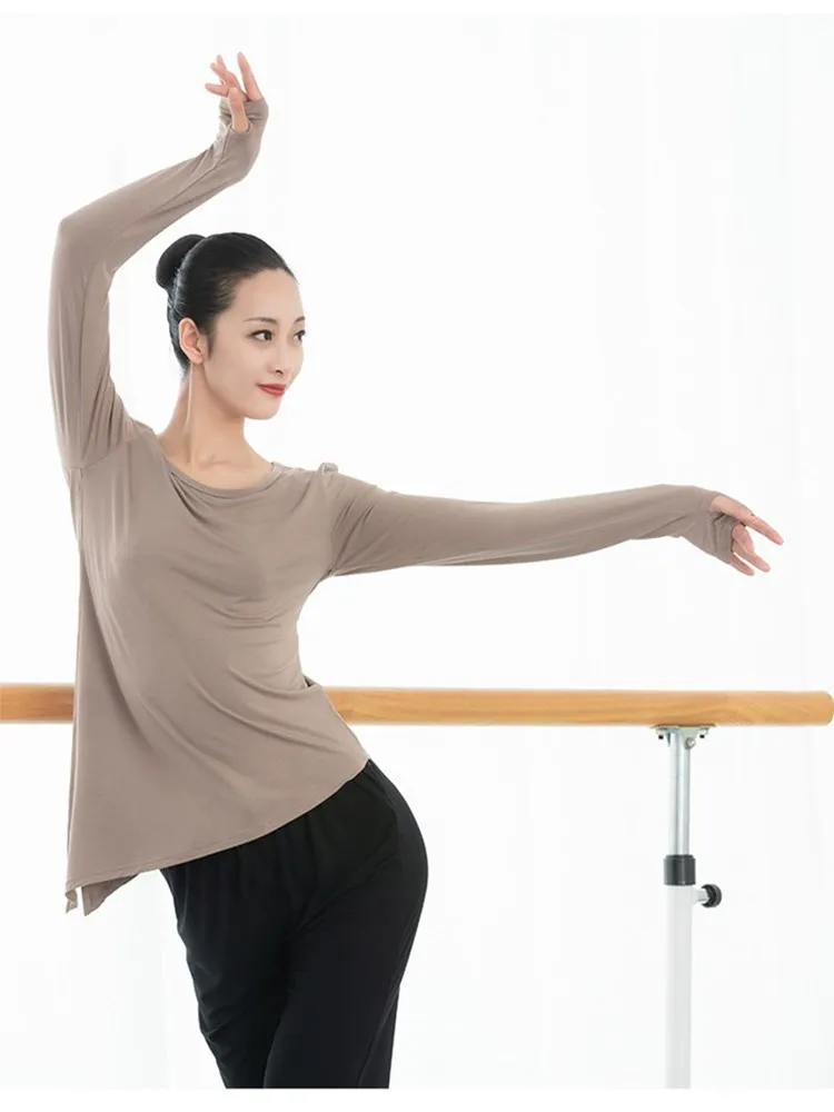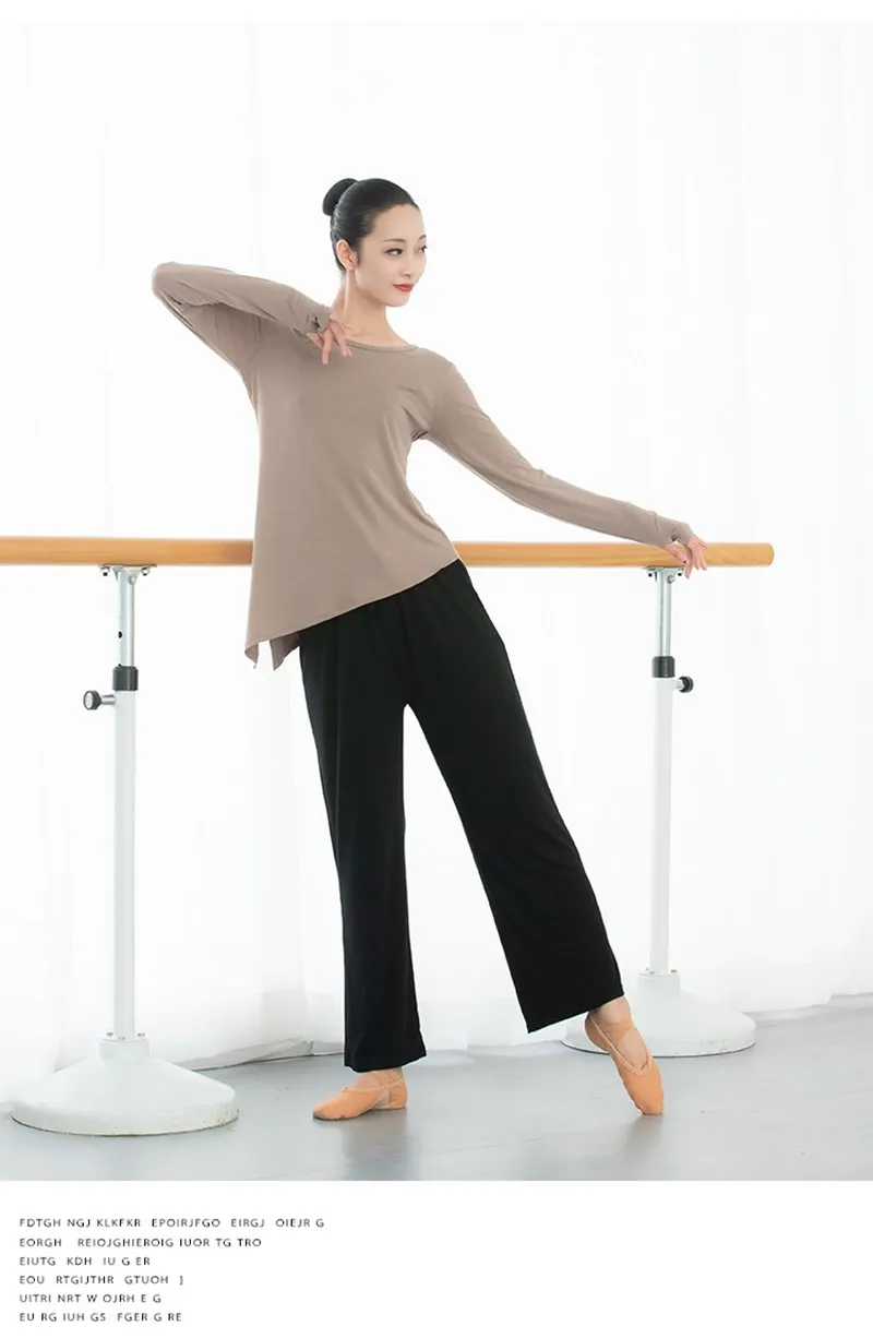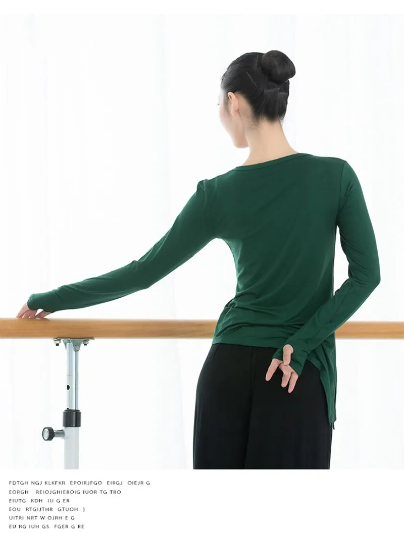Womens Round Neck Finger Sleeve Modern Dance Wear Modal Yoga Practice Dress Side Lacing Classical Dance Top Blouse Plus Size 4XL