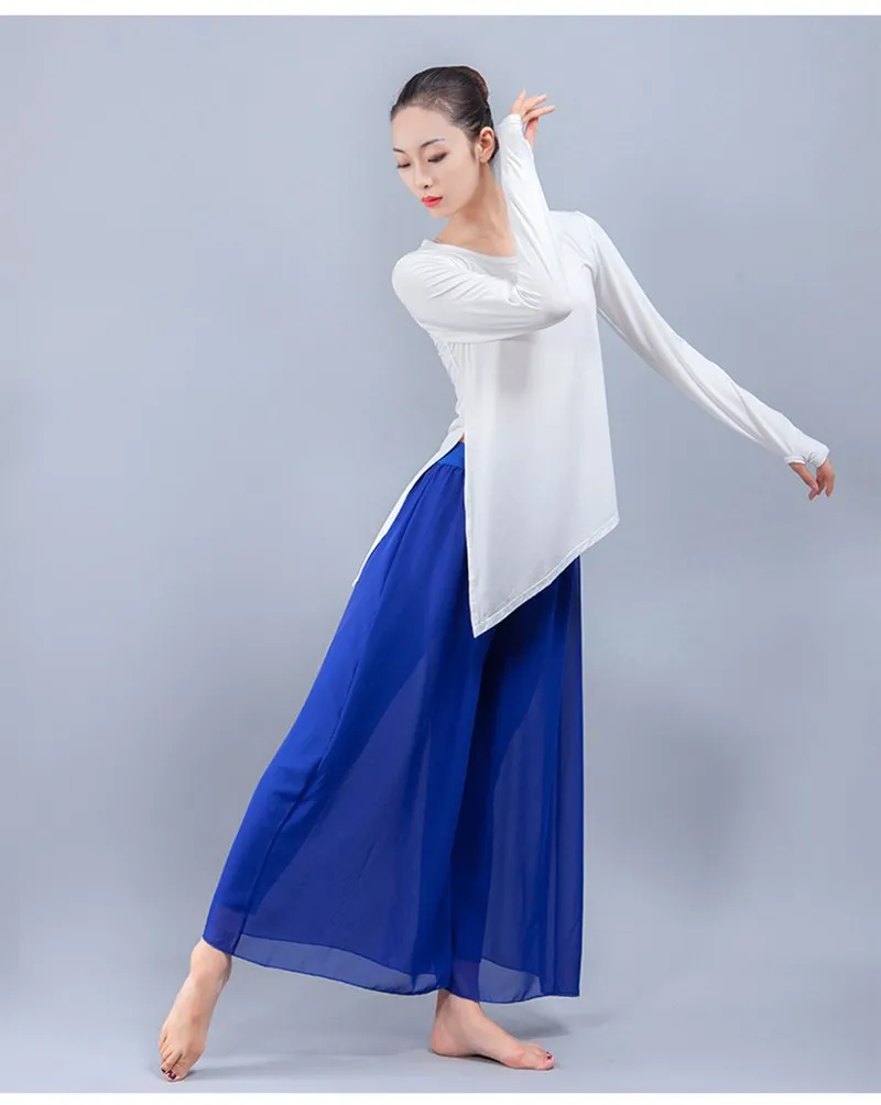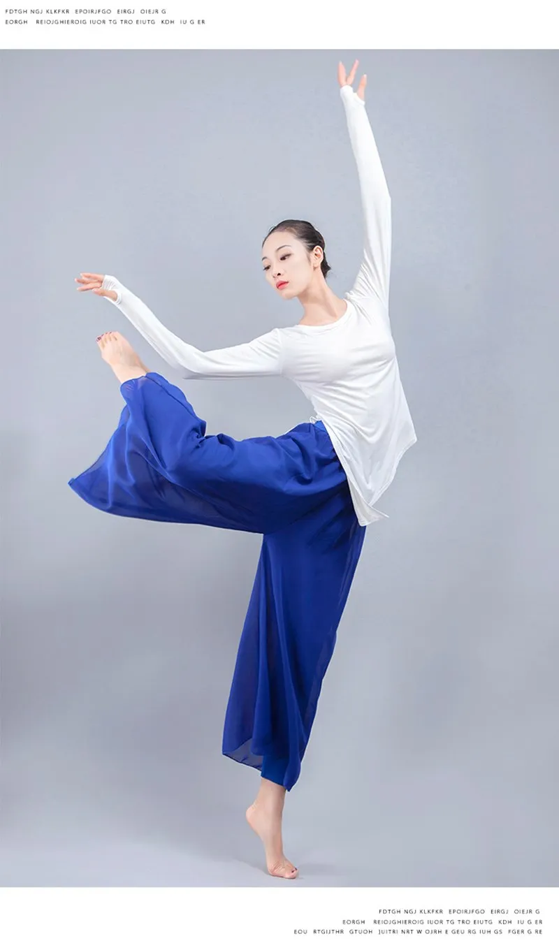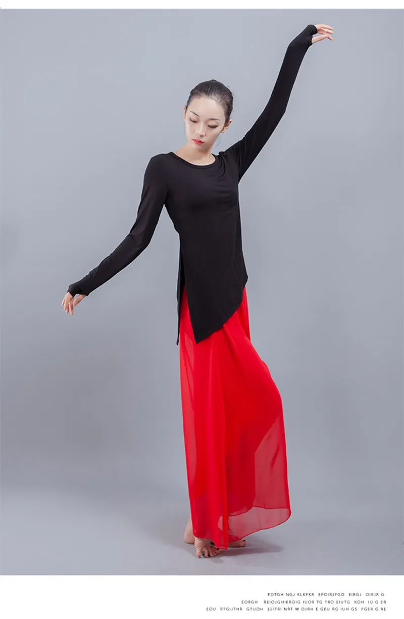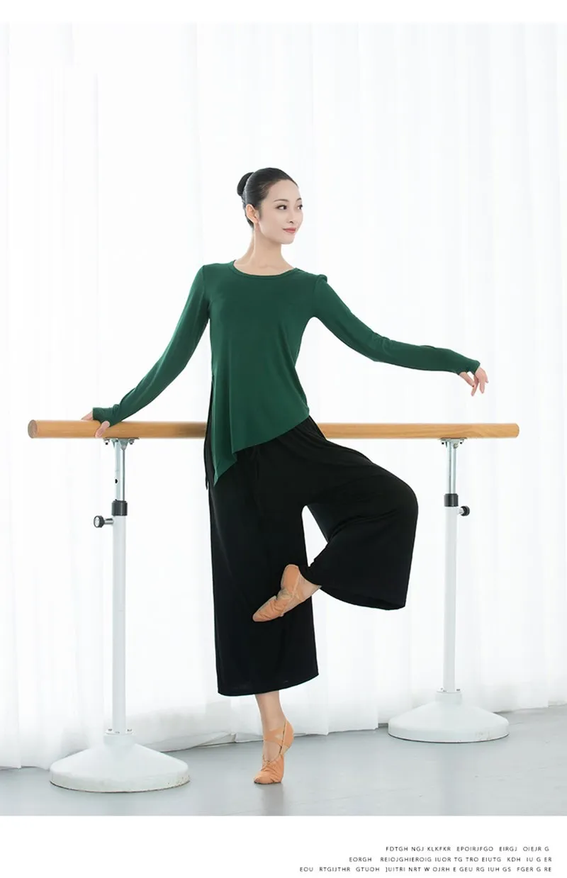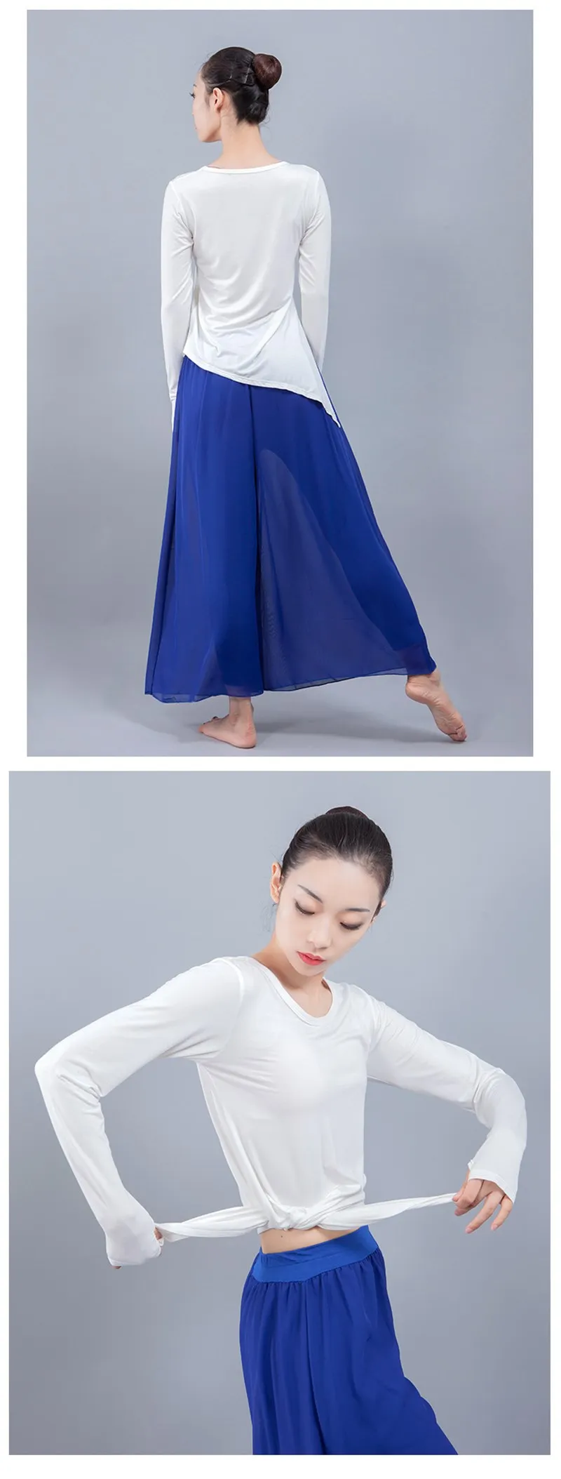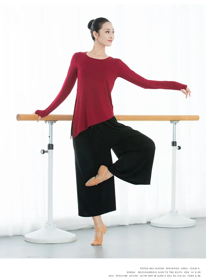 Womens Round Neck Finger Sleeve Modern Dance Wear Modal Yoga Practice Dress Side Lacing Classical Dance Top Blouse Plus Size 4XL