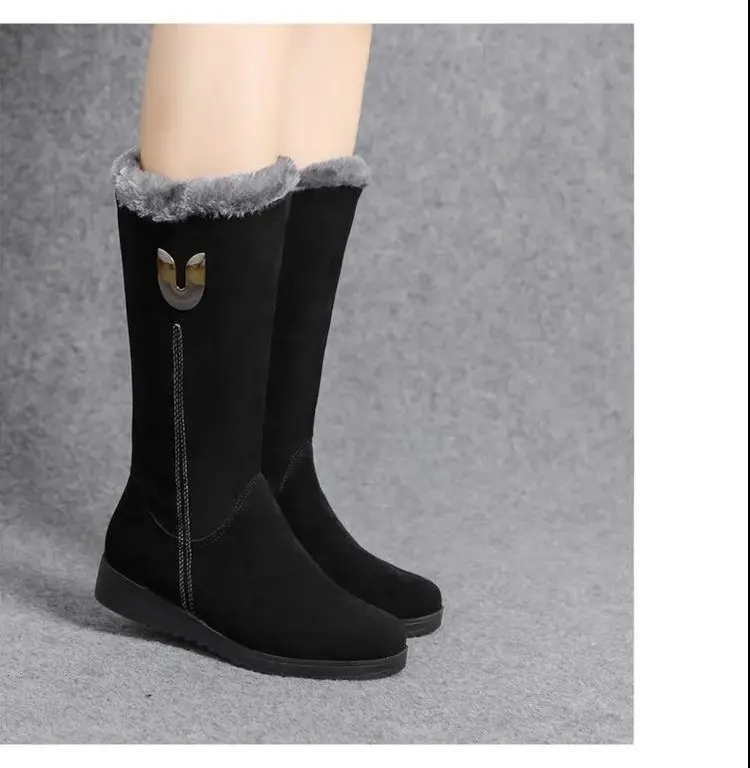 Women’s Shoes Fashion Women Warm Chelsea High Fur Boots Women Boots Mid-calf Plush Snow Flat Boots Zapatos Para Mujeres