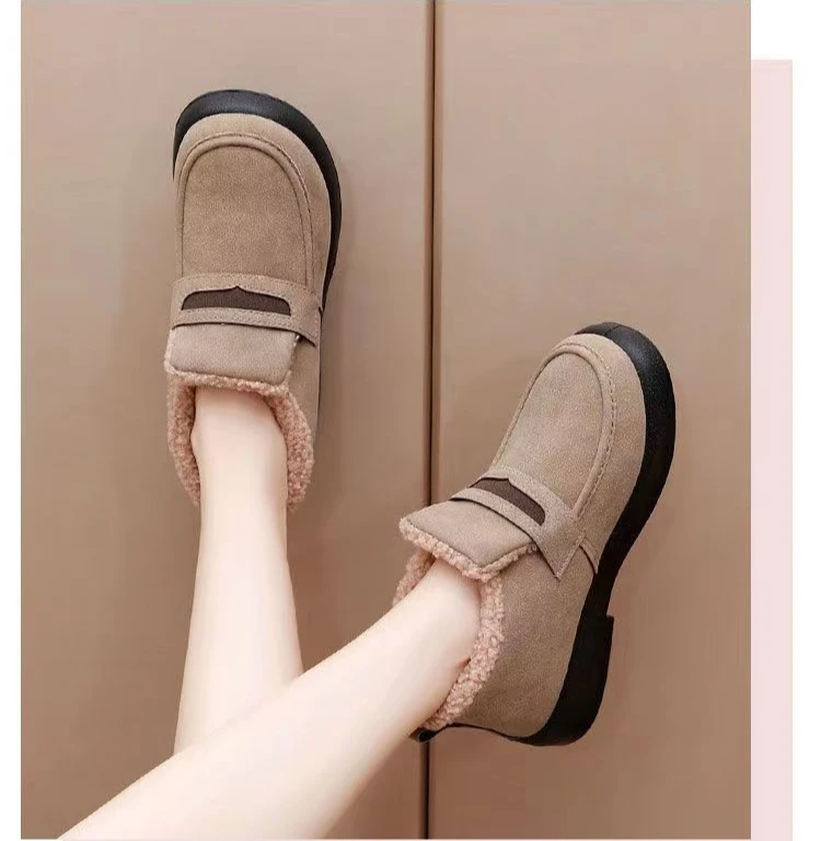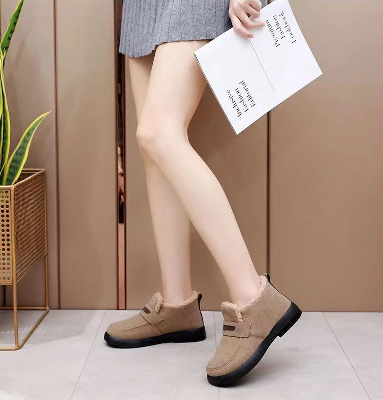 Women’s Snow Boots Moccasins Soft Loafers Women’s Winter Korean Casual Warm Short Boots Female Comfort Slip on Flat Cotton Shoes