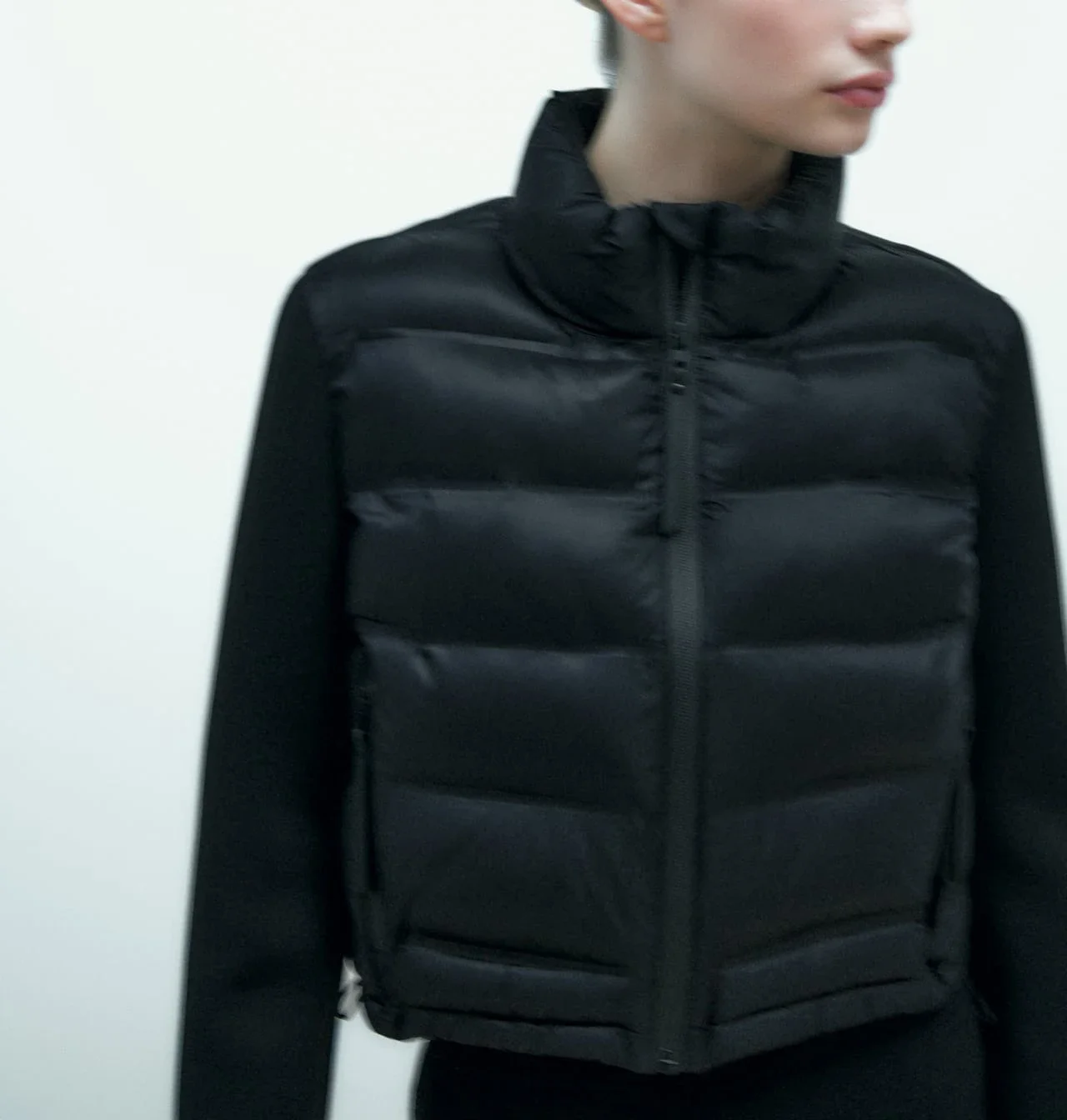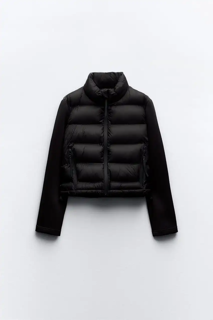 Women’s Splicing Short Padded Jacket Coat Autumn Winter New Stand Collar Long Sleeve Zipper Closure Thickened Warm Jacket