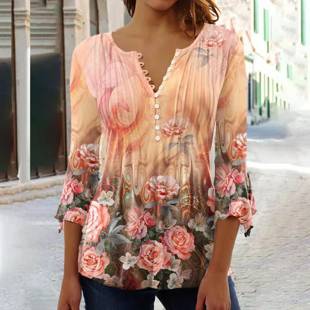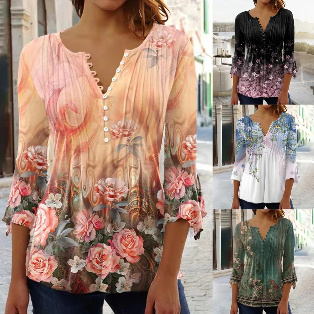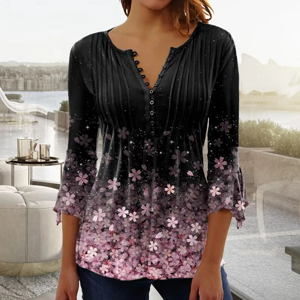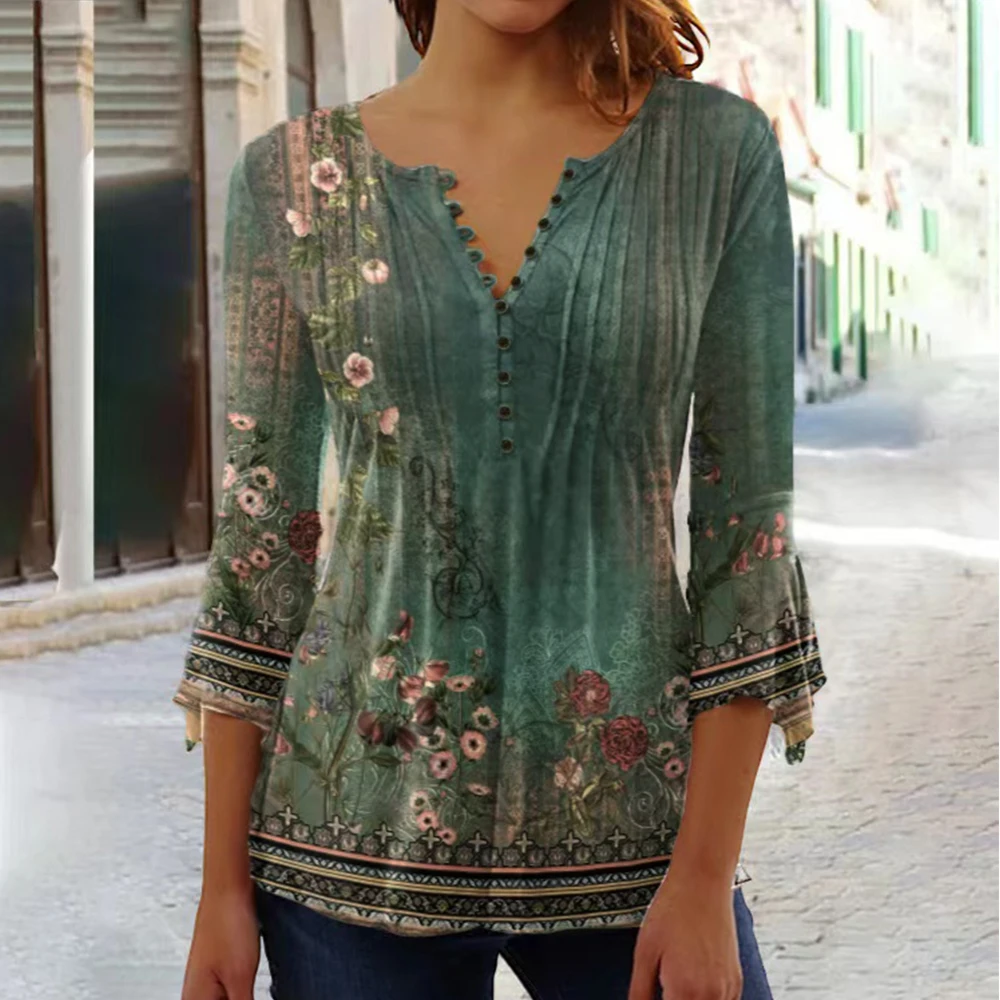 Womens Spring Summer V-Neck Tops T-Shirts Ladies Floral Casual Blouse Tee Plus Size Clothes Clothing 2024