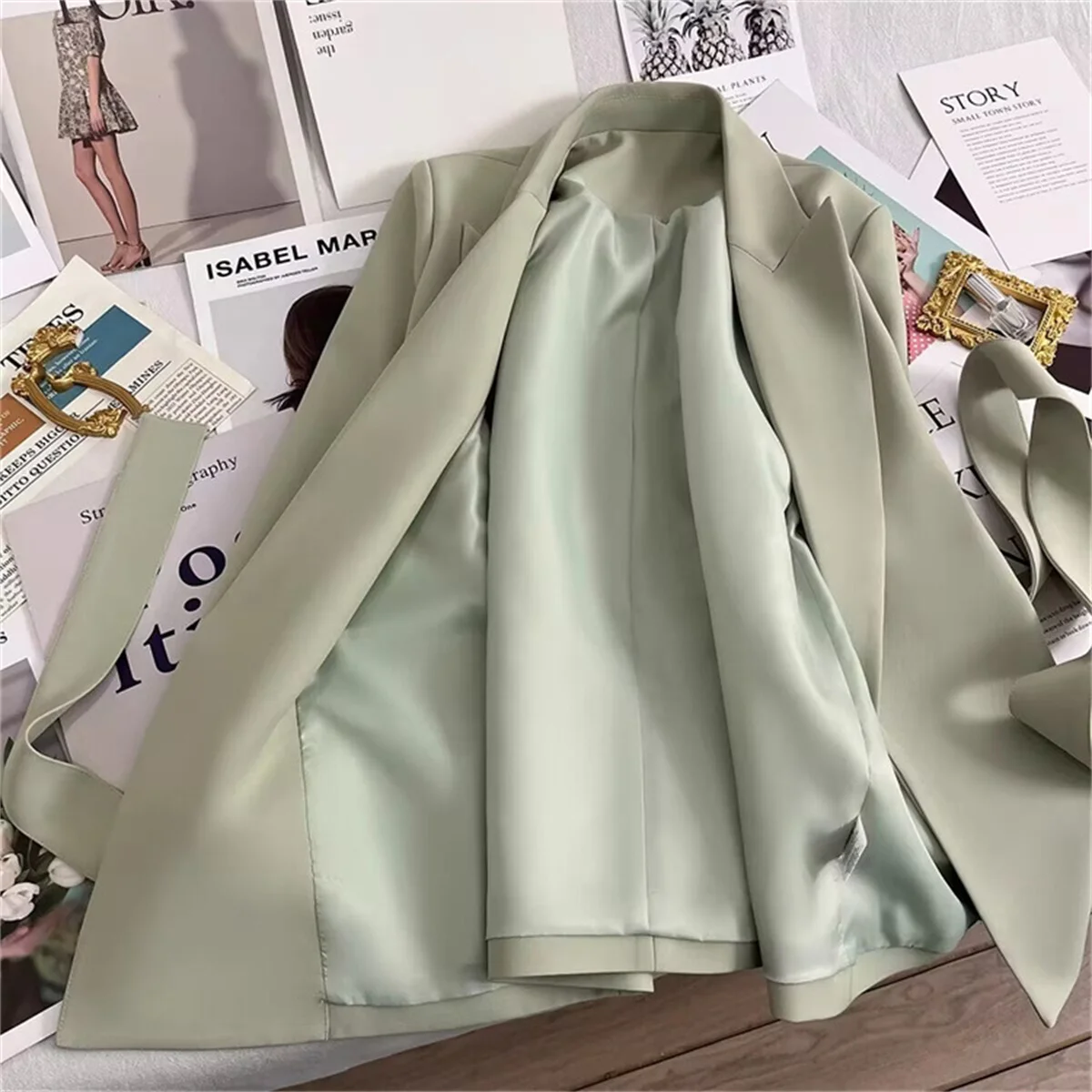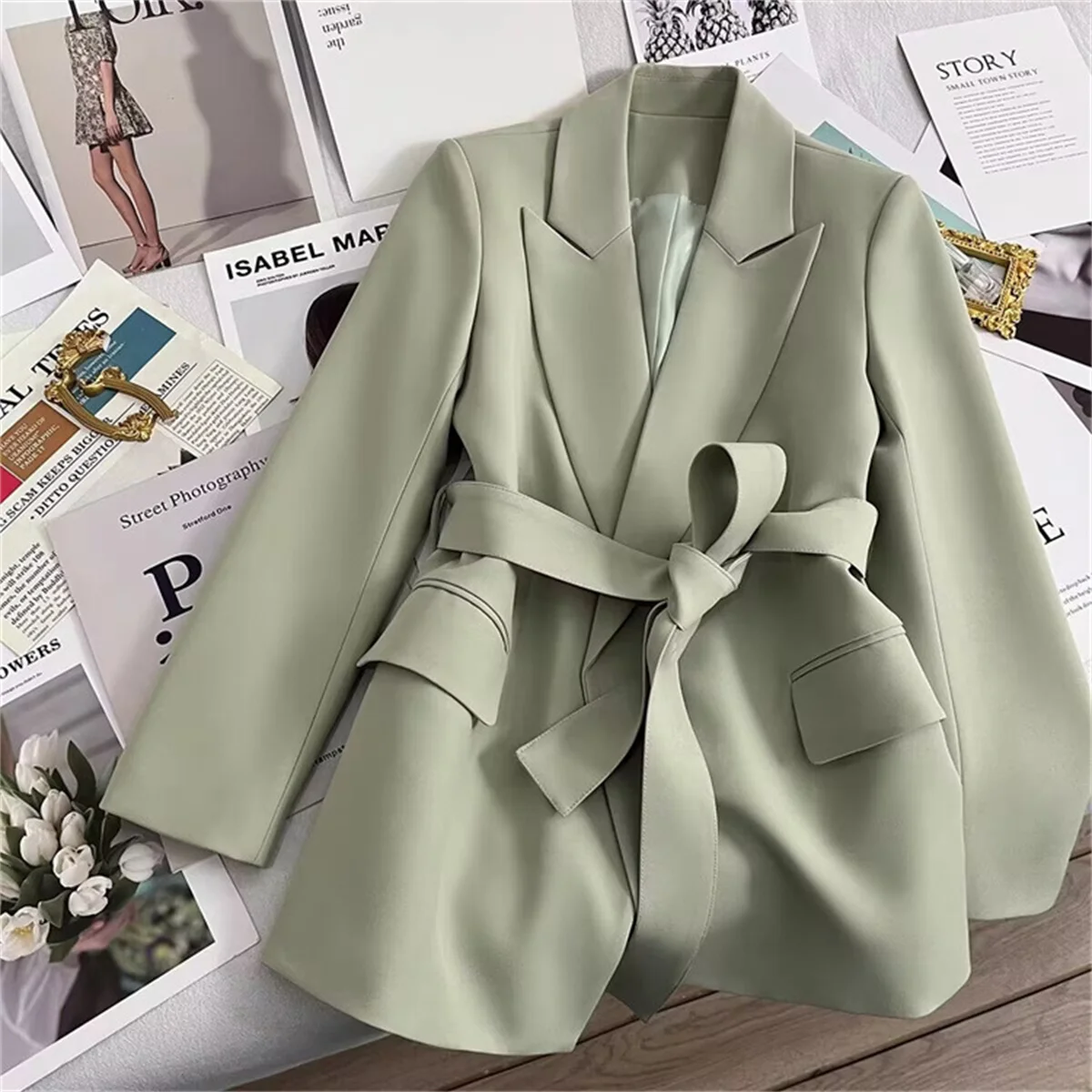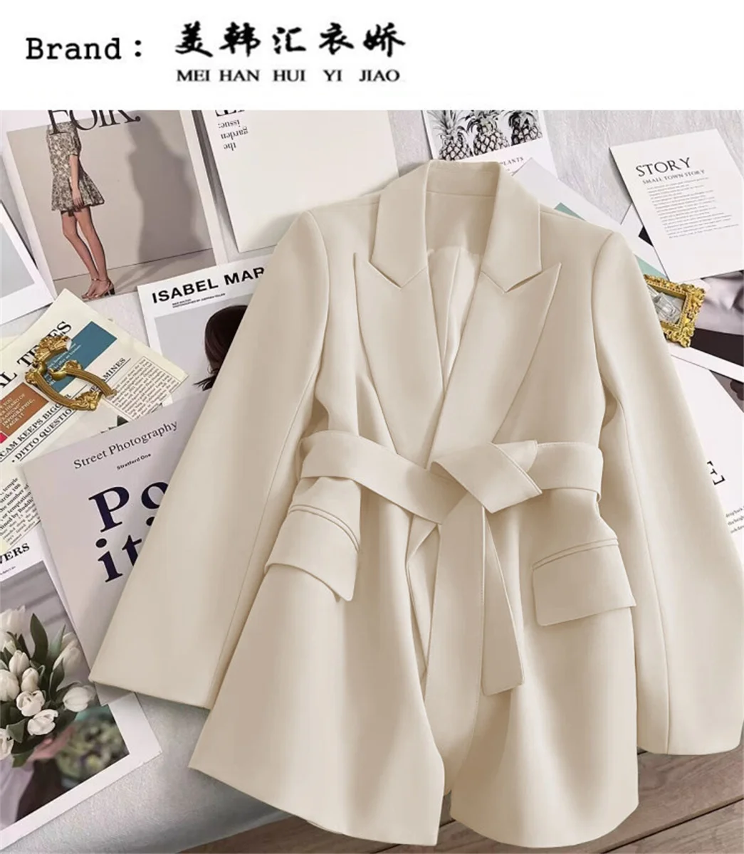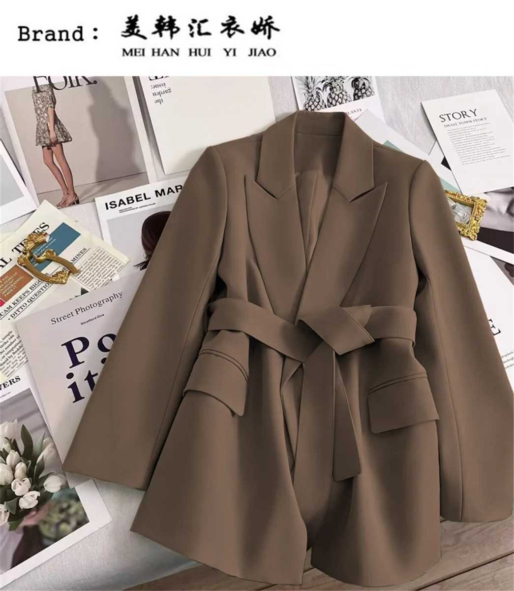 Women’s Suit Coat With Belt Elegant Casual Blazer Korean Fashion Luxury Jacket Spring Autumn Solid Color Ladies Office Clothing