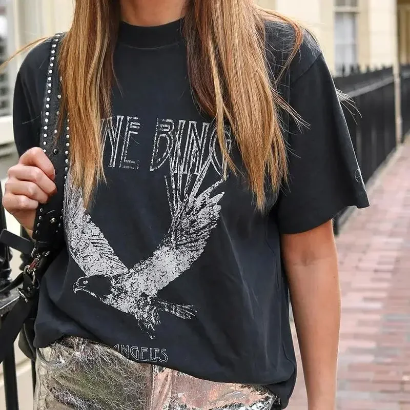 Women’s Summer Plus Size T-Shirt Eagle Print Casual Fashion Crew Neck Short Sleeve Loose T-Shirt Top