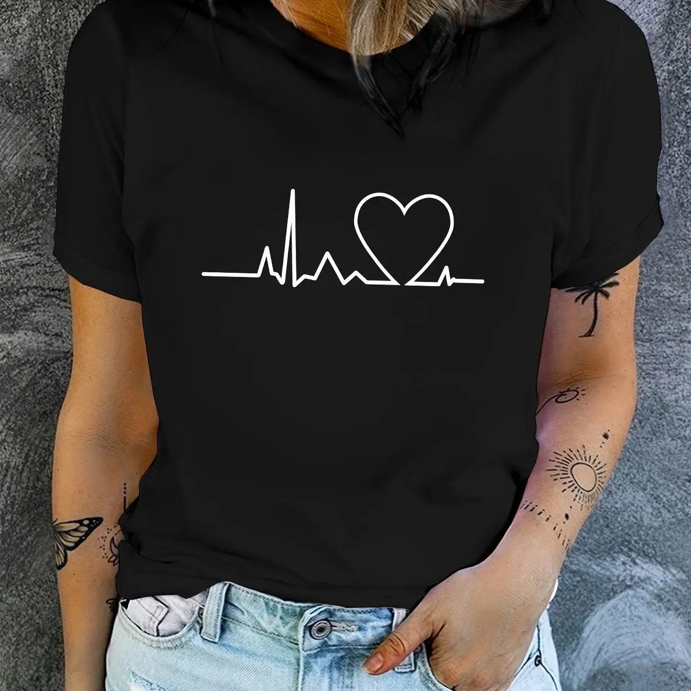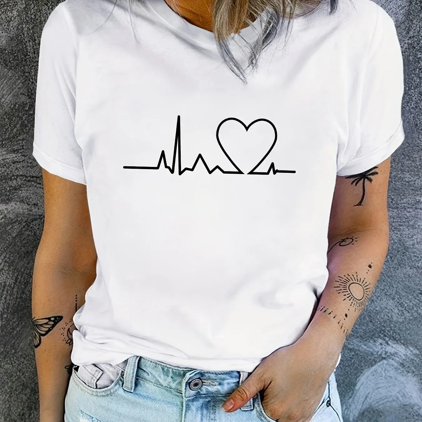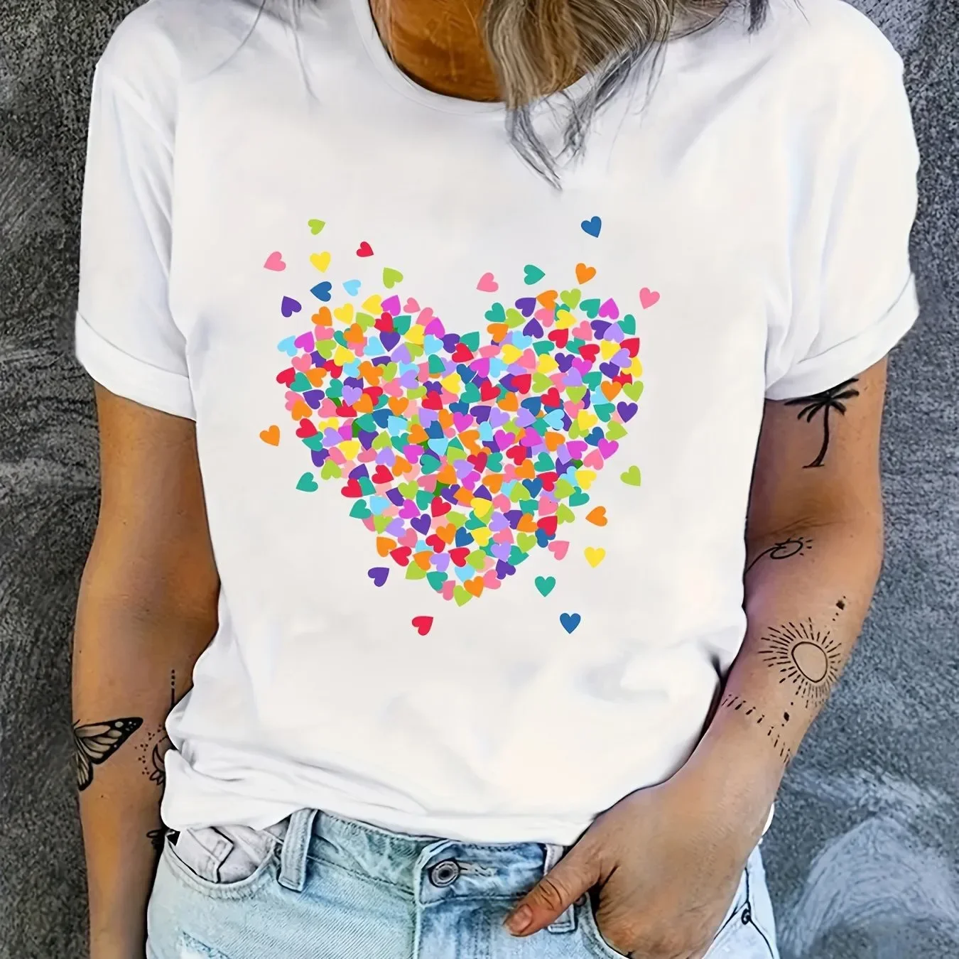Women’s T-shirt plus size Heart-shaped Pattern Printing Summer Woman Clothing Round Neck Short Sleeve T-shirt Top
