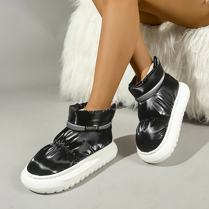 Women’s Waterproof Down Cotton Padded Shoes Warm Plush Thick Bottom Snow Boots Women 2023 Platform Non-Slip Winter Ankle Boots