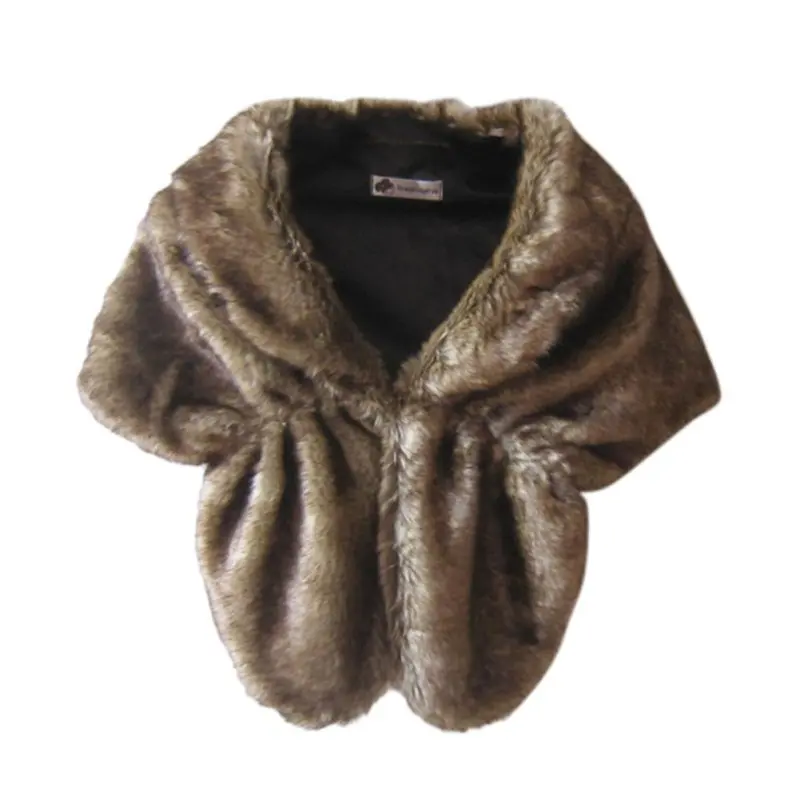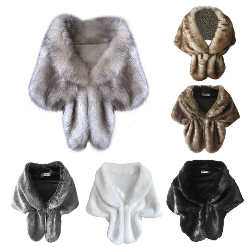 Women's Wedding Faux Fur Shawls Bridal Fur Stoles Scarf with Rhinestones Brooch for Bride and Bridesmaids