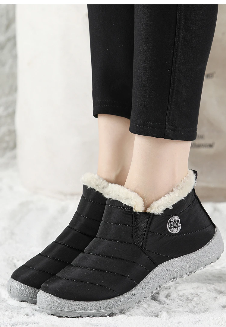 Women's Winter Boots Lightweight Fur Boots For Women Ankle Winter Shoes Women Snow Boots Waterproof Winter Footwear Female Black