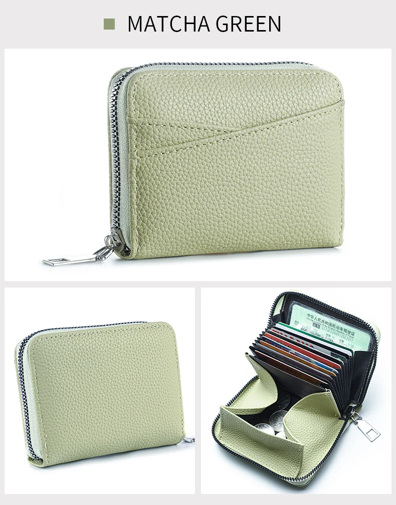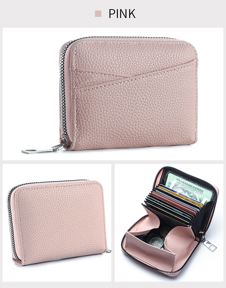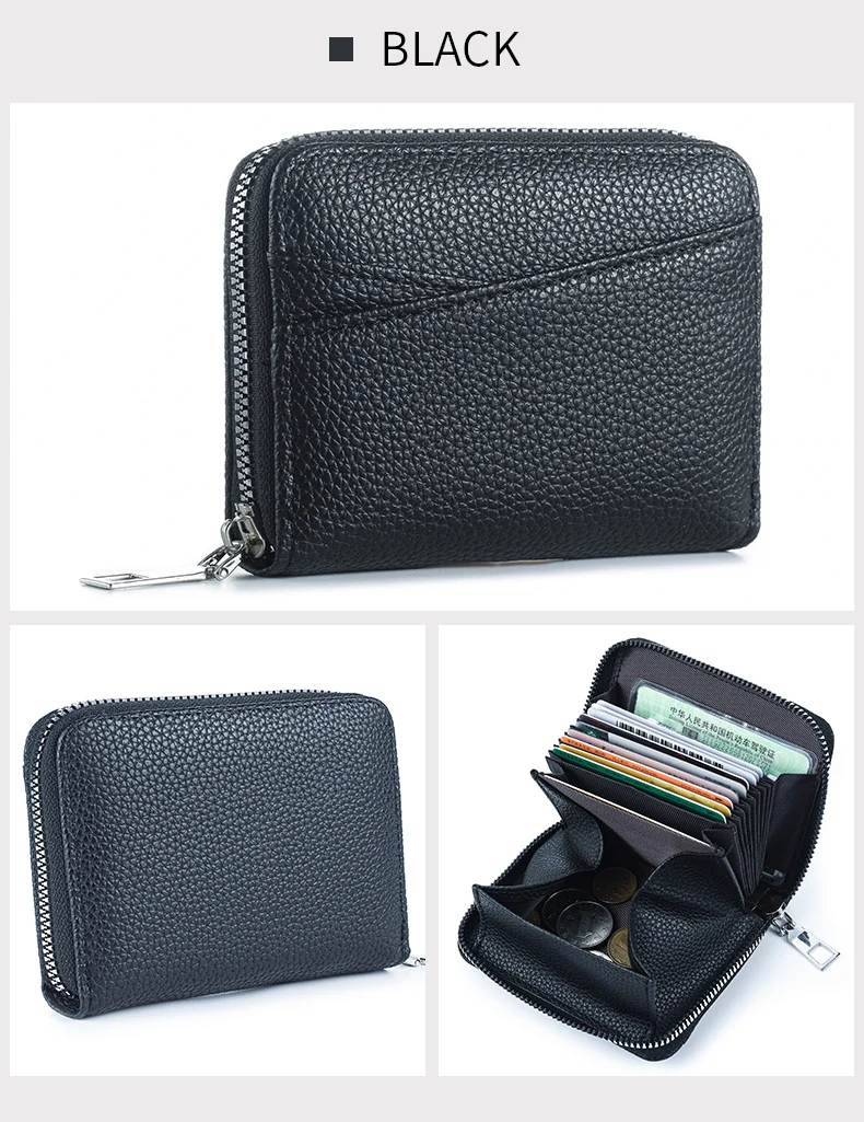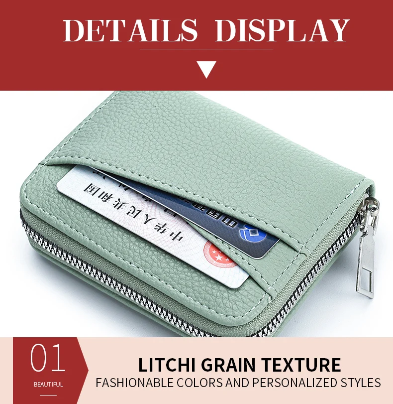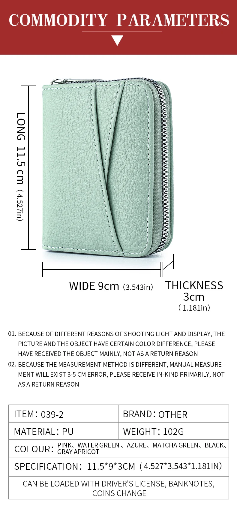 Women’s Zipper Purse Short Lychee Pattern Fashion Multi-Card Slot ID Card Holder Coin Zipper Purse For Women