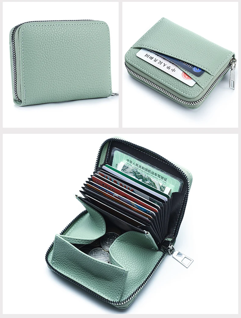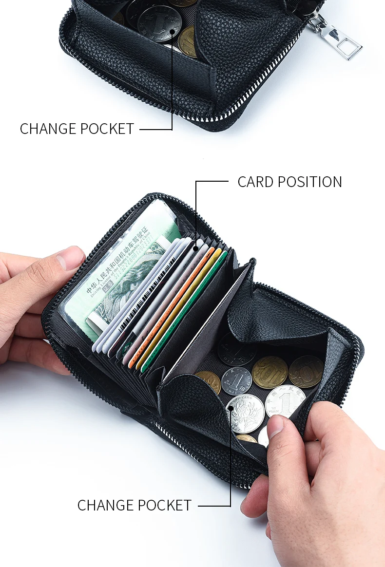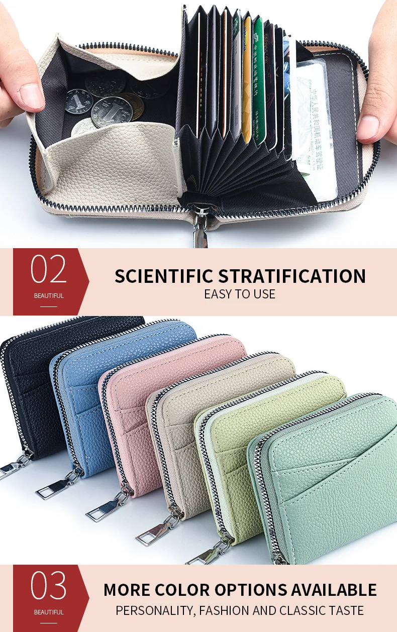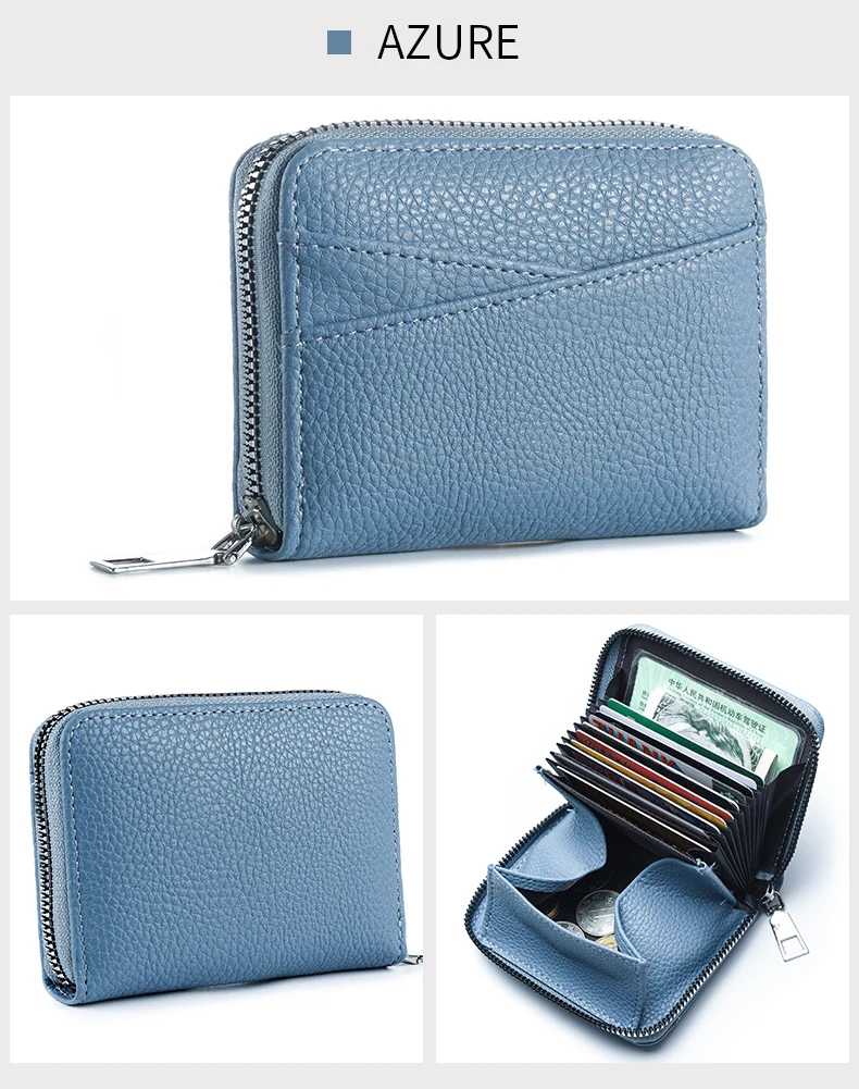 Women’s Zipper Purse Short Lychee Pattern Fashion Multi-Card Slot ID Card Holder Coin Zipper Purse For Women